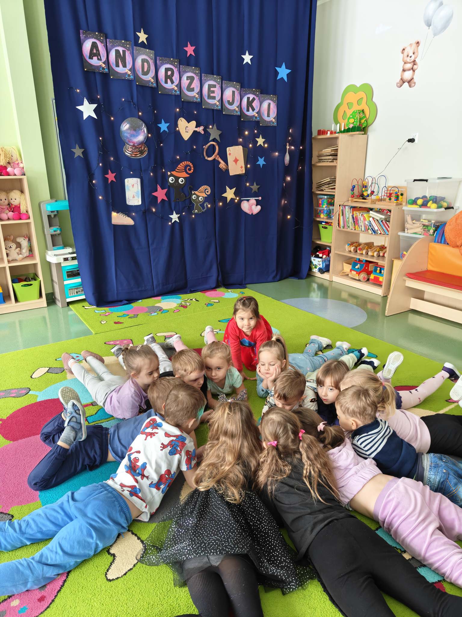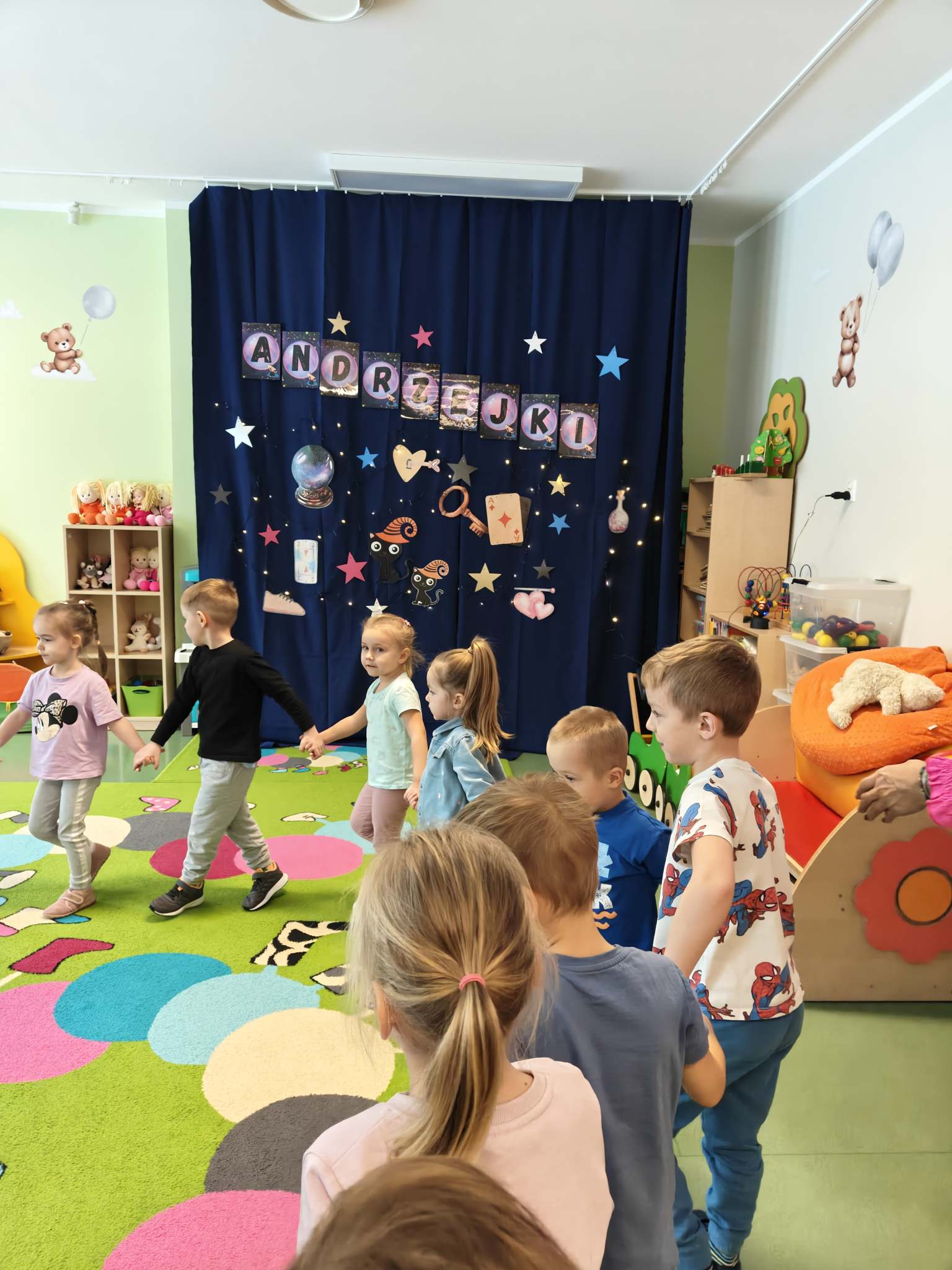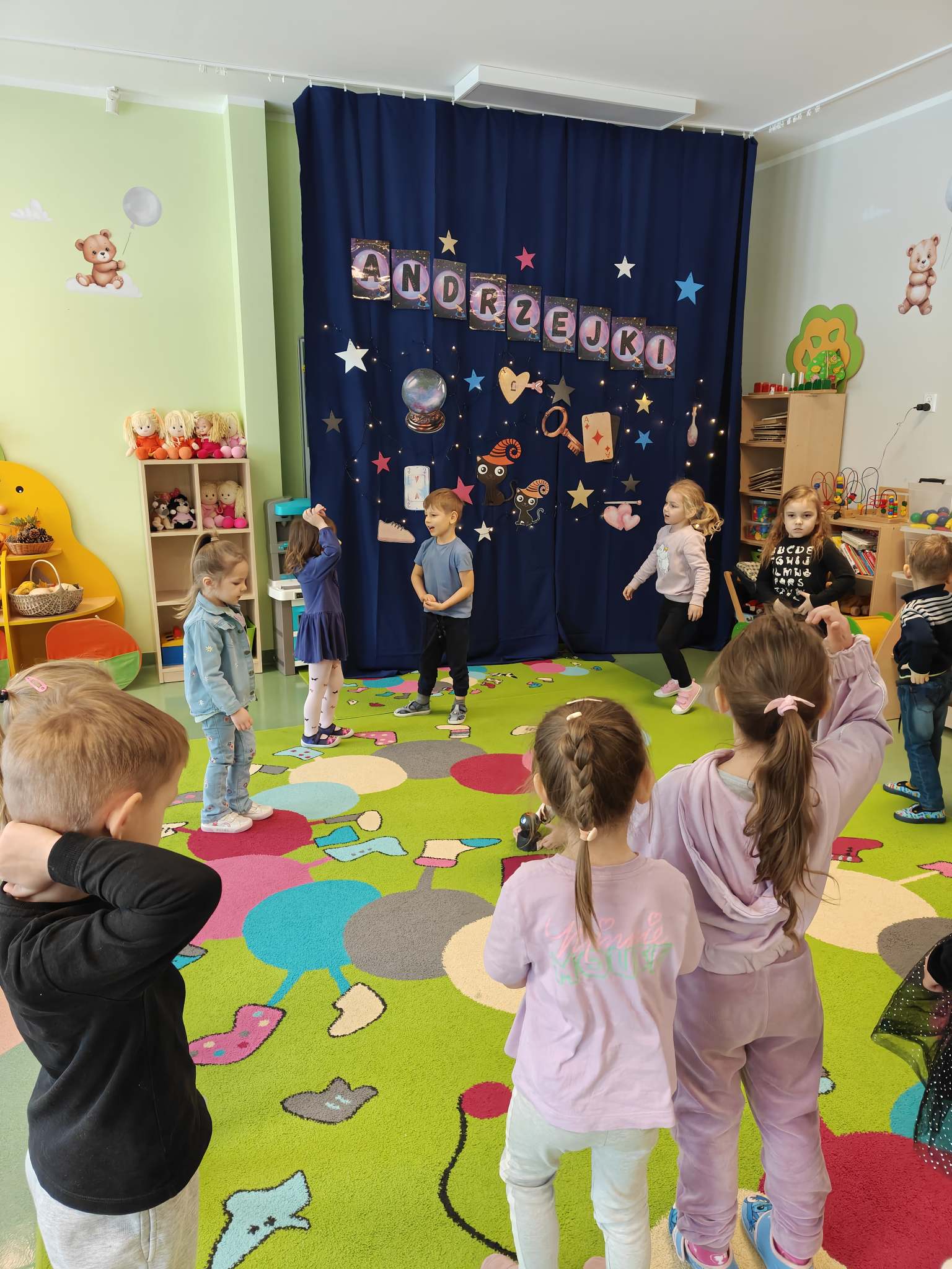 W naszym przedszkolu co roku podtrzymujemy tradycje związane z Andrzejkami, dlatego piątek 28 listopada w naszej grupie był wyjątkowy: tajemniczy i odrobinę magiczny. Świętowaniu towarzyszyły, zabawy i tradycyjne wróżby andrzejkowe. Nie zabrakło zabaw muzycznych i tańców w rytm dziecięcych hitów. Dzień ten dostarczył przedszkolakom wielu przeżyć i emocji, a przede wszystkim stał się okazją do rozbudzenia dziecięcej ciekawości i fascynacji otaczającym je światem oraz możliwością poznawania ludowych tradycji. Na zakończenie wyśmienitej zabawy na dzieci czekał słodki poczęstunek w postaci ciasteczka z wróżbą. Był to naprawdę niezwykły i magiczny dzień pełen wrażeń.