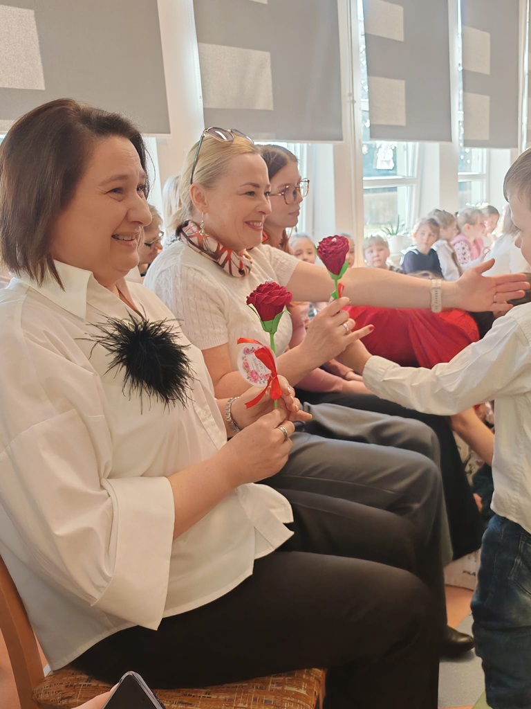 8 Marca to szczególny i wyjątkowy dzień. Swoje święto obchodzą wtedy wszystkie kobiety zarówno te duże, jak i te małe. W tym dniu w naszym przedszkolu od samego rana chłopcy składali dziewczynkom życzenia i wręczali kwiaty. Były wspólne zabawy i tańce. Uśmiech na buziach przedszkolaków świadczył o miło spędzonym czasie. Dzień Kobiet w przedszkolu to również święto które kształtuje szacunek i empatię. Dzieci z grupy „Kotków” przygotowały również uroczystą akademię w której uczestniczyła nasza Pani Dyrektor, zaproszeni goście, wszyscy pracownicy naszego przedszkole oraz koleżanki i koledzy z innych grup.
