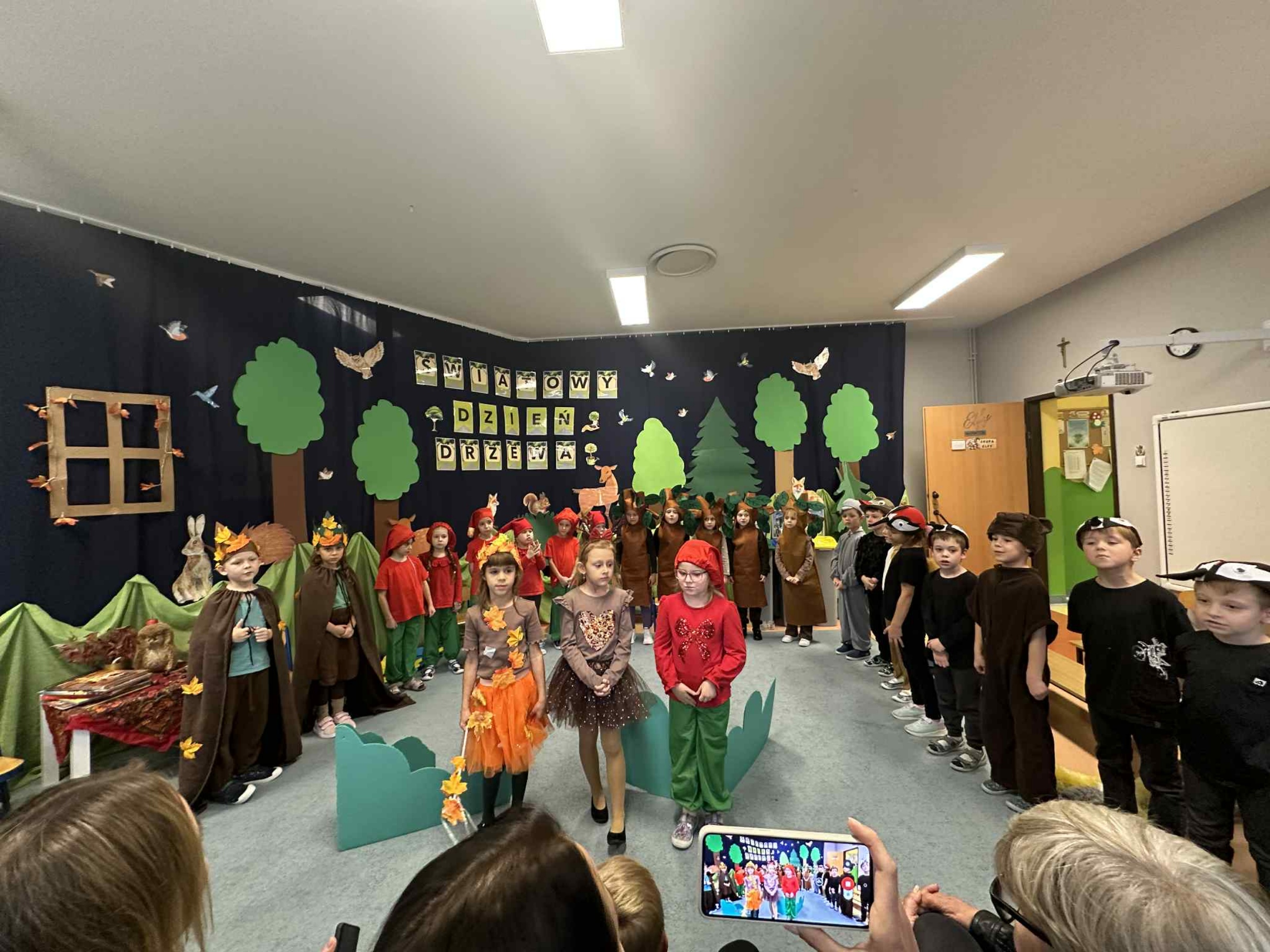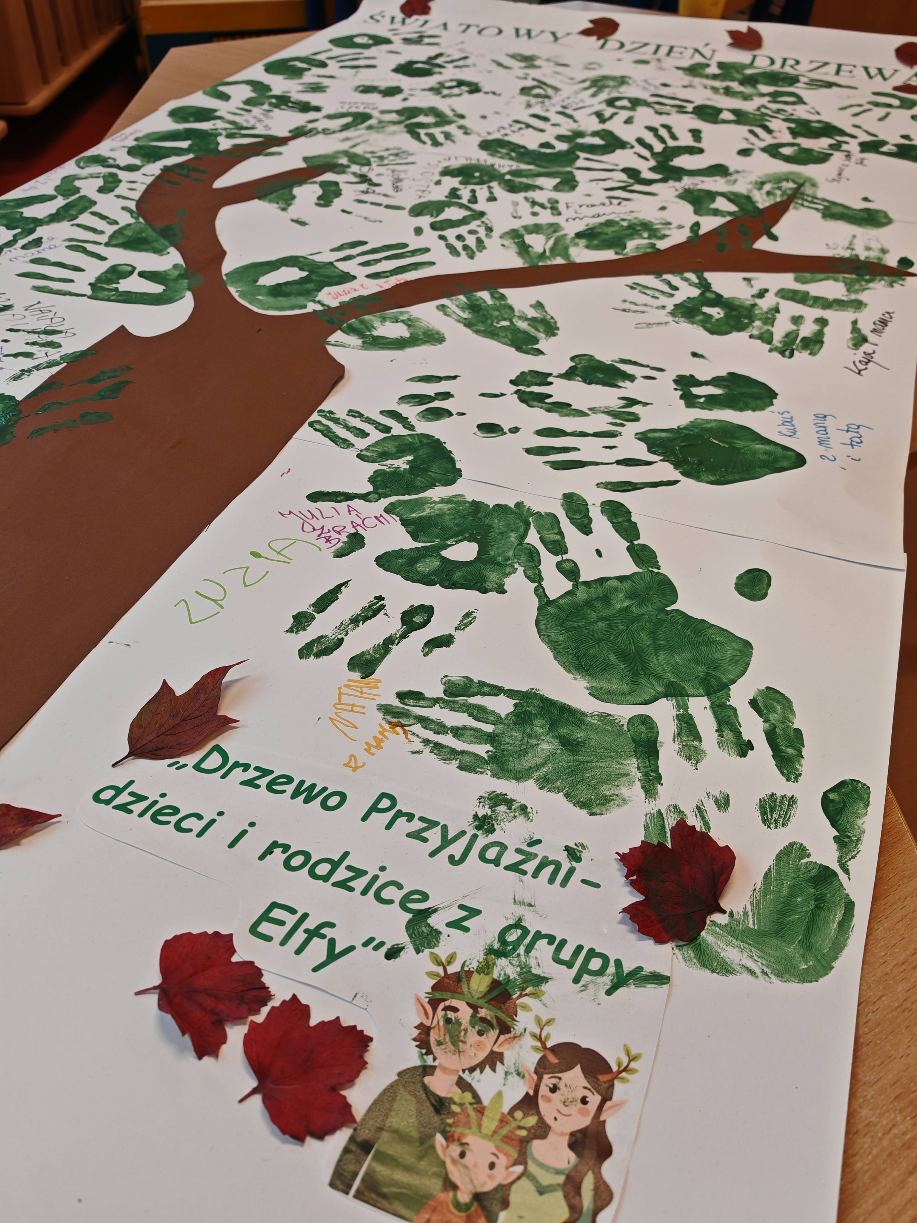 W jesienne popołudnie dzieci z grupy Elfy wraz z rodzicami spotkały się w przedszkolu, by wspólnie świętować Dzień Drzewa. Spotkanie rozpoczęło się uroczym przedstawieniem w wykonaniu dzieci, które z ogromnym zaangażowaniem zaprezentowały swoje umiejętności aktorskie. Po części artystycznej odbyły się warsztaty plastyczne, podczas których rodzice razem z dziećmi i paniami stworzyli wyjątkowe „Drzewo Przyjaźni” grupy Elfy – symbol wspólnoty, radości i współpracy. Mamy nadzieję, że to dopiero początek wspólnych spotkań i że jeszcze nie raz spotkamy się w tak miłej, rodzinnej atmosferze.