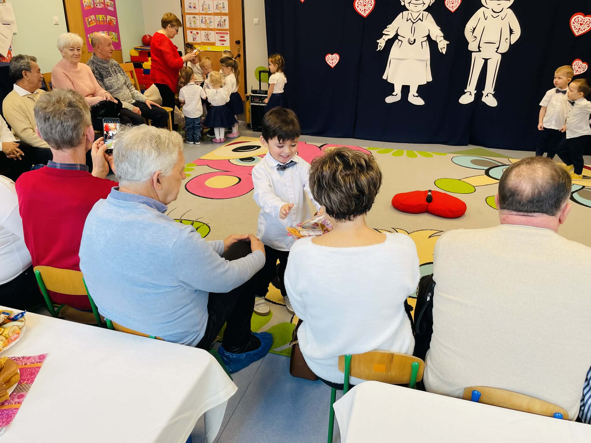 26 stycznia w grupie Krasnale odbyły się wyjątkowe obchody Dnia Babci i Dziadka. Dzieci z wielkim zaangażowaniem przygotowały występy artystyczne – recytowały wierszyki, śpiewały piosenki oraz wręczyły własnoręcznie wykonane upominki i laurki. Wspólne świętowanie było okazją do wyrażenia wdzięczności za miłość, troskę i codzienne wsparcie, jakim dziadkowie obdarzają swoje wnuki. Spotkanie przebiegło w ciepłej, radosnej atmosferze, pełnej uśmiechów i wzruszeń.