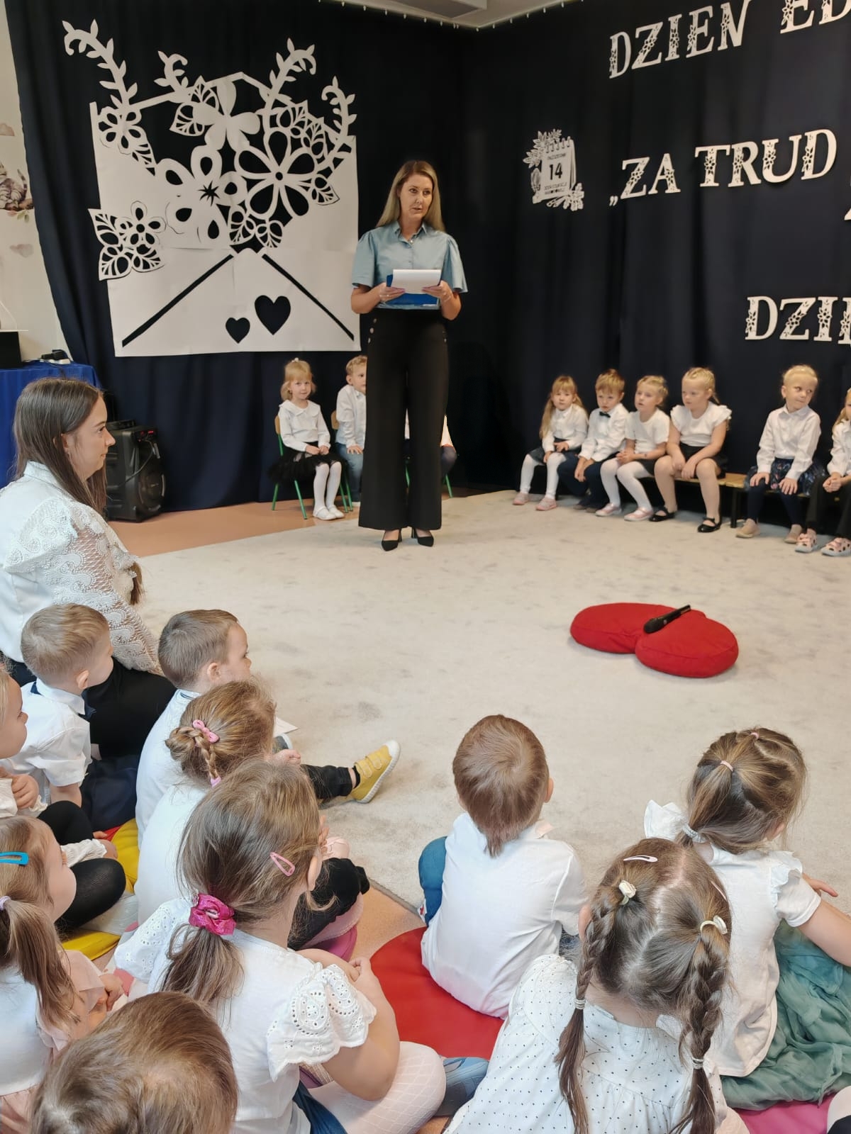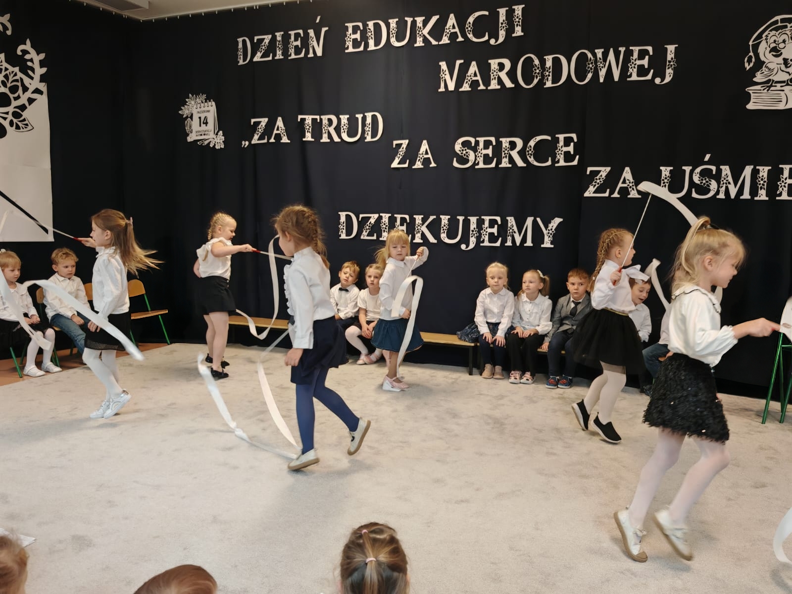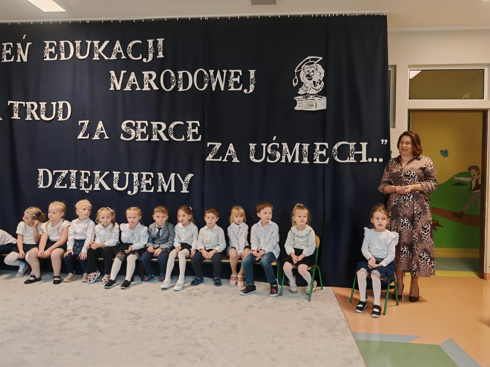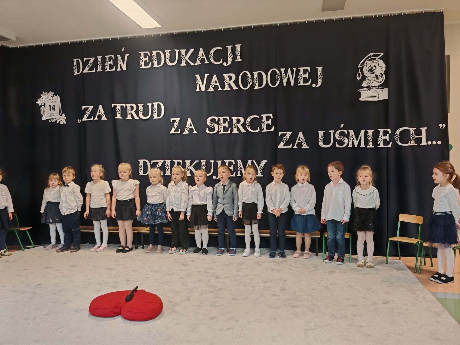 W dniu 14 października nasza grupa przygotowała uroczystą akademię z okazji Dnia Edukacji Narodowej. Dzień ten uznaje się za święto wszystkich pracowników oświaty. Dlatego właśnie Dzień Edukacji Narodowej to szczególny czas dla wszystkich pracowników naszego przedszkola, którzy w swojej codziennej pracy dbają i dokładają wszelkich starań aby wszystkie dzieci czuły się u nas jak najlepiej.