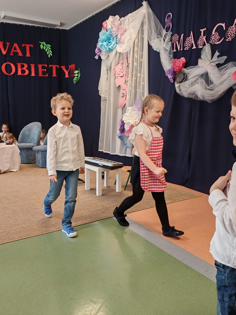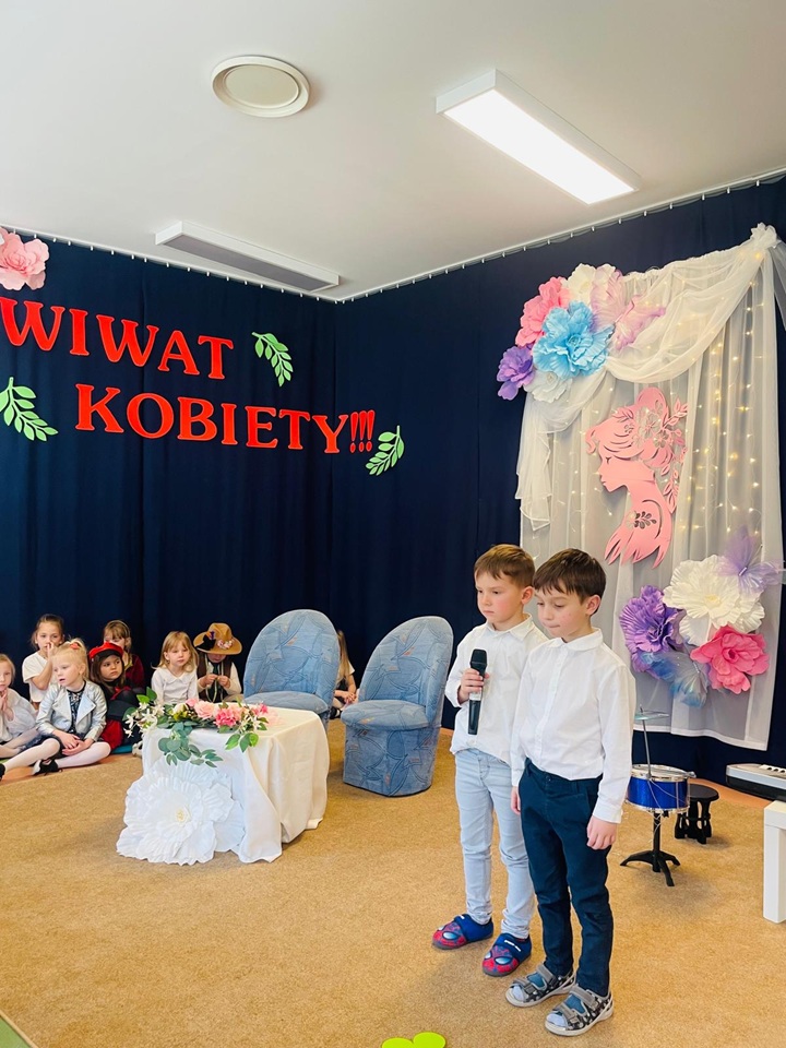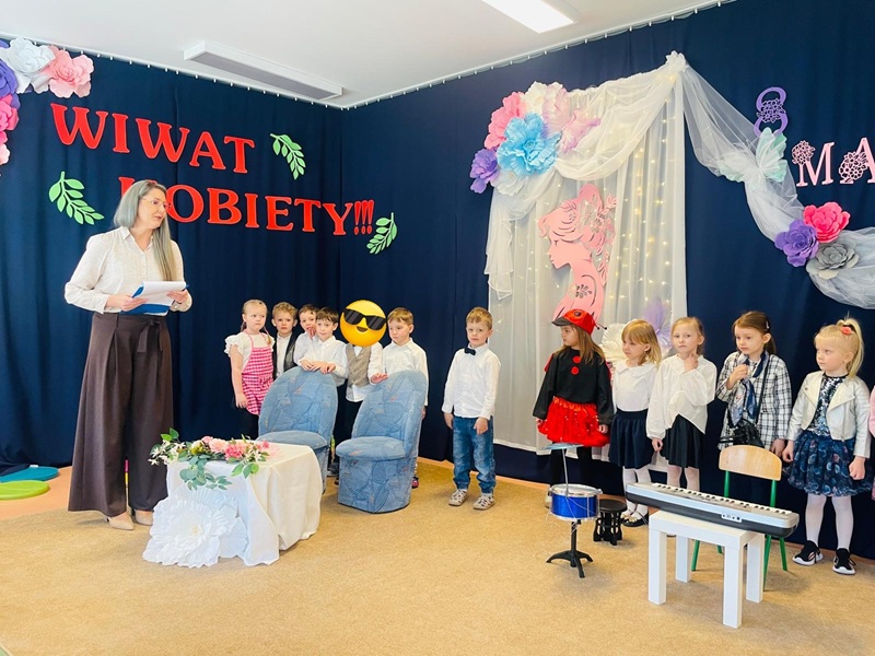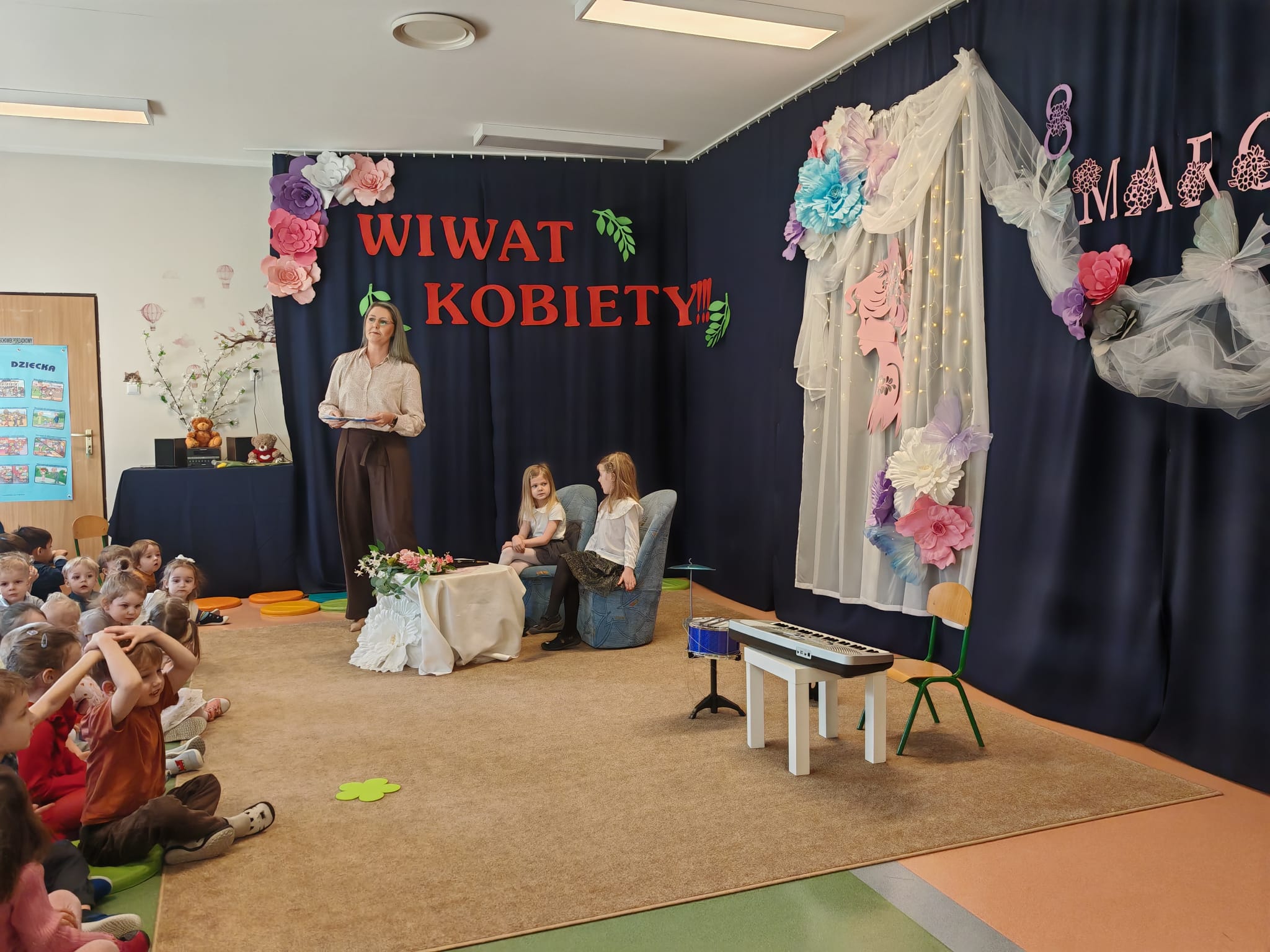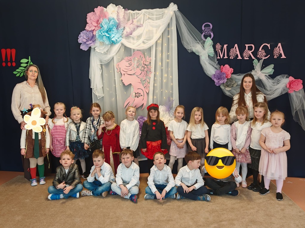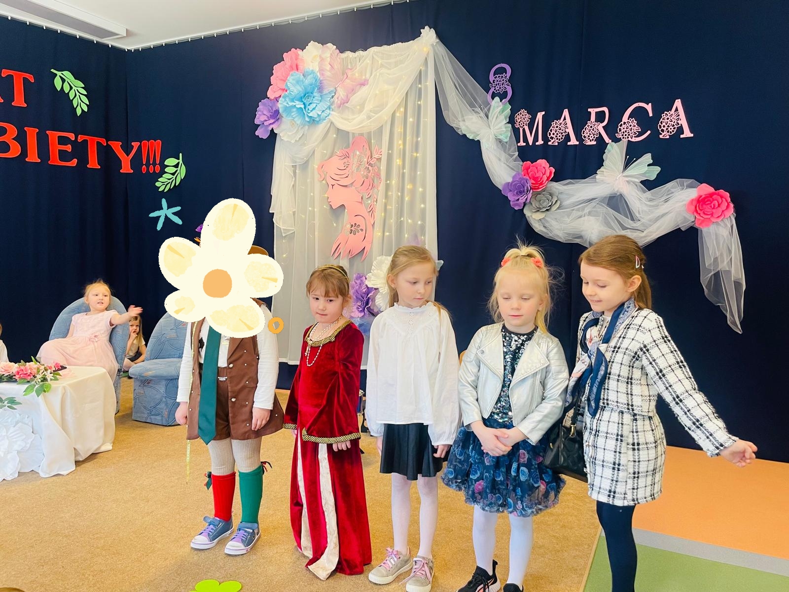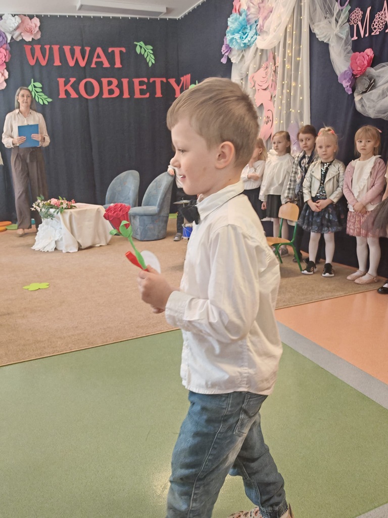 8 Marca to szczególny i wyjątkowy dzień. Swoje święto obchodzą wtedy wszystkie kobiety zarówno te duże, jak i te małe. W tym dniu w naszym przedszkolu od samego rana chłopcy składali dziewczynkom życzenia i wręczali kwiaty. Były wspólne zabawy i tańce. Uśmiech na buziach przedszkolaków świadczył o miło spędzonym czasie. Dzień Kobiet w przedszkolu to również święto które kształtuje szacunek i empatię. Dzieci z grupy „Kotków” przygotowały również uroczystą akademię w której uczestniczyła nasza Pani Dyrektor, zaproszeni goście, wszyscy pracownicy naszego przedszkole oraz koleżanki i koledzy z innych grup.