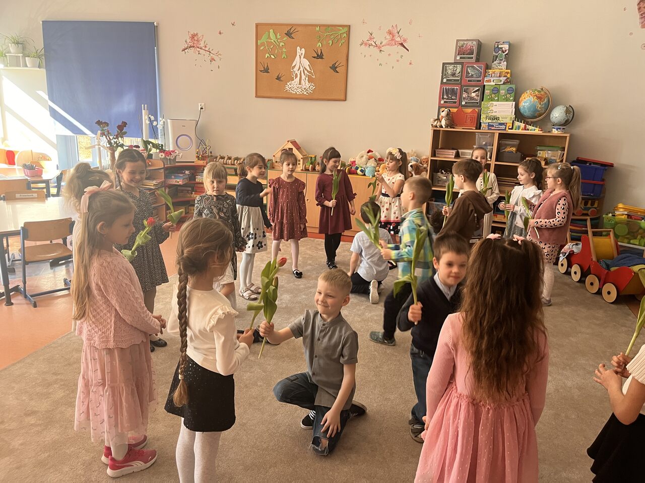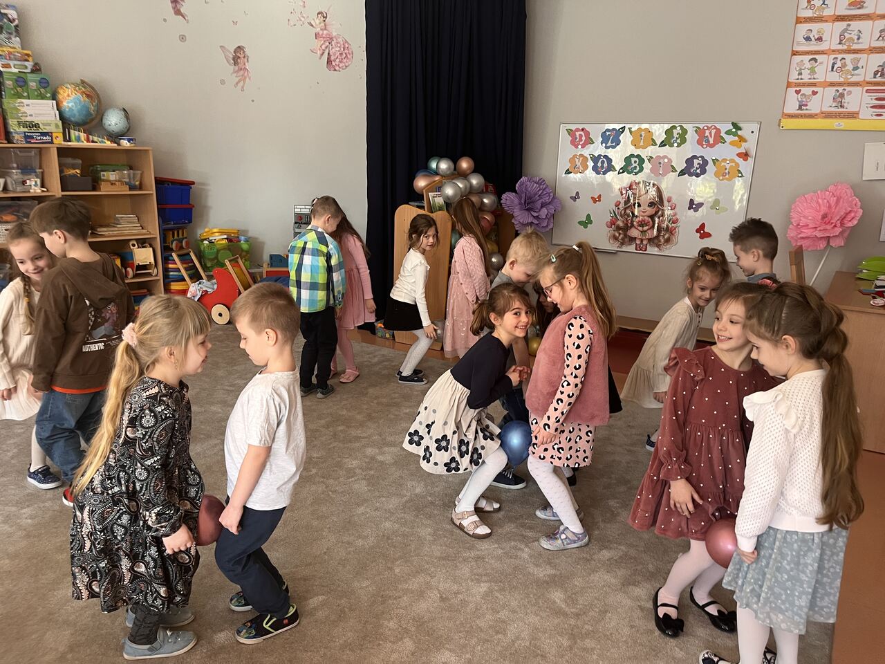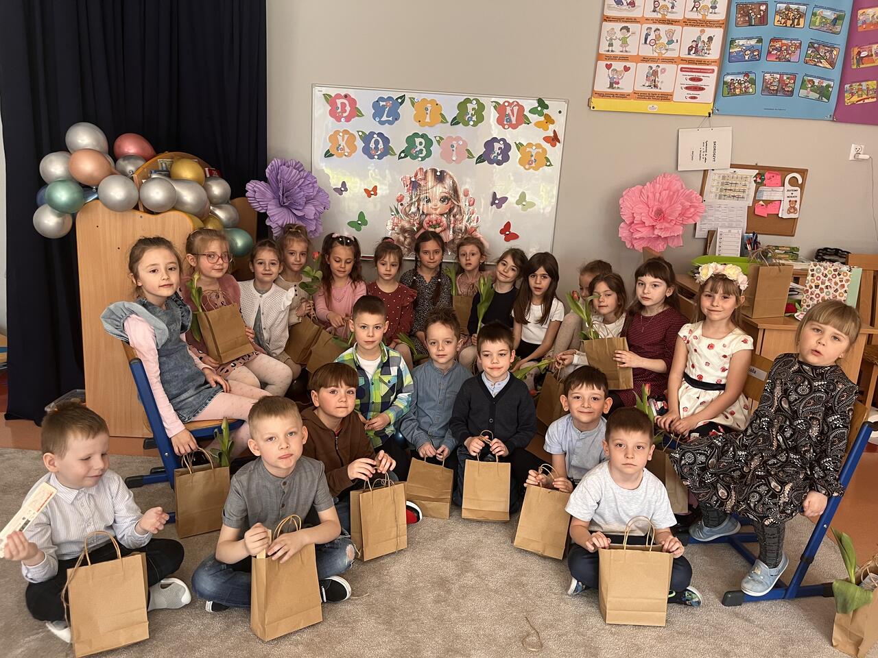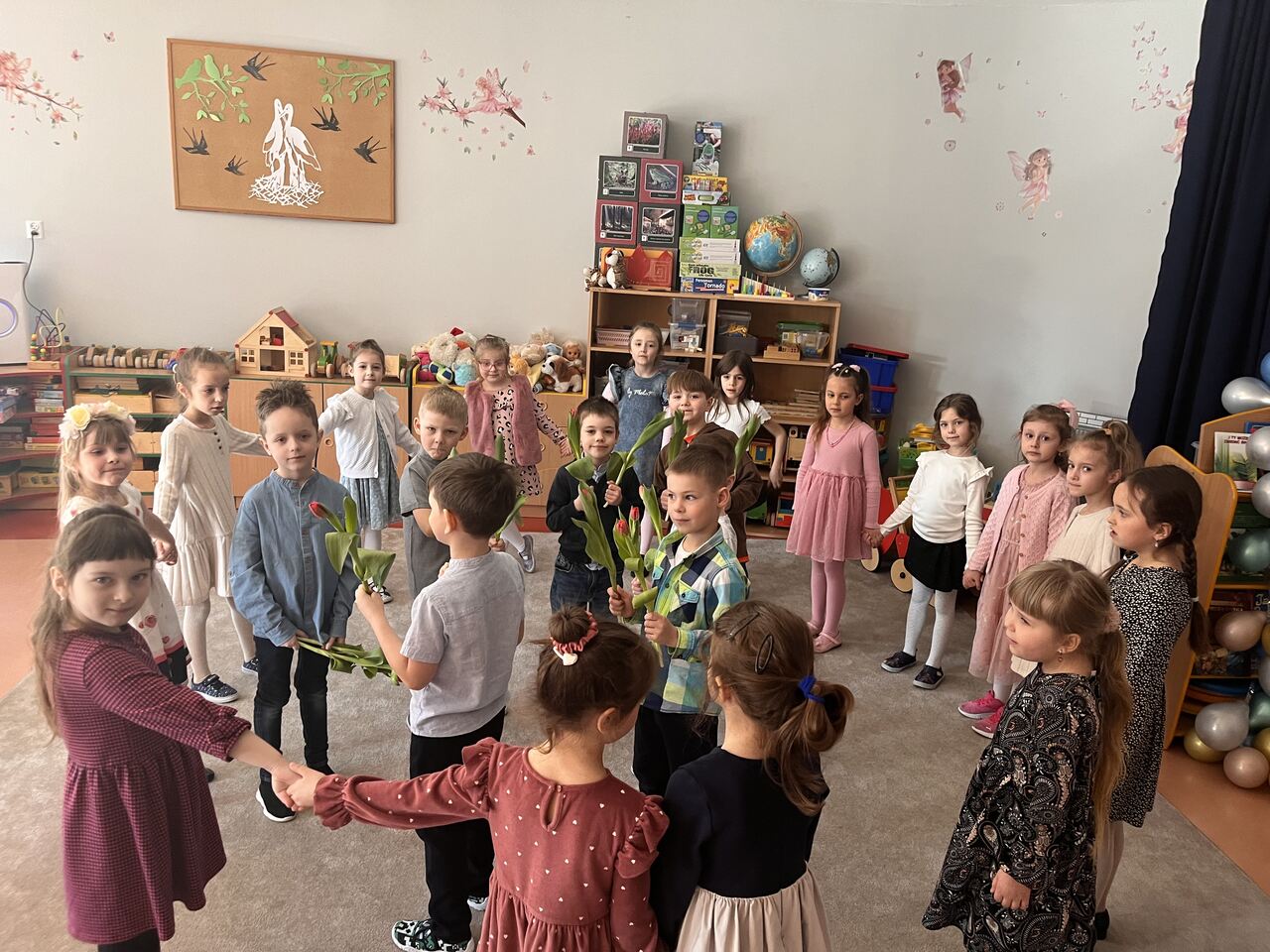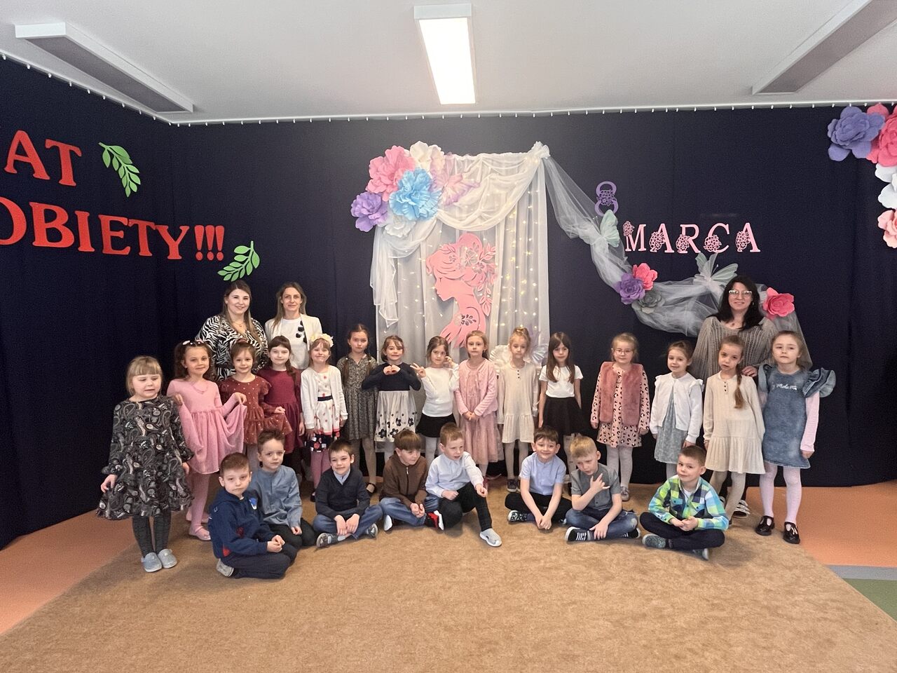 9 marca w naszym przedszkolu obchodziliśmy Dzień Kobiet. Świętowanie rozpoczęło się od występu młodszej grupy, która przygotowała piękne przedstawienie. Następnie w grupach odbyły się wesołe zabawy i tańce.Dziewczynki otrzymały kwiaty oraz drobne upominki, jednak nie zapomnieliśmy także o chłopcach, którzy również dostali małe niespodzianki :). Wszystkim kobietom – tym małym i tym dużym – życzymy dużo radości, uśmiechu i spełnienia marzeń!