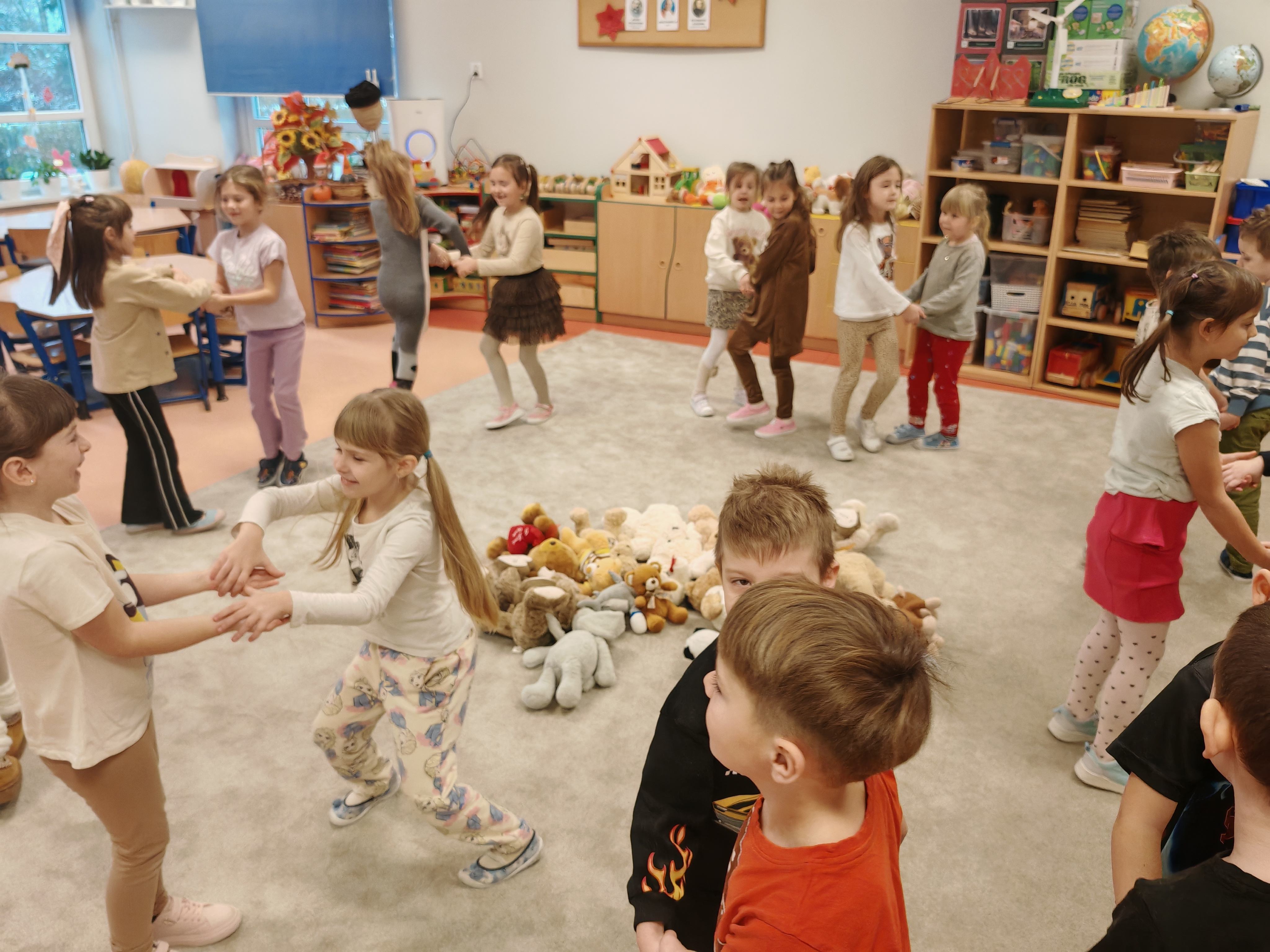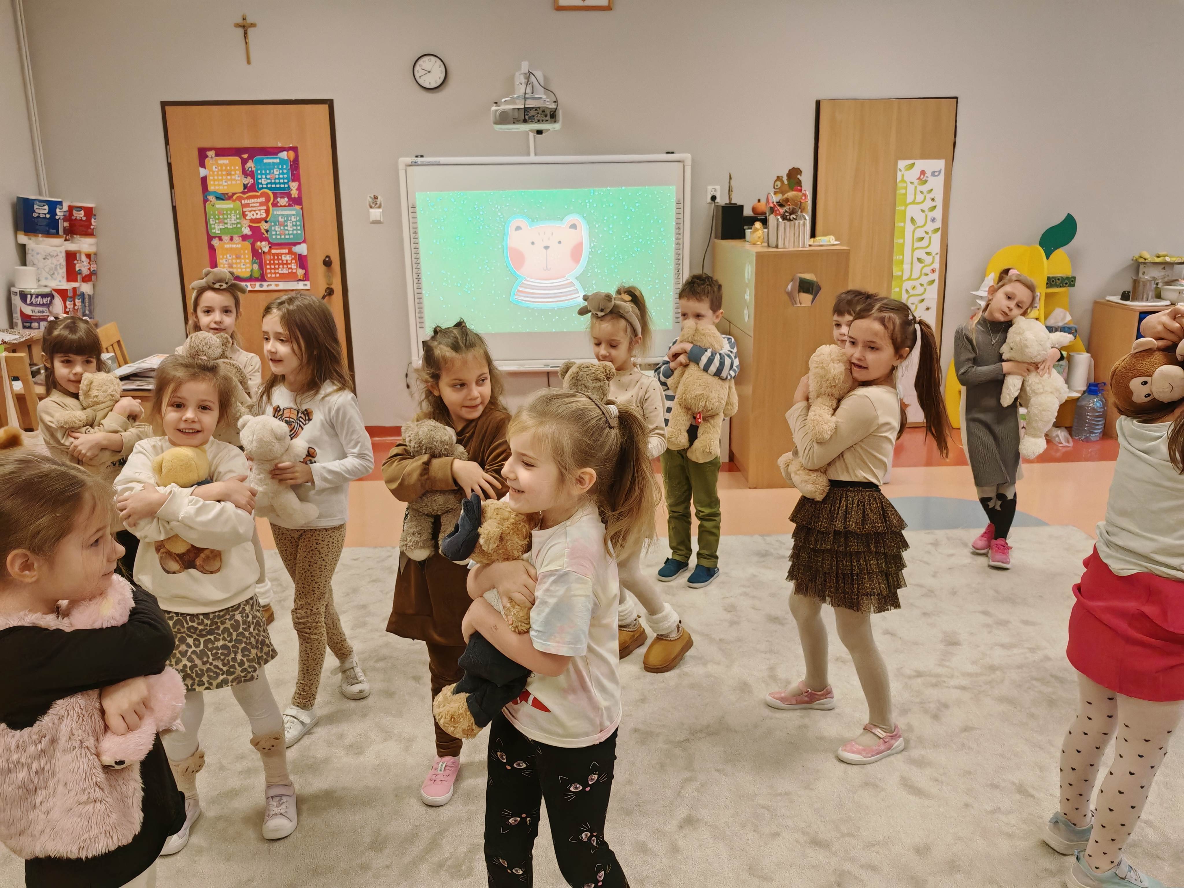 25 listopada swoje święto obchodzi Pluszowy Miś – najmilsza zabawka, najlepszy przyjaciel dzieci i niezastąpiona przytulanka przy zasypianiu. Tego dnia, każde dziecko przyszło do przedszkola ze swoim przyjacielem, by wspólnie z innymi celebrować te pełne radości chwile. Na dzieci i ich misie czekało wiele atrakcji. Poznały historię święta, wspólnie recytowały wiersze i rymowanki o misiach, bawiły się przy misiowych piosenkach, uczestniczyły w zabawach ruchowych i zręcznościowych. Nie zabrakło konkursów, quizów i zgadywanek o słynnych misiach występujących w znanych bajkach. Przedszkolaki również wykonały przepiękne prace plastyczne z misiem w roli głównej. Ten wyjątkowy dzień był pełen uśmiechu, radości i świetnej zabawy.