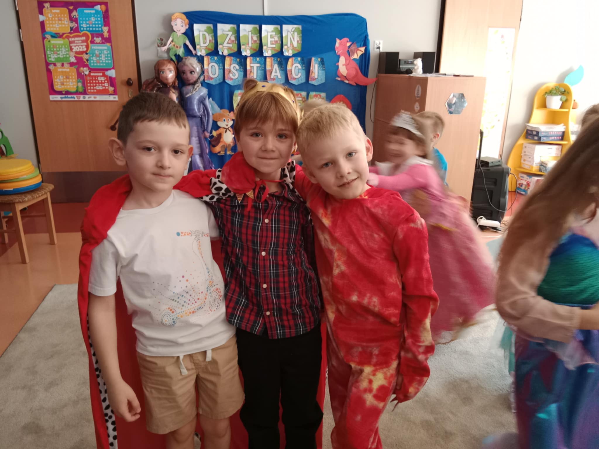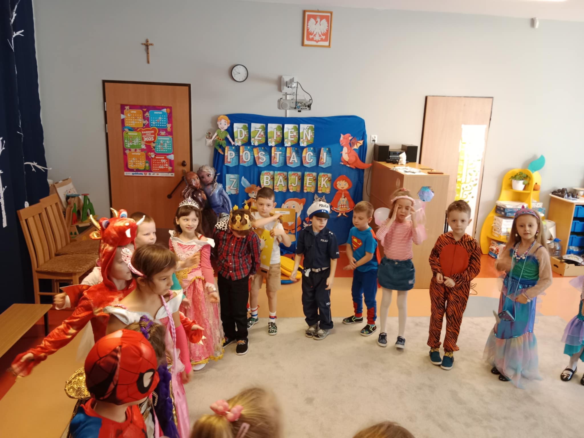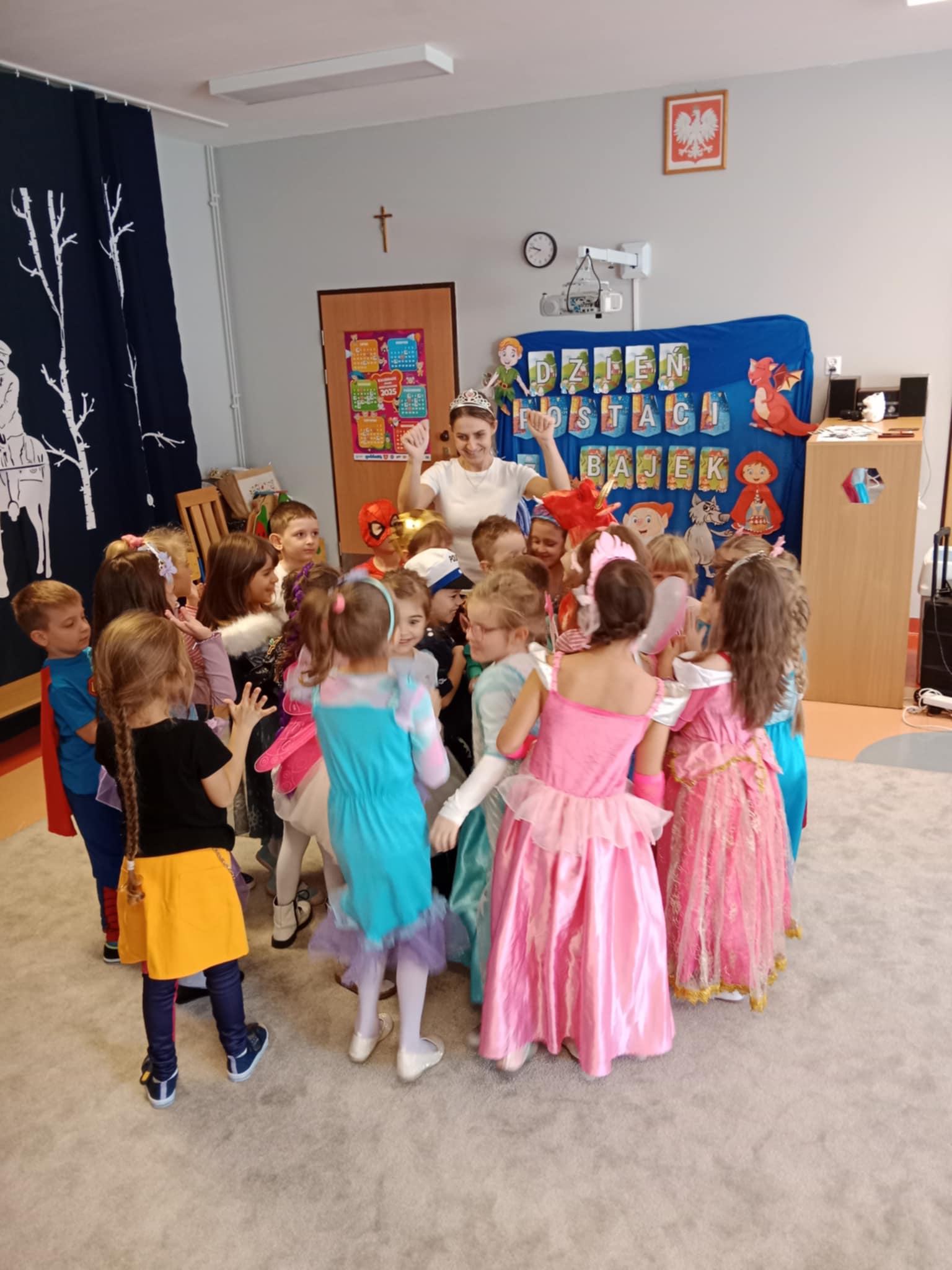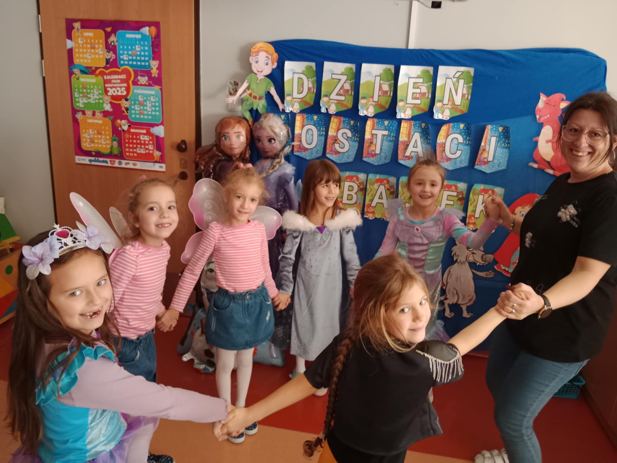 W naszym przedszkolu 5 listopada obchodziliśmy Dzień Postaci z Bajek – jedno z najbardziej kolorowych i radosnych świąt w roku. Tego dnia przedszkolaki przyszły ubrane w przepiękne stroje ulubionych bohaterów bajkowych. W salach można było spotkać m.in. księżniczki, rycerzy, wróżki, superbohaterów, a nawet zwierzątka z bajek. Dzieci uczestniczyły w licznych zabawach i quizach związanych z bajkami. Rozwiązywały zagadki, dopasowywały rekwizyty do znanych postaci, tańczyły przy bajkowych melodiach i wspólnie oglądały fragmenty ulubionych animacji. Nie zabrakło też rozmów o tym, czego uczą nas bajki – o przyjaźni, dobroci, odwadze i pomaganiu innym.To był wyjątkowy dzień pełen uśmiechu, dobrej zabawy i bajkowej magii, który na długo pozostanie w pamięci przedszkolaków!