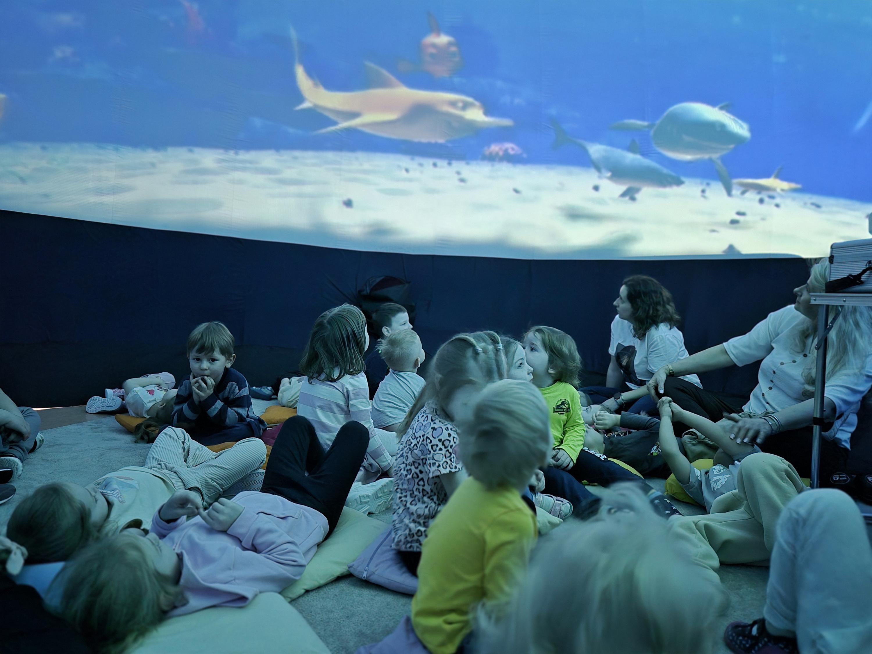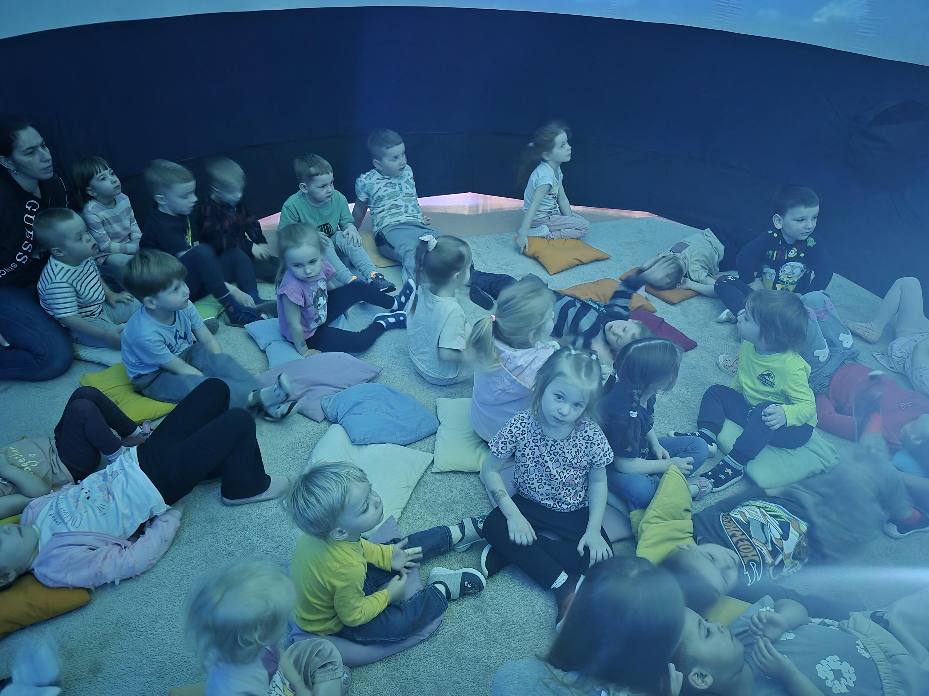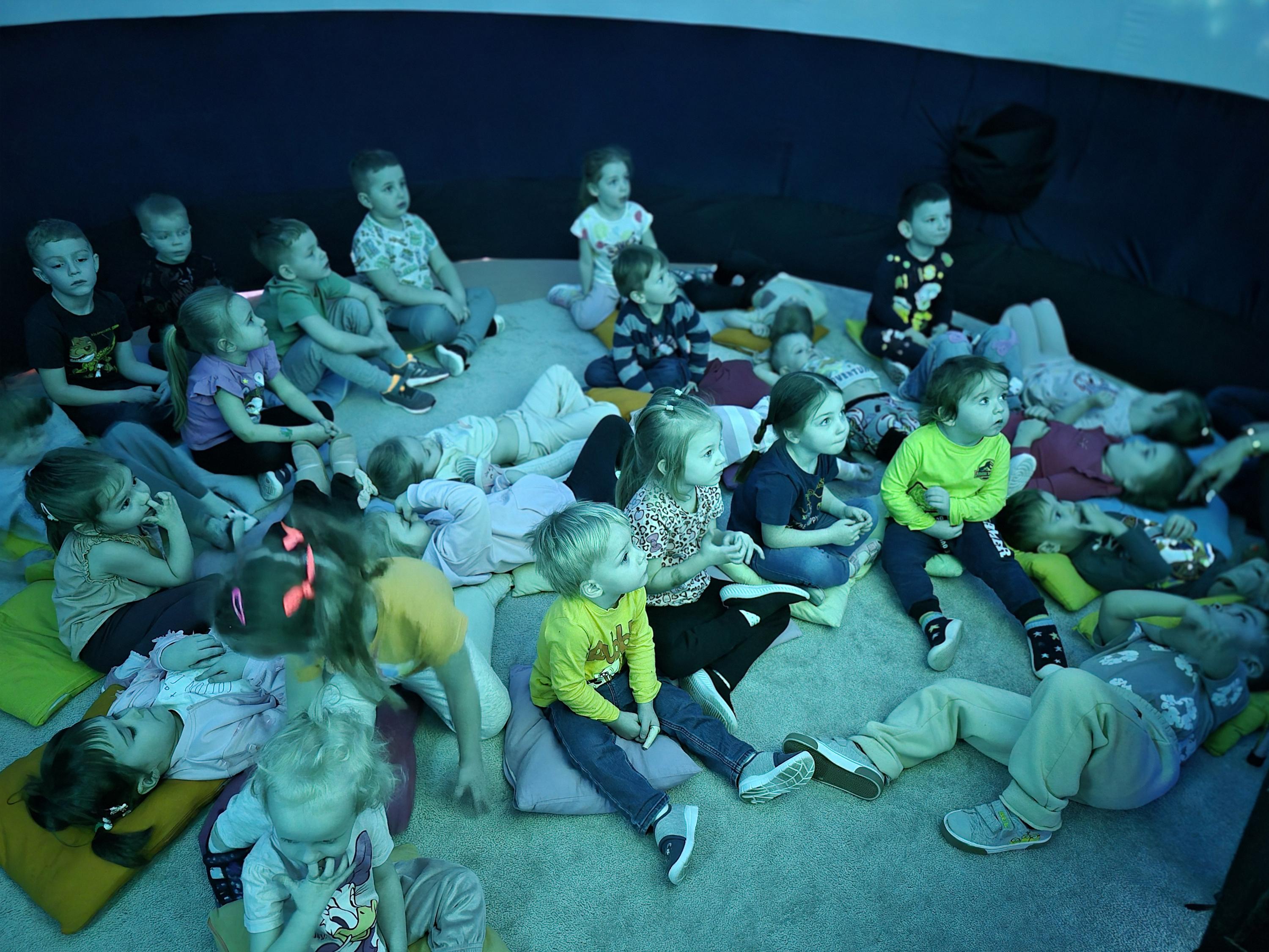 18 marca grupa „Krasnale” wzięła udział w niezwykłym seansie w kinie sferycznym. Dzieci oglądały film przyrodniczy wyświetlany w specjalnej kopule, która otaczała je obrazem z każdej strony. Taka forma projekcji pozwoliła im poczuć się jak w samym środku prezentowanych wydarzeń. Mali widzowie z zaciekawieniem śledzili świat roślin i zwierząt, odkrywając wiele nowych informacji. Seans wzbudził w dzieciach zainteresowanie przyrodą oraz chęć poznawania świata.