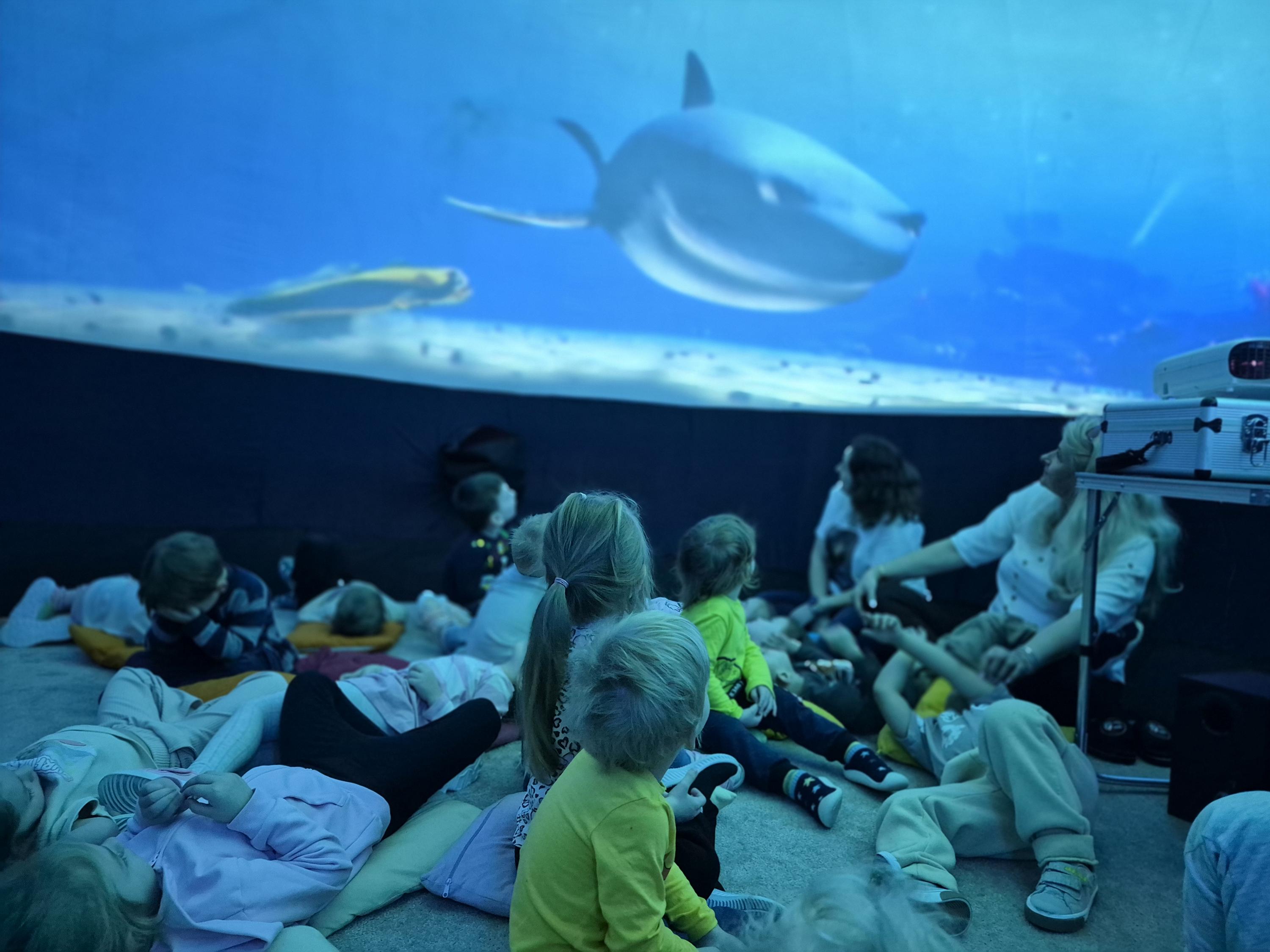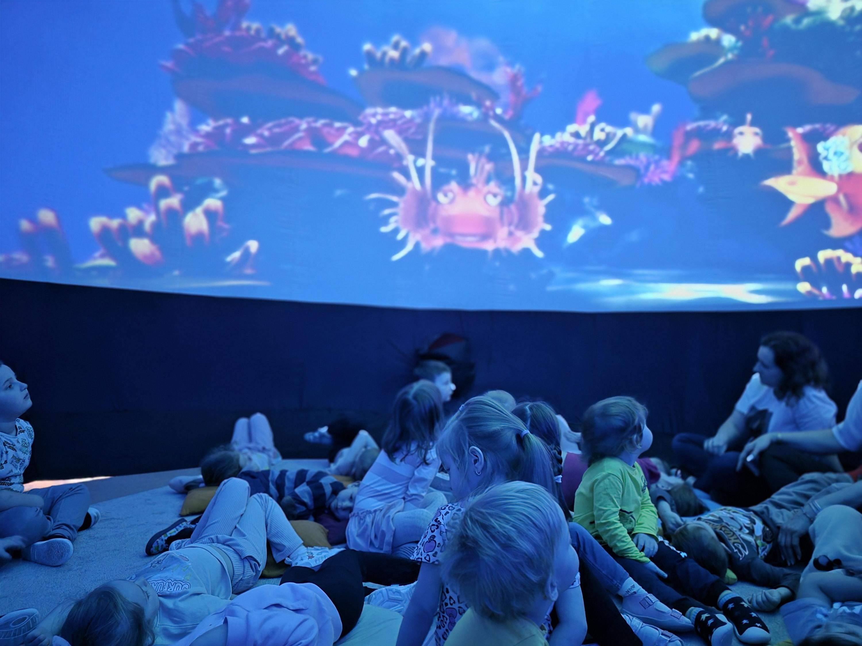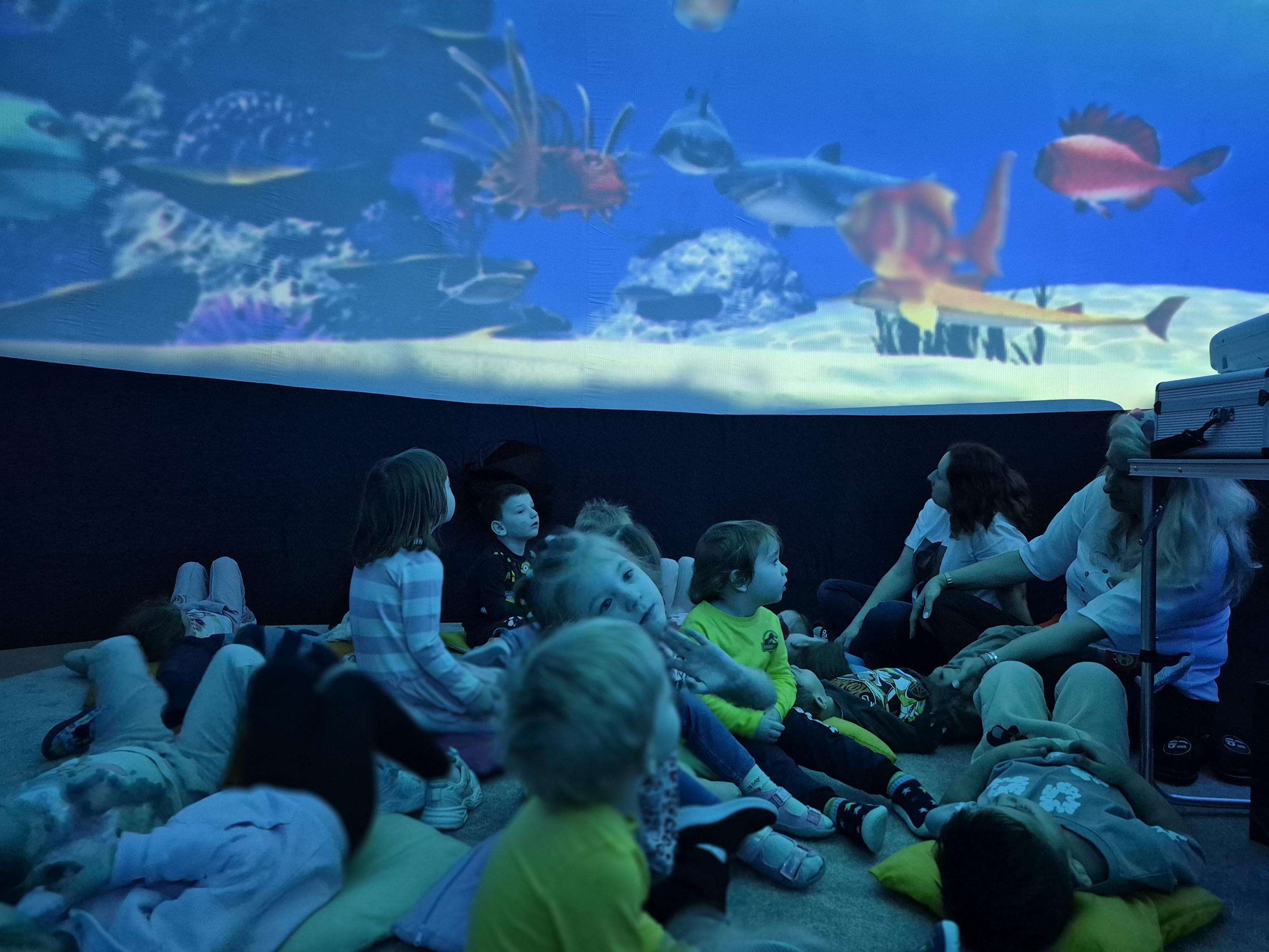 18 marca grupa „Krasnale” wzięła udział w niezwykłym seansie w kinie sferycznym. Dzieci oglądały film przyrodniczy wyświetlany w specjalnej kopule, która otaczała je obrazem z każdej strony. Taka forma projekcji pozwoliła im poczuć się jak w samym środku prezentowanych wydarzeń. Mali widzowie z zaciekawieniem śledzili świat roślin i zwierząt, odkrywając wiele nowych informacji. Seans wzbudził w dzieciach zainteresowanie przyrodą oraz chęć poznawania świata.