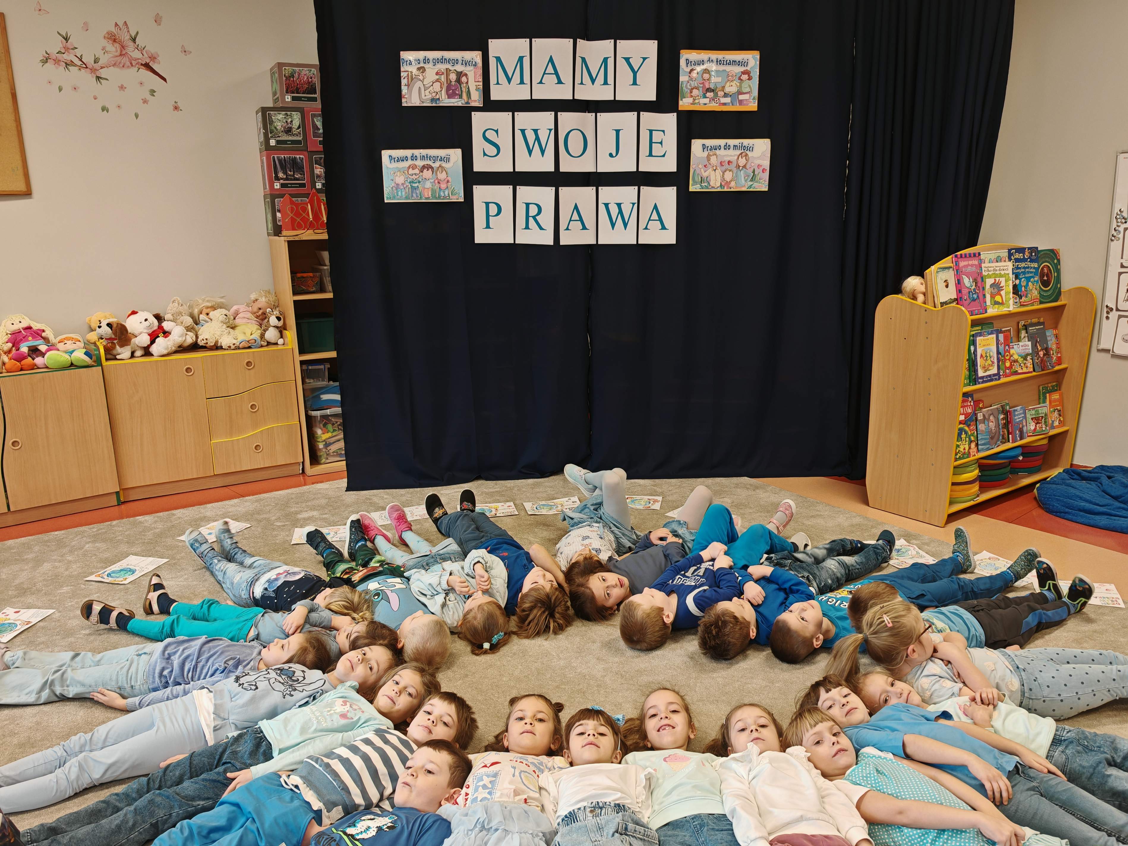 20 listopada to wyjątkowy dzień– rocznica uchwalenia Konwencji o prawach dziecka, która to gwarantuje wszystkim dzieciom równość wobec prawa. Każde dziecko, bez względu na swoje pochodzenie, narodowość, przynależność etniczną, kolor skóry, wyznawaną religię, status społeczno-ekonomiczny ma takie same prawa. Wszędzie na świecie prawa dziecka powinny być respektowane. W tym dniu przedszkolaki przyszły ubrane na niebiesko, kolorze będącym symbolem solidarności ze wszystkimi dziećmi na świecie, również tymi, których prawa nie są przestrzegane. Ważnym elementem wychowania przedszkolnego jest kształtowanie u dzieci świadomości ich własnych praw, uczenie poszanowania praw innych i radzenie sobie w sytuacjach naruszania własnych praw.