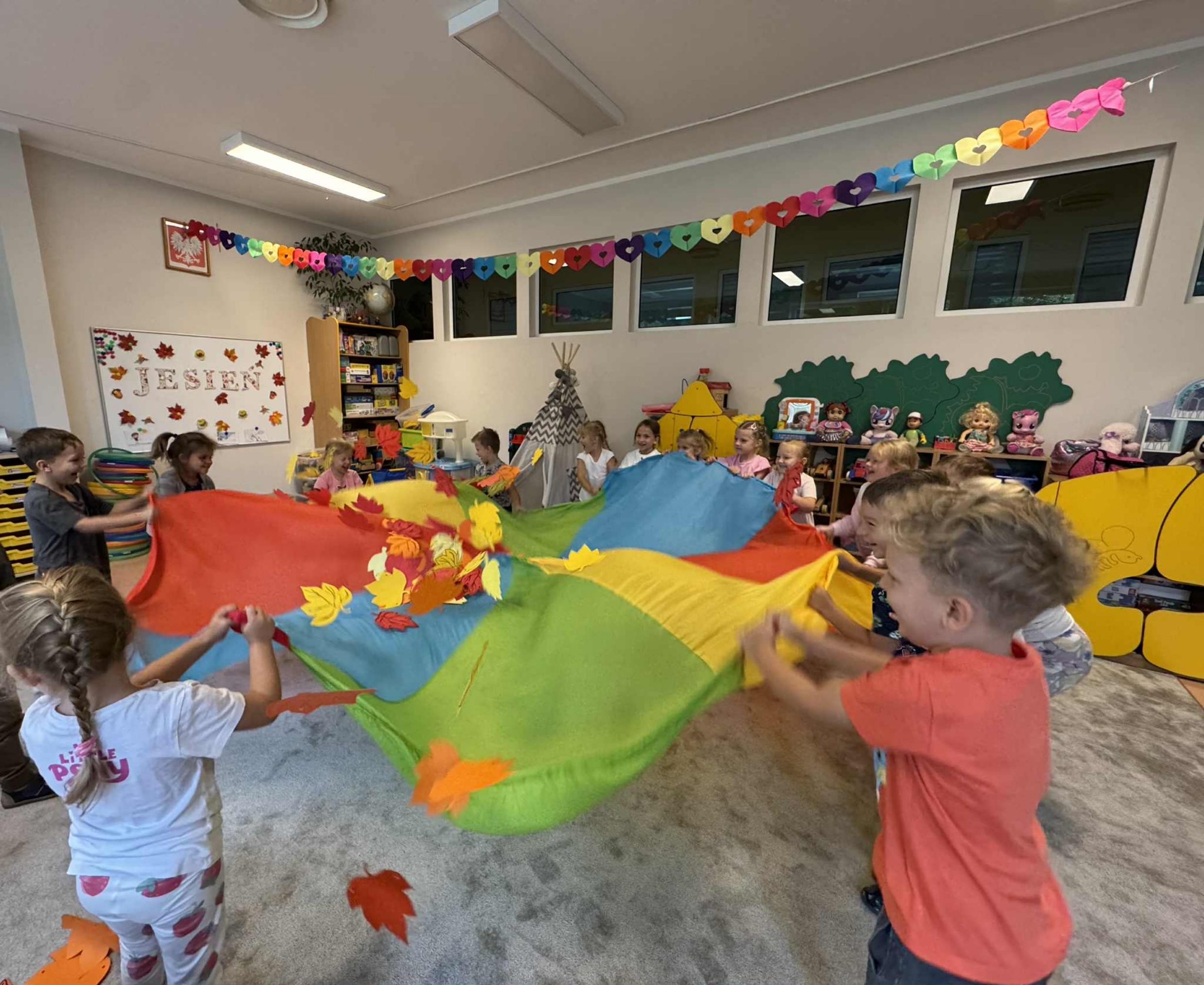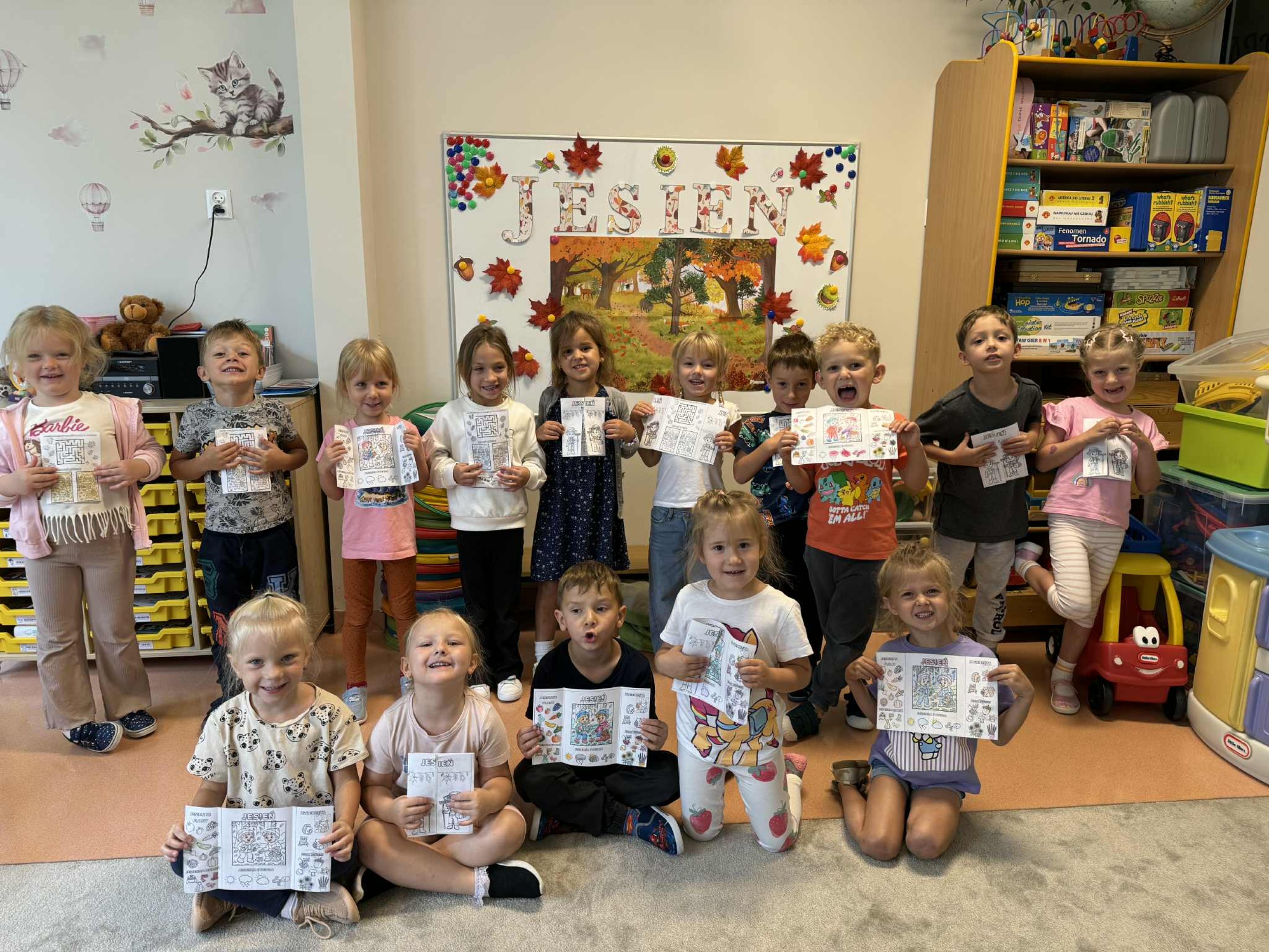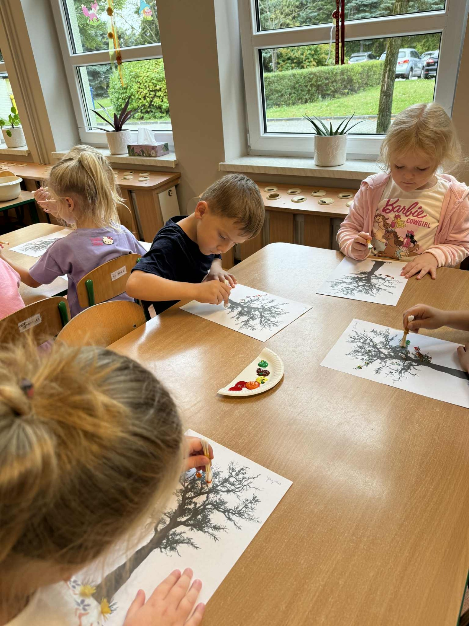 22 września dzieci z naszego przedszkola uroczyście powitały "Pierwszy Dzień Jesieni". Tego dnia dzieci poznały dary jesieni, układały domino, tańczyły jesienne tańce, brały udział w zabawach z wykorzystaniem liści, wykonały swoją Jesienną Książeczkę. Przedszkolaki były również tego dnia na jesiennym spacerze, gdzie odbyły się poszukiwania oznak jesieni. Nie zabrakło również kolorowych prac plastycznych...