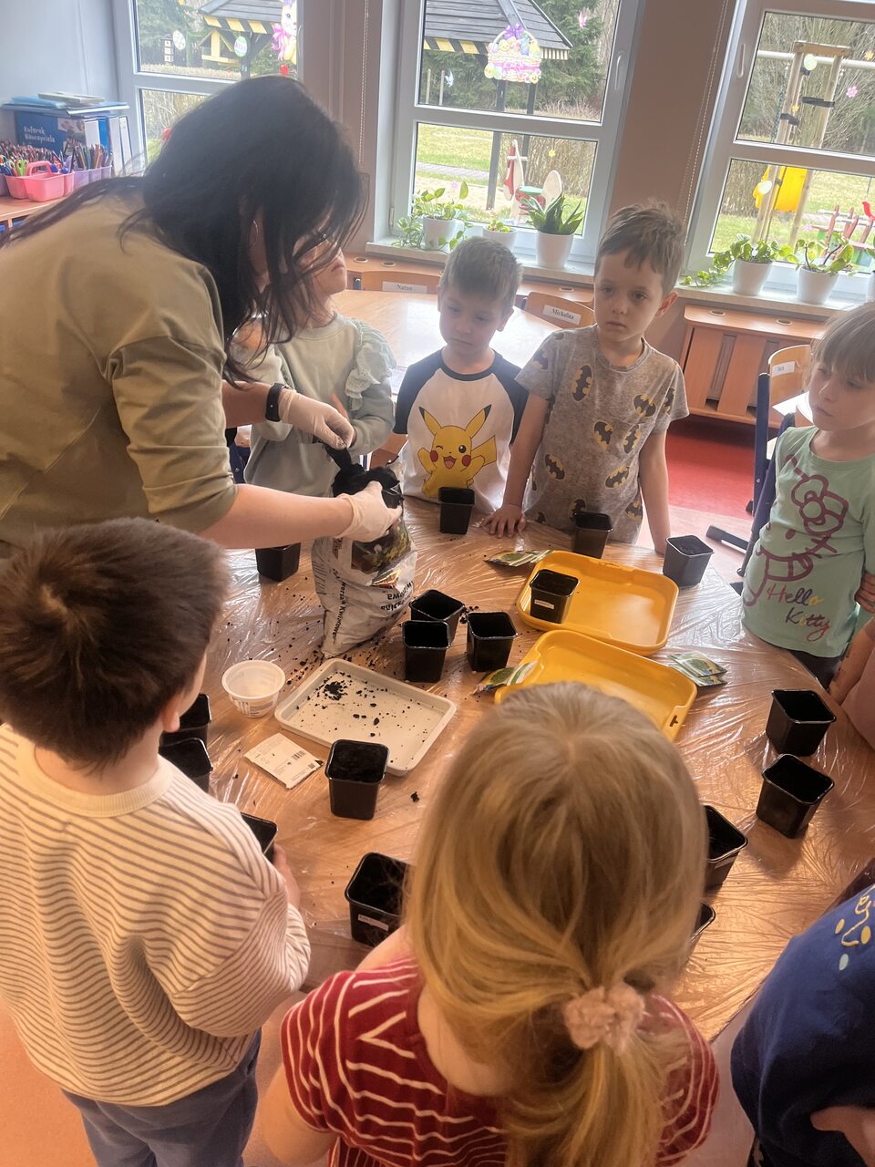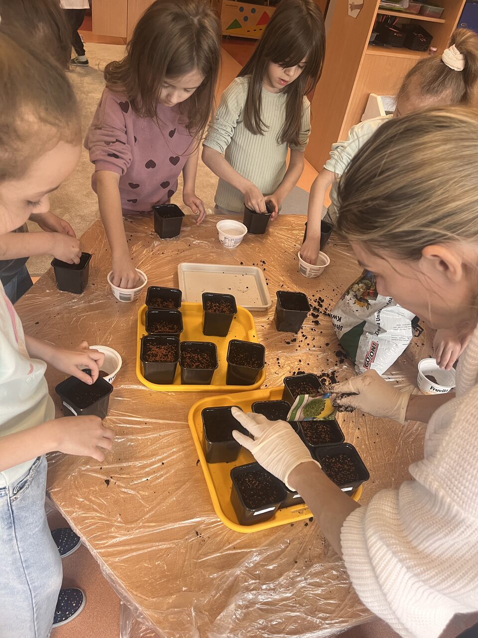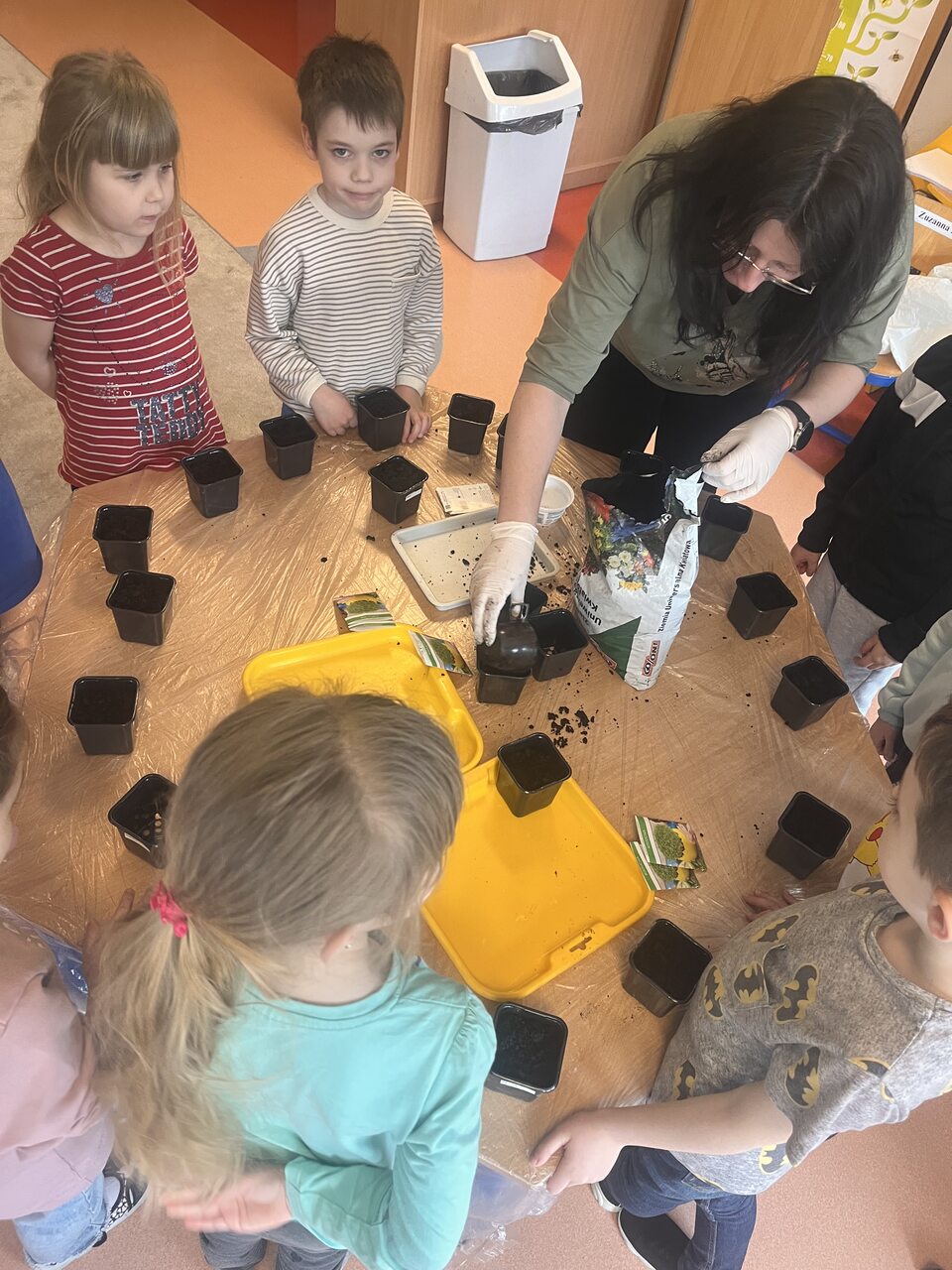 Podczas zajęć dzieci wzięły udział w krótkiej pogadance na temat tego, czego potrzebują rośliny do wzrostu. Dowiedziały się, jak ważne są: woda, światło, powietrze oraz odpowiednia gleba. Następnie przystąpiły do działania – samodzielnie przygotowywały swoje doniczki, wsypywały ziemię, a potem siały nasionka rzeżuchy. Każdy pracował z dużym zaangażowaniem i ciekawością, obserwując kolejne etapy pracy. Na zakończenie dzieci zabrały swoje uprawy do domu, aby móc dalej je pielęgnować i obserwować, jak roślinki rosną każdego dnia. To była nie tylko świetna zabawa, ale także cenna lekcja przyrody!