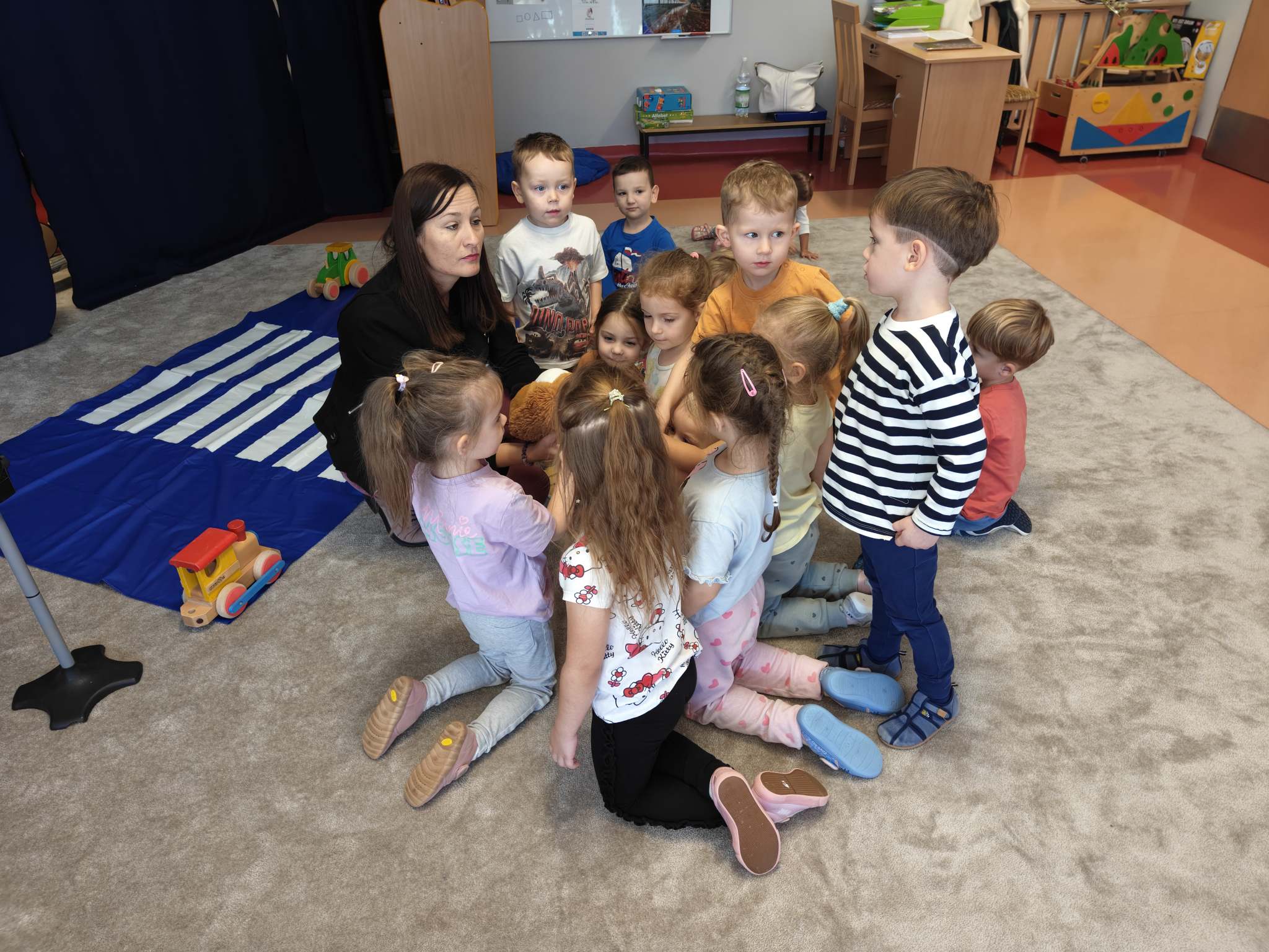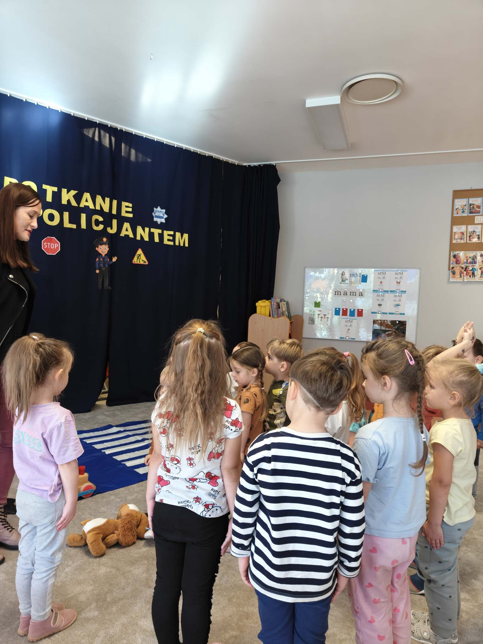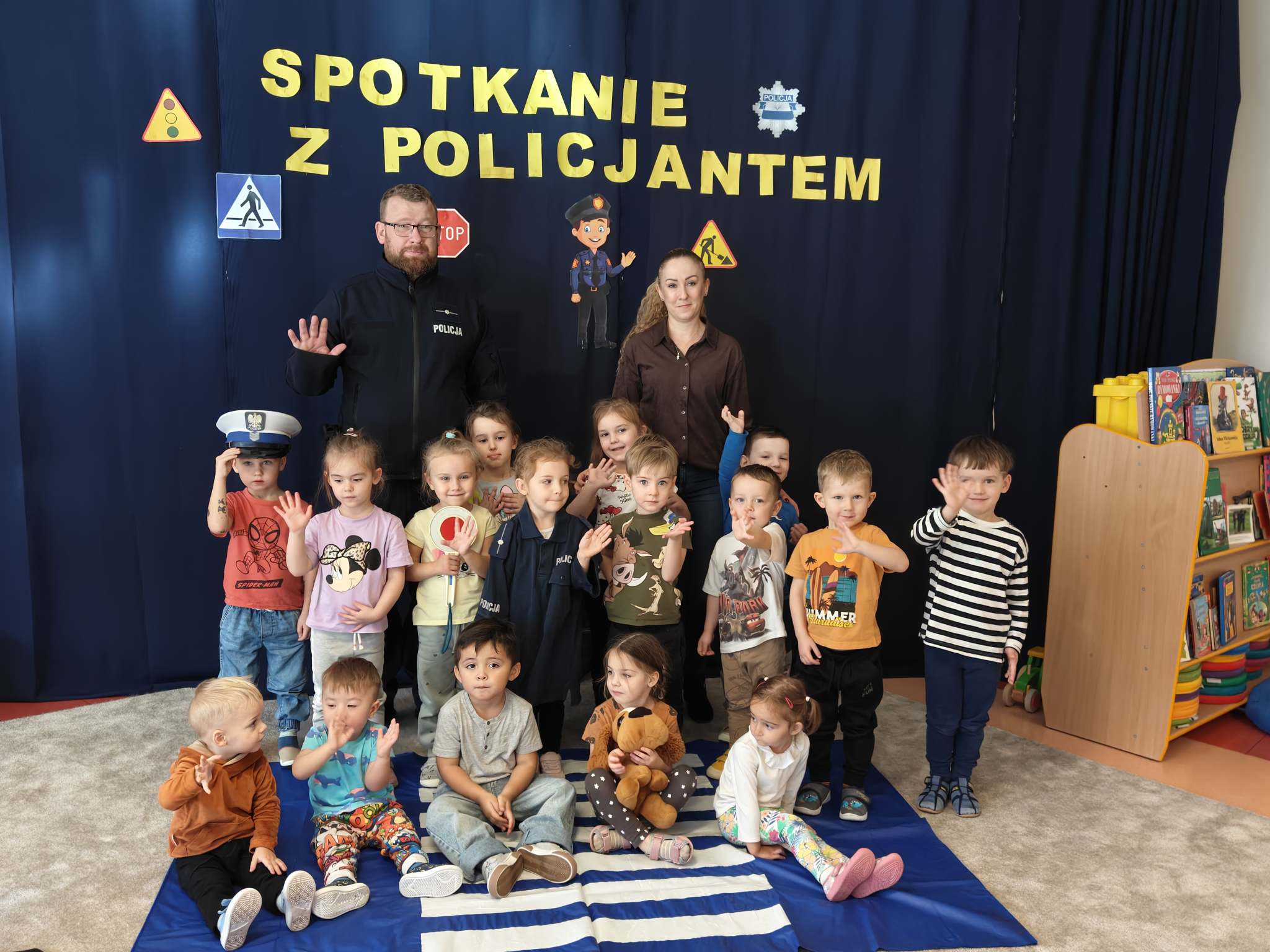 Nasze przedszkolaki 31 października miały możliwość uczestniczyć w spotkaniu z przedstawicielami Komendy Powiatowej Policji pt. „Bezpieczny Przedszkolak”. Podczas zajęć na temat bezpieczeństwa dzieci dowiedziały się m.in. o zasadach ruchu drogowego, numerach alarmowych oraz właściwym zachowaniu wobec nieznajomych oraz obcych psów. Dużą atrakcją było wyposażenie policyjne, które dzieci mogły zobaczyć z bliska. Spotkanie było bardzo ciekawe i wyposażyło dzieci w nową wiedzę i umiejętności.
