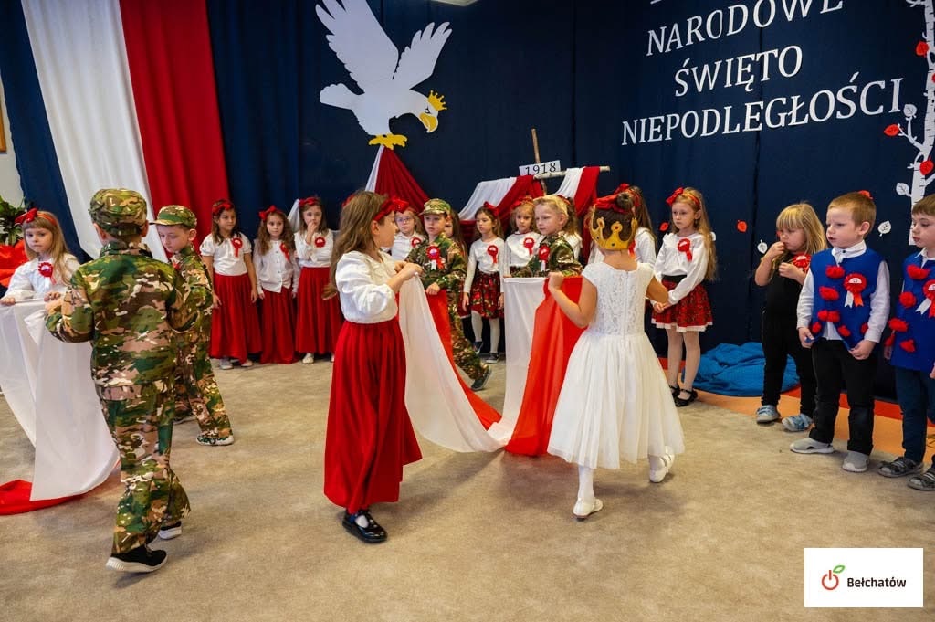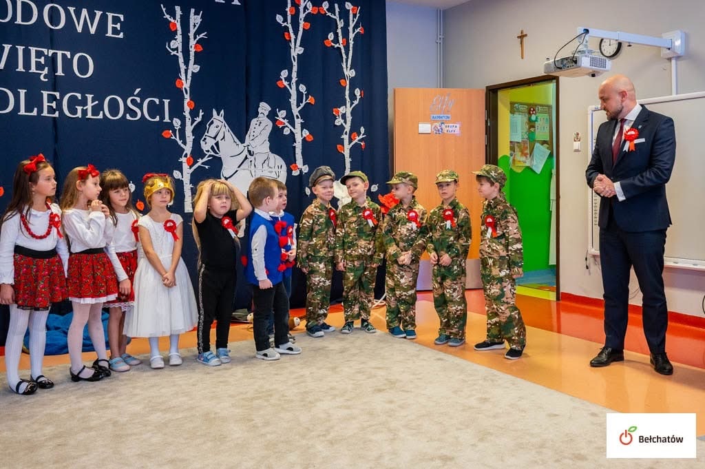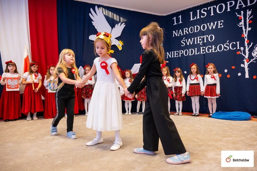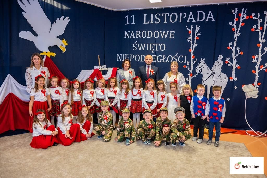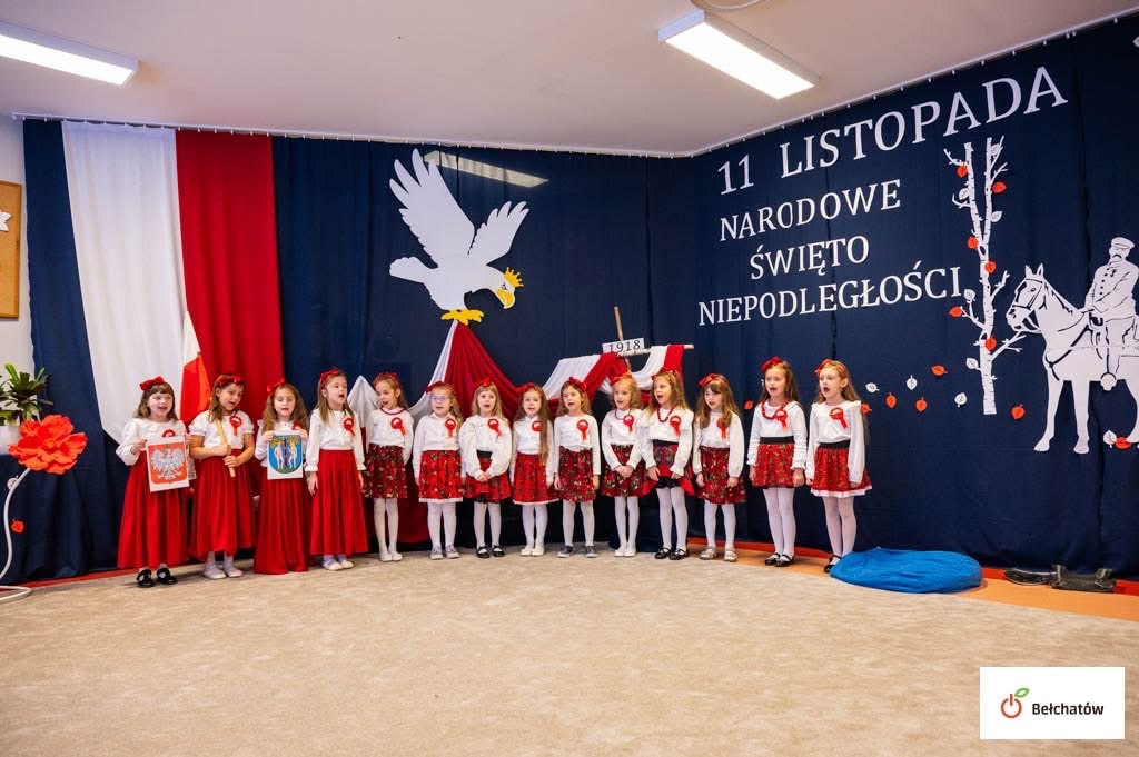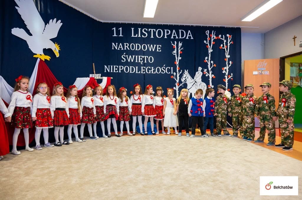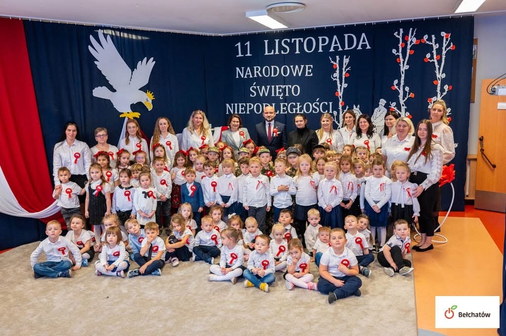 W naszym przedszkolu 6 listopada odbyła się uroczystość z okazji Narodowego Święta Niepodległości. Dzieci z grupy „Elfy” przygotowały piękny program artystyczny, w którym zaprezentowały wiersze, piosenki oraz taniec patriotyczny. Mali artyści z ogromnym zaangażowaniem wystąpili przed zaproszonymi gośćmi, nauczycielami i rówieśnikami. Na uroczystość przybył Wiceprezydent Miasta Bełchatowa – Pan Wojciech Piasecki, który z uznaniem podziękował dzieciom i nauczycielom za przygotowanie wzruszającego występu. Przedszkolaki w odświętnych biało-czerwonych strojach z dumą śpiewały pieśni patriotyczne, pokazując, że pamiętają o historii naszego kraju i znaczeniu wolności. Uroczystość przebiegła w podniosłej, a zarazem serdecznej atmosferze. Był to wyjątkowy dzień, który pozwolił najmłodszym w piękny sposób uczcić rocznicę odzyskania przez Polskę niepodległości.