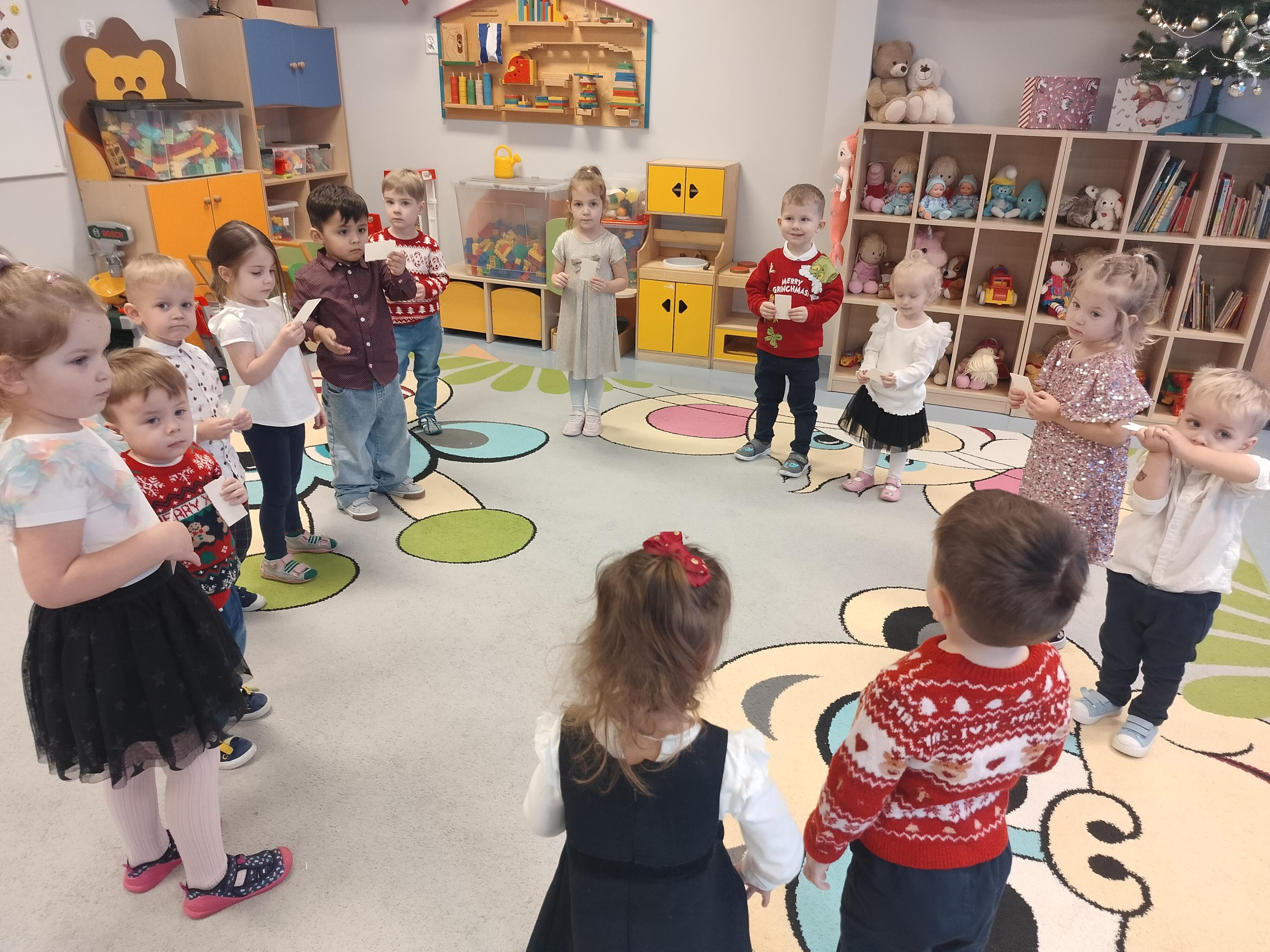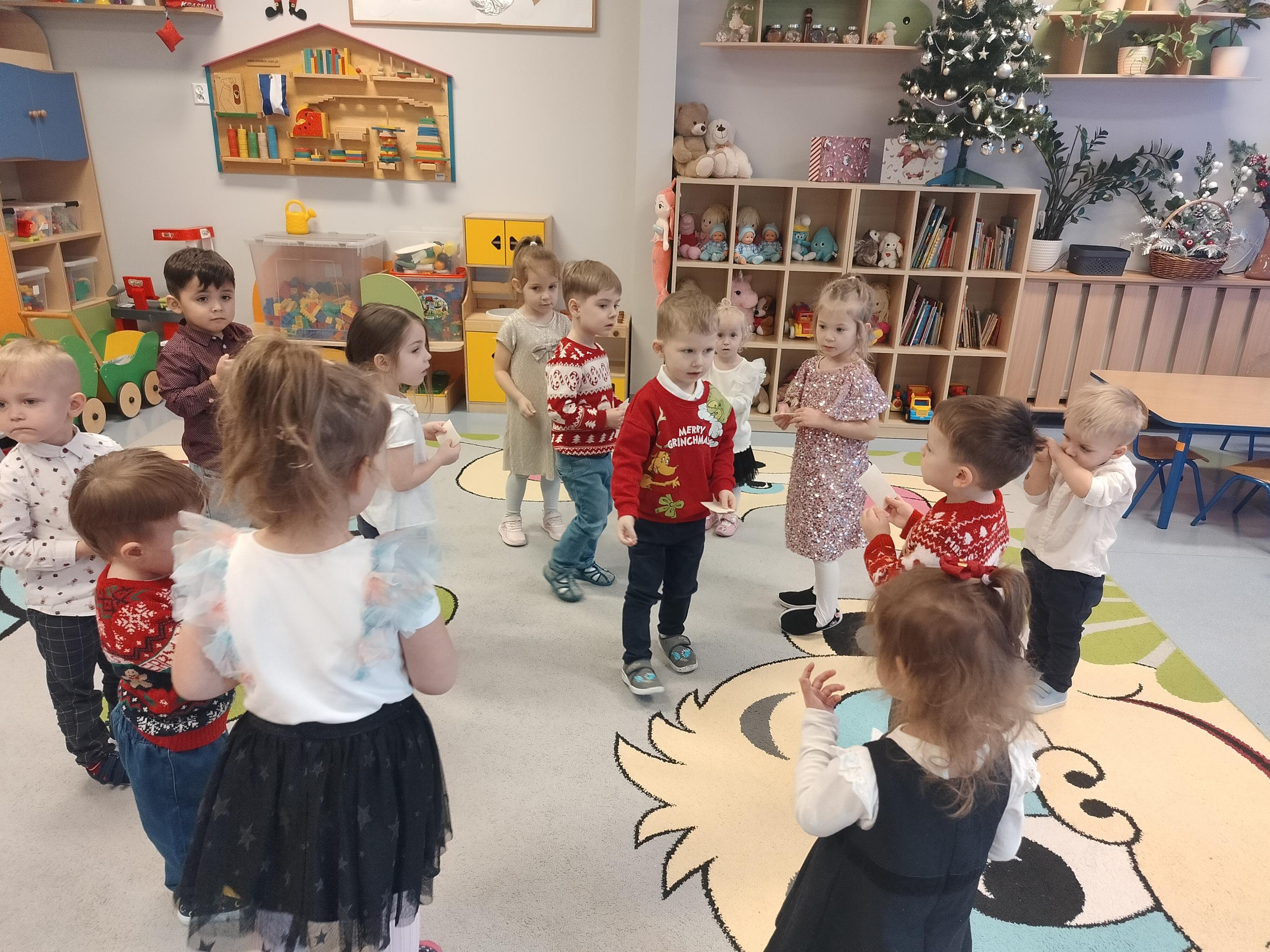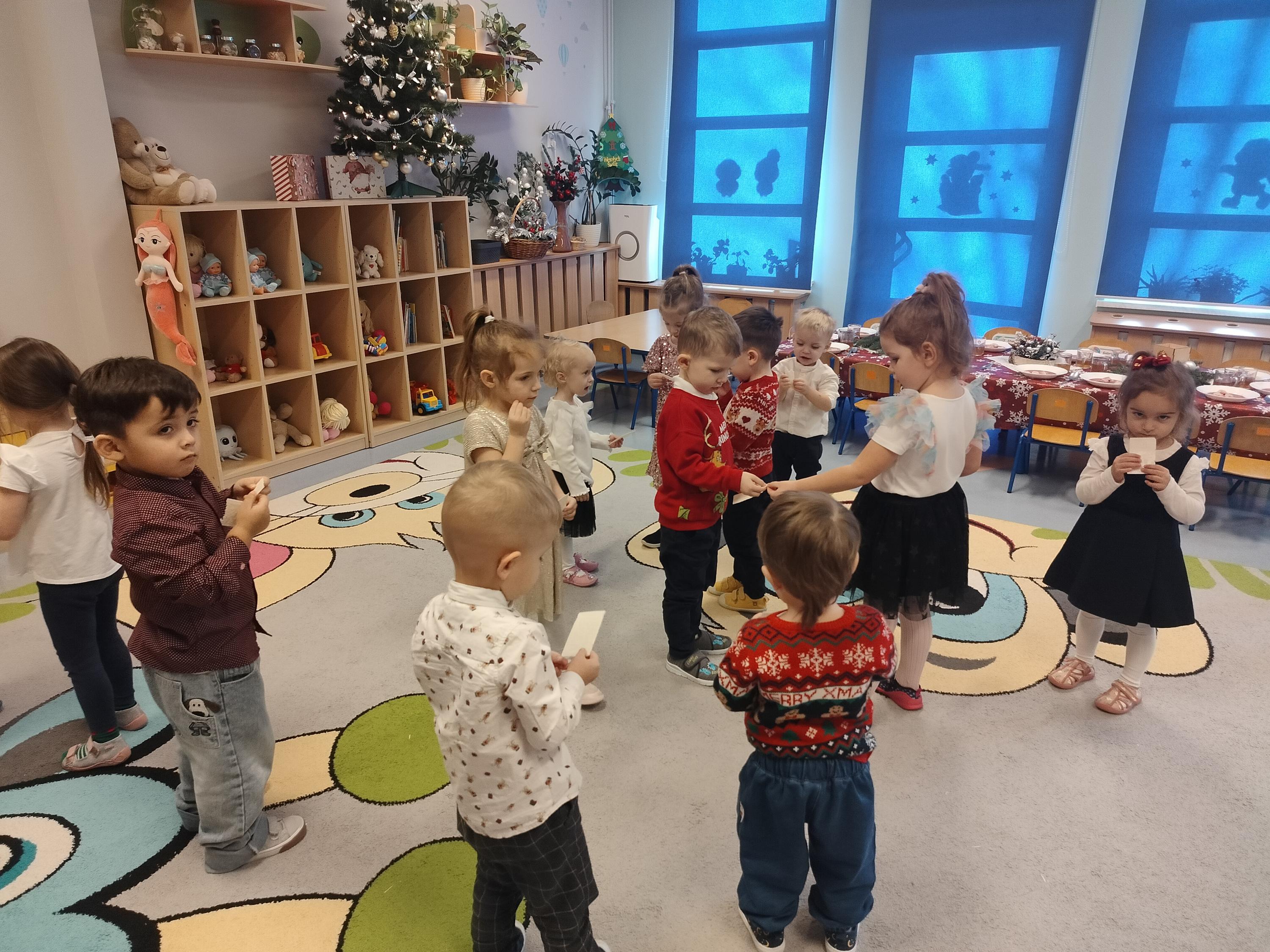 W piątek, 19 grudnia, w naszym przedszkolu panowała wyjątkowa, świąteczna atmosfera. Dzieci uczestniczyły w uroczystym obiedzie wigilijnym, podczas którego nie zabrakło pięknie udekorowanych stołów, wspólnego posiłku oraz dzielenia się opłatkiem. Był to czas pełen radości, serdeczności i wzajemnej życzliwości. Wspólne przeżywanie tych chwil pozwoliło dzieciom poznać i kultywować piękne bożonarodzeniowe tradycje oraz budować poczucie wspólnoty w naszej przedszkolnej grupie.