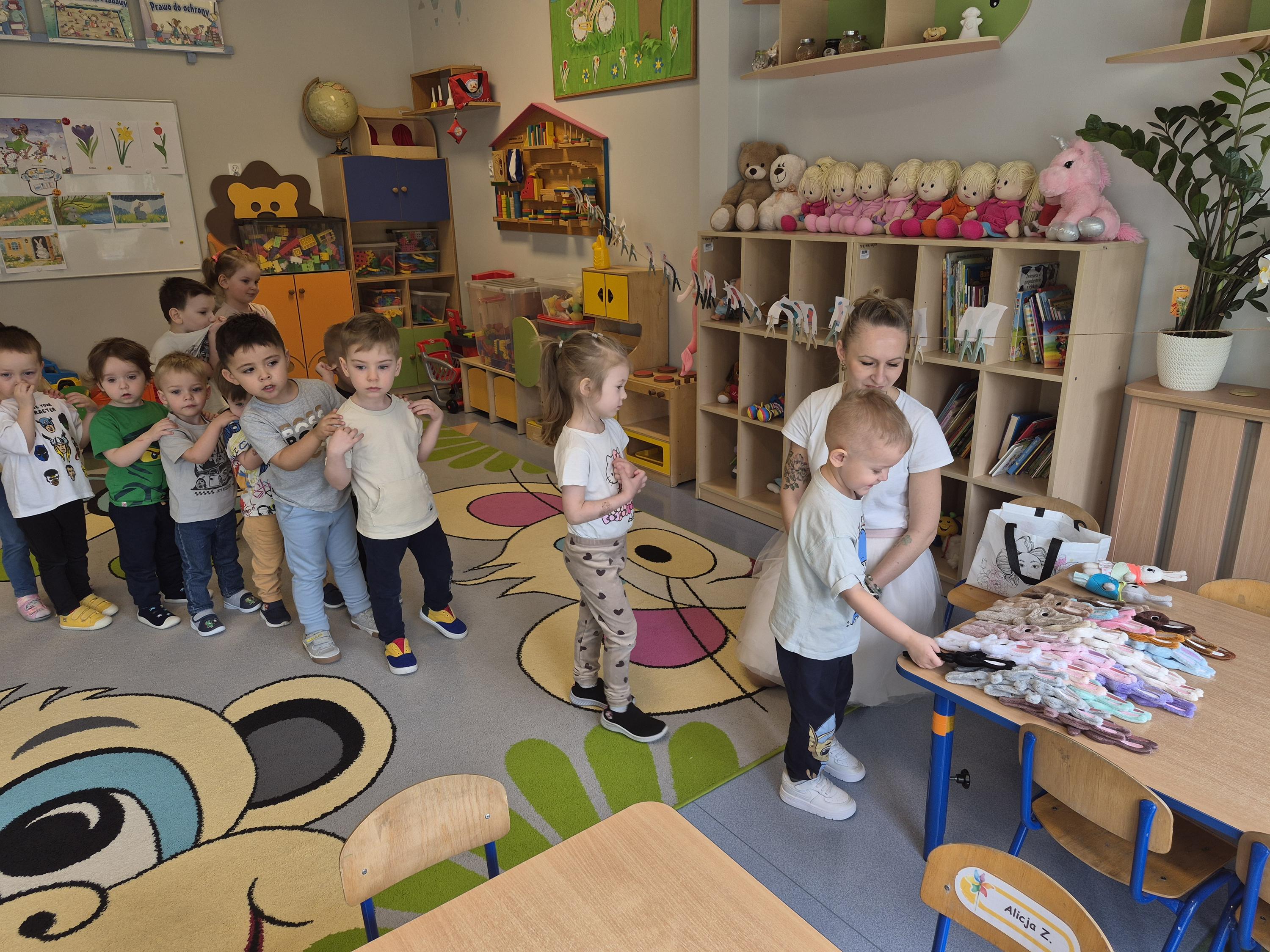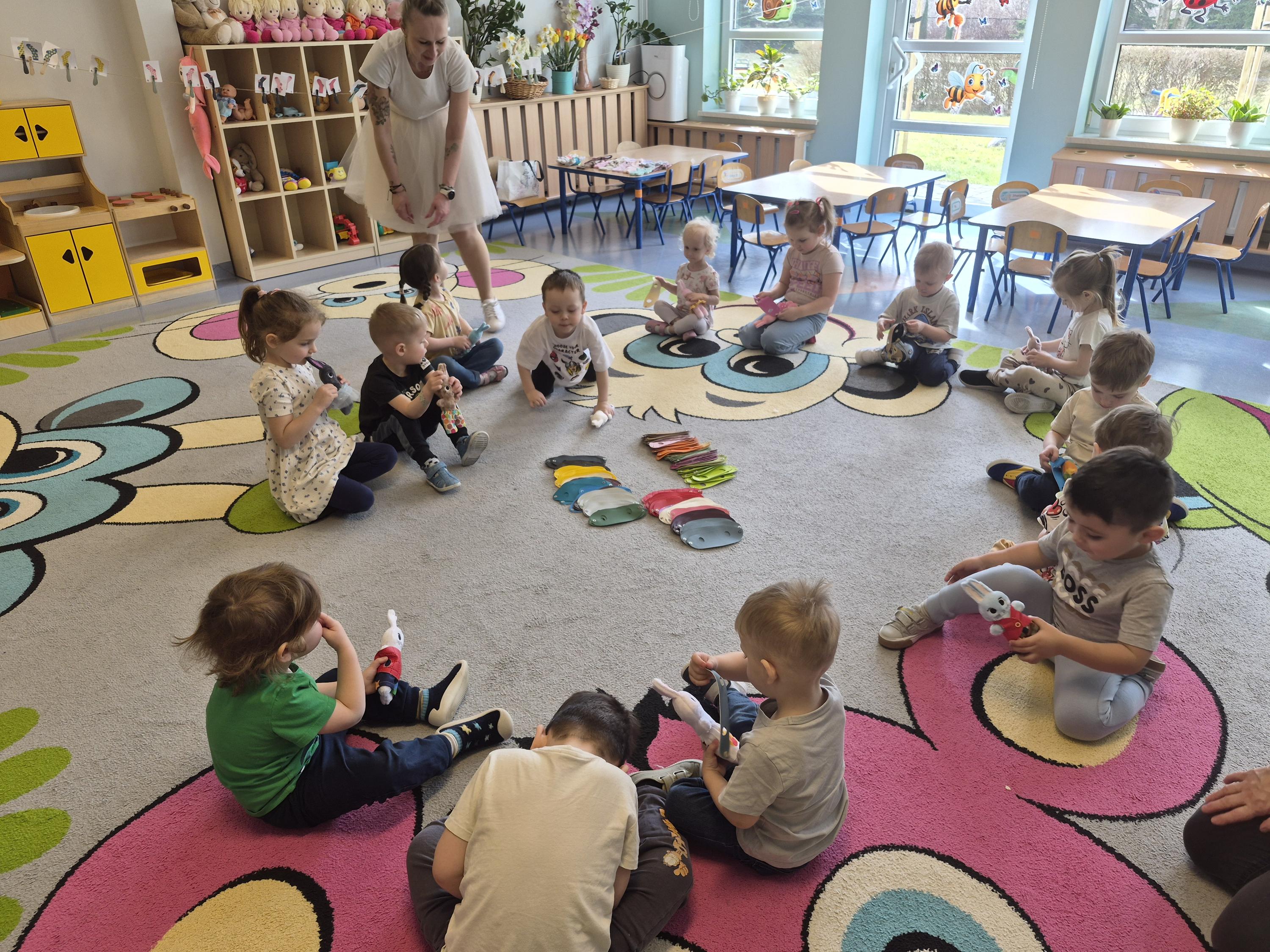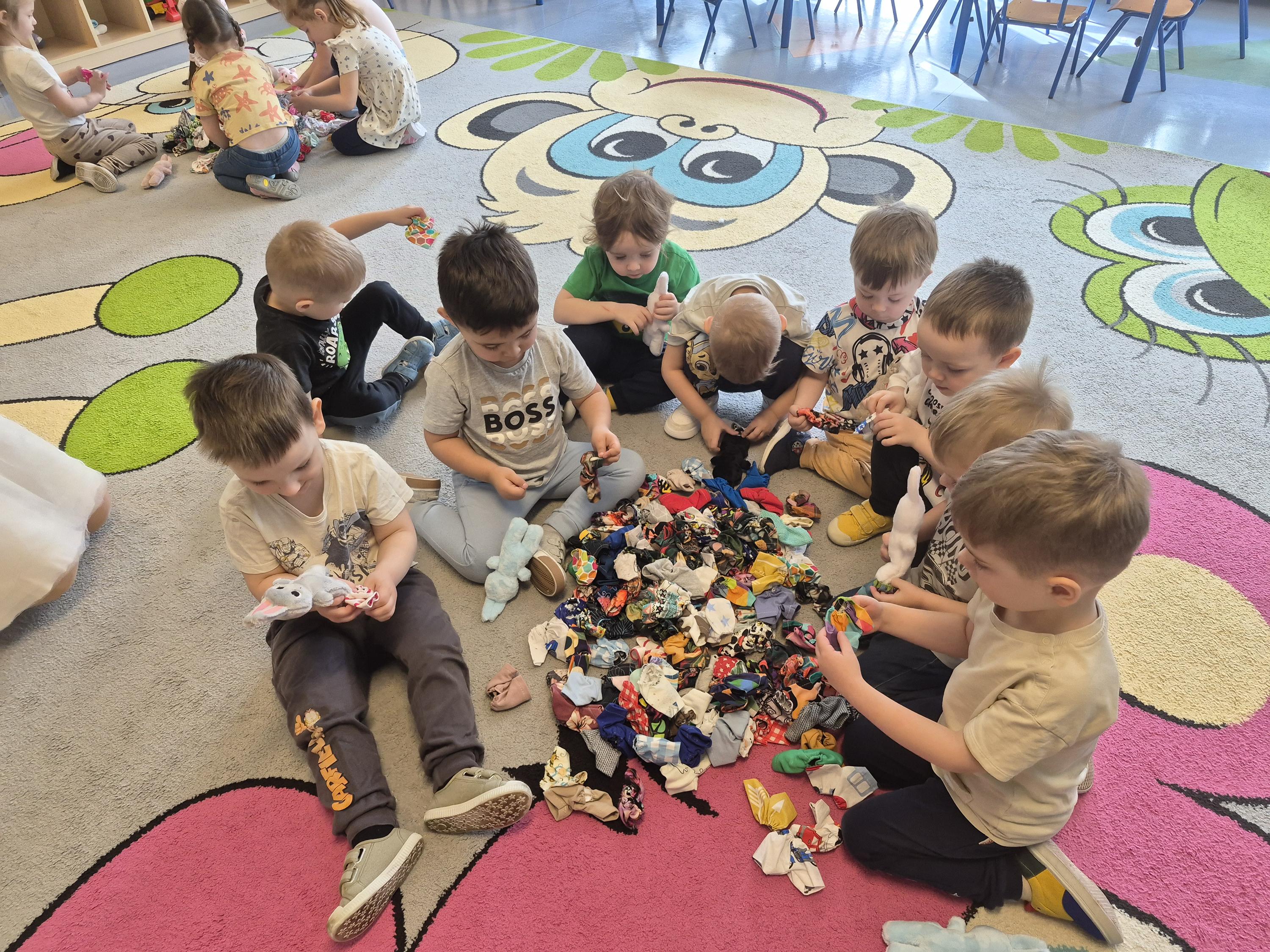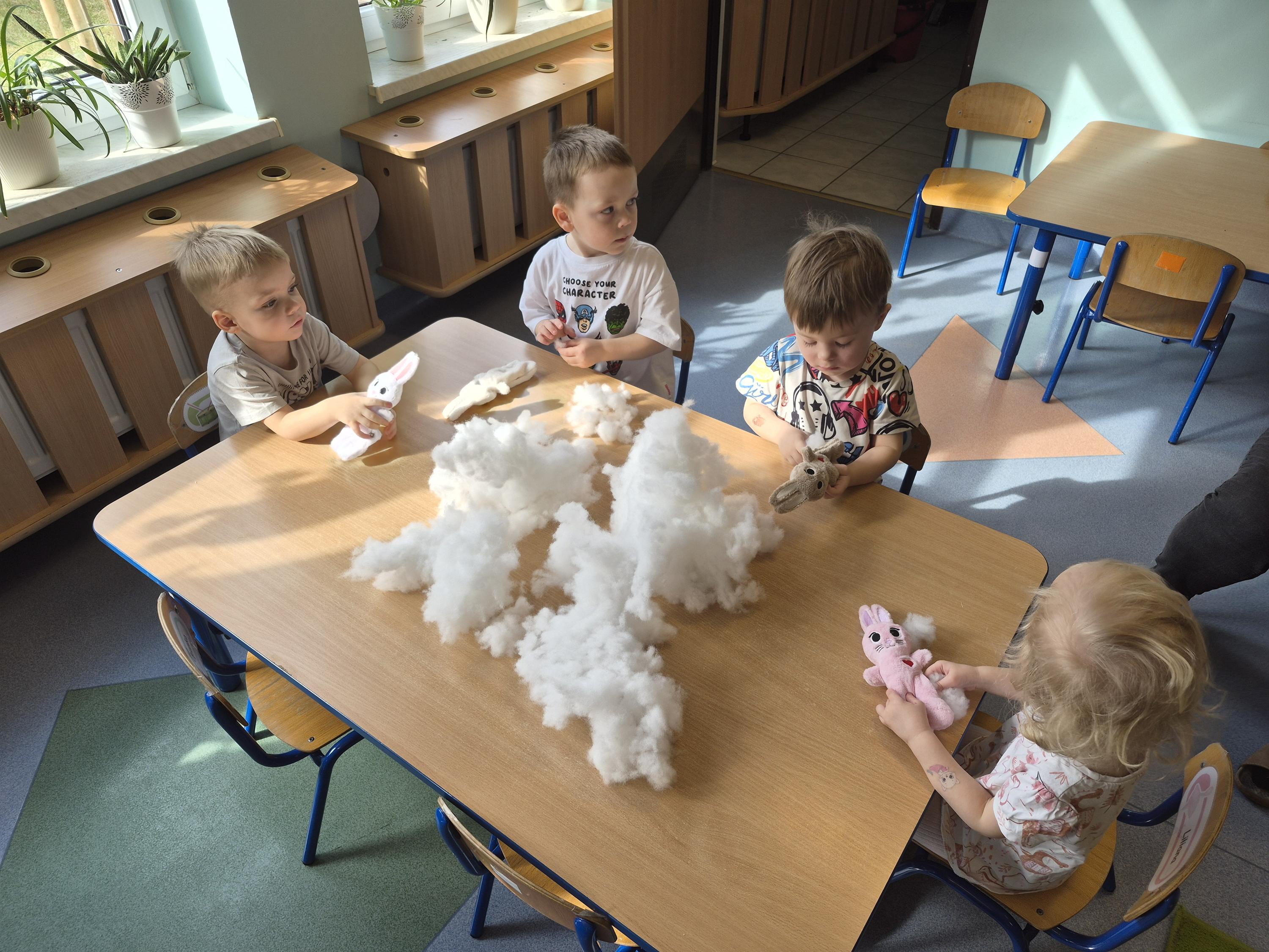 20 marca w naszym przedszkolu odbyły się wielkanocne warsztaty z udziałem cioci Pleciugi. Dzieci z dużym zaangażowaniem wypełniały watką wcześniej uszyte zajączki, ucząc się przy tym precyzji i cierpliwości. Każdy uczestnik mógł samodzielnie zdecydować, jak miękki i puszysty będzie jego zajączek. Następnie przyszedł czas na wybór ubranek, co sprawiło dzieciom wiele radości i pobudziło ich wyobraźnię. Powstały niezwykle kolorowe i oryginalne prace, które odzwierciedlały indywidualne pomysły małych twórców. Warsztaty przebiegły w ciepłej i twórczej atmosferze, a dzieci były bardzo dumne ze swoich zajączków.