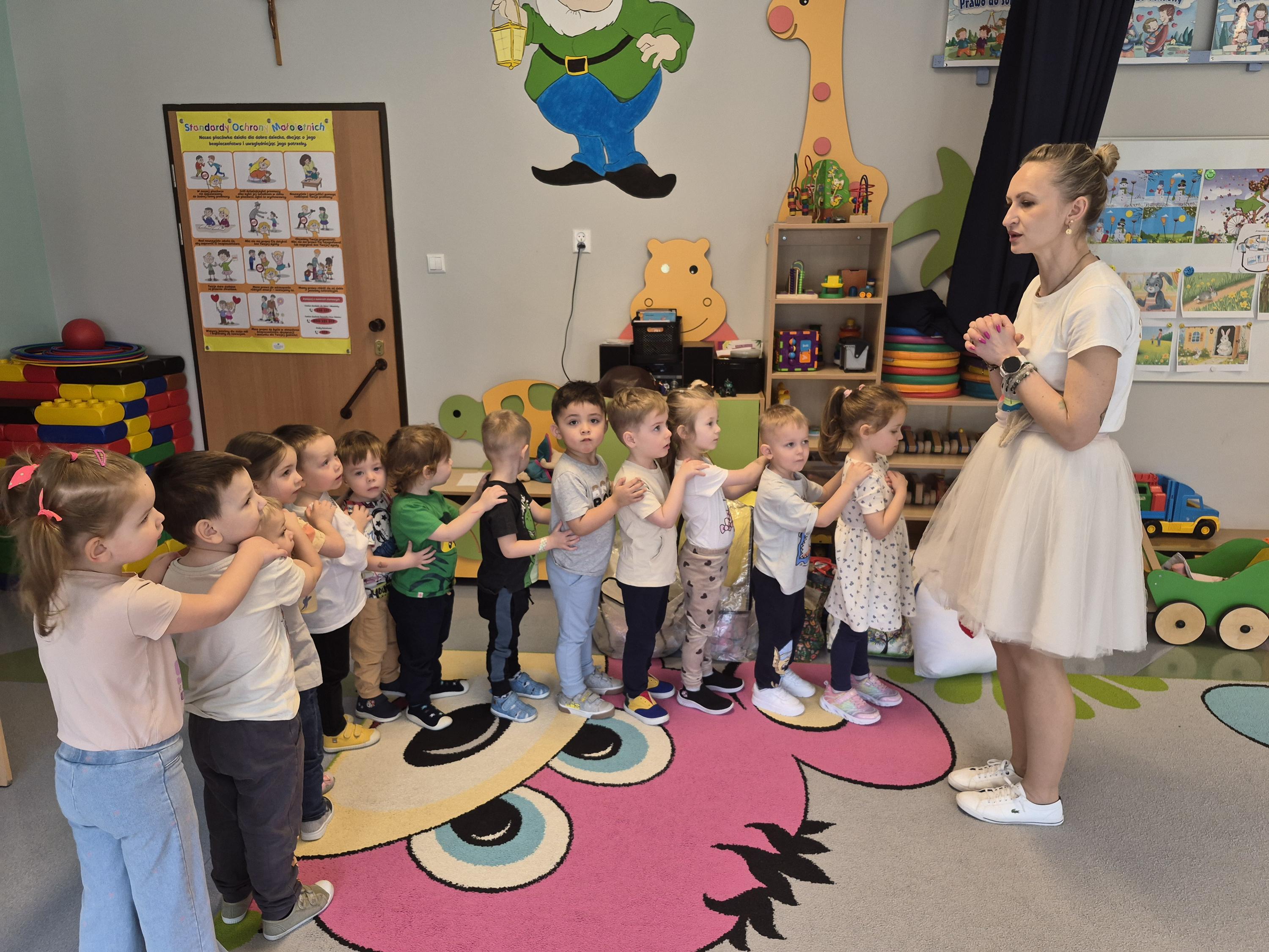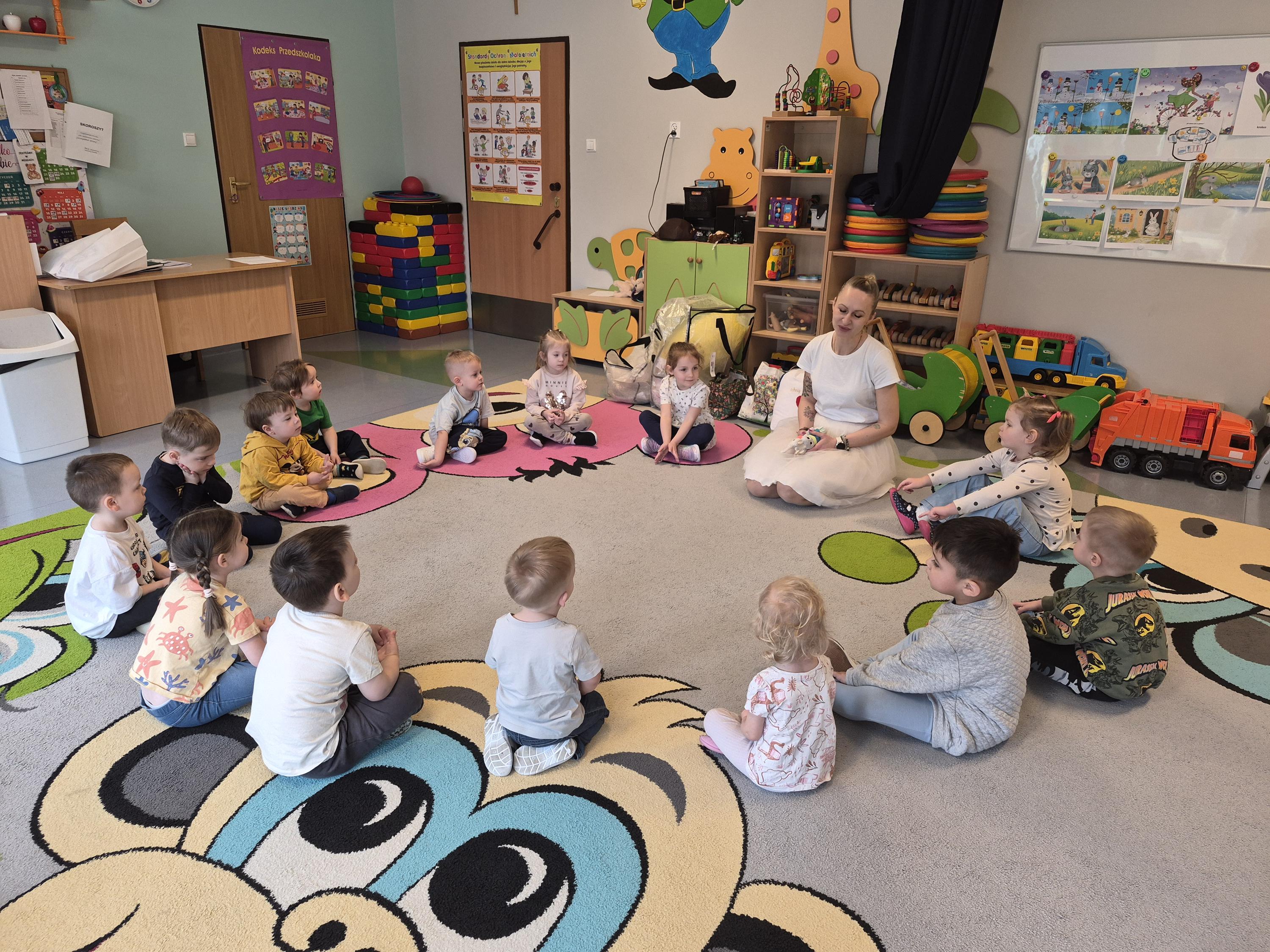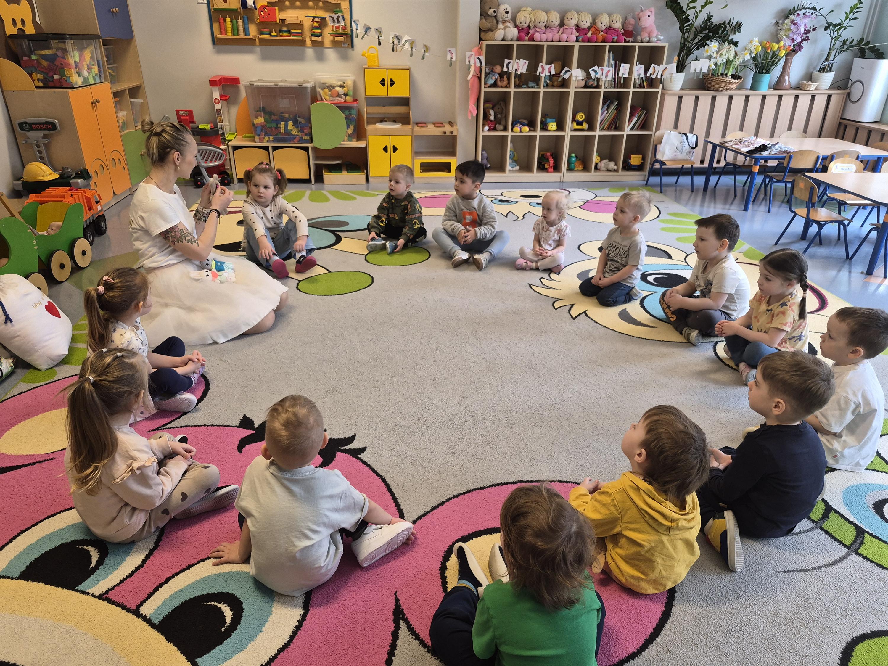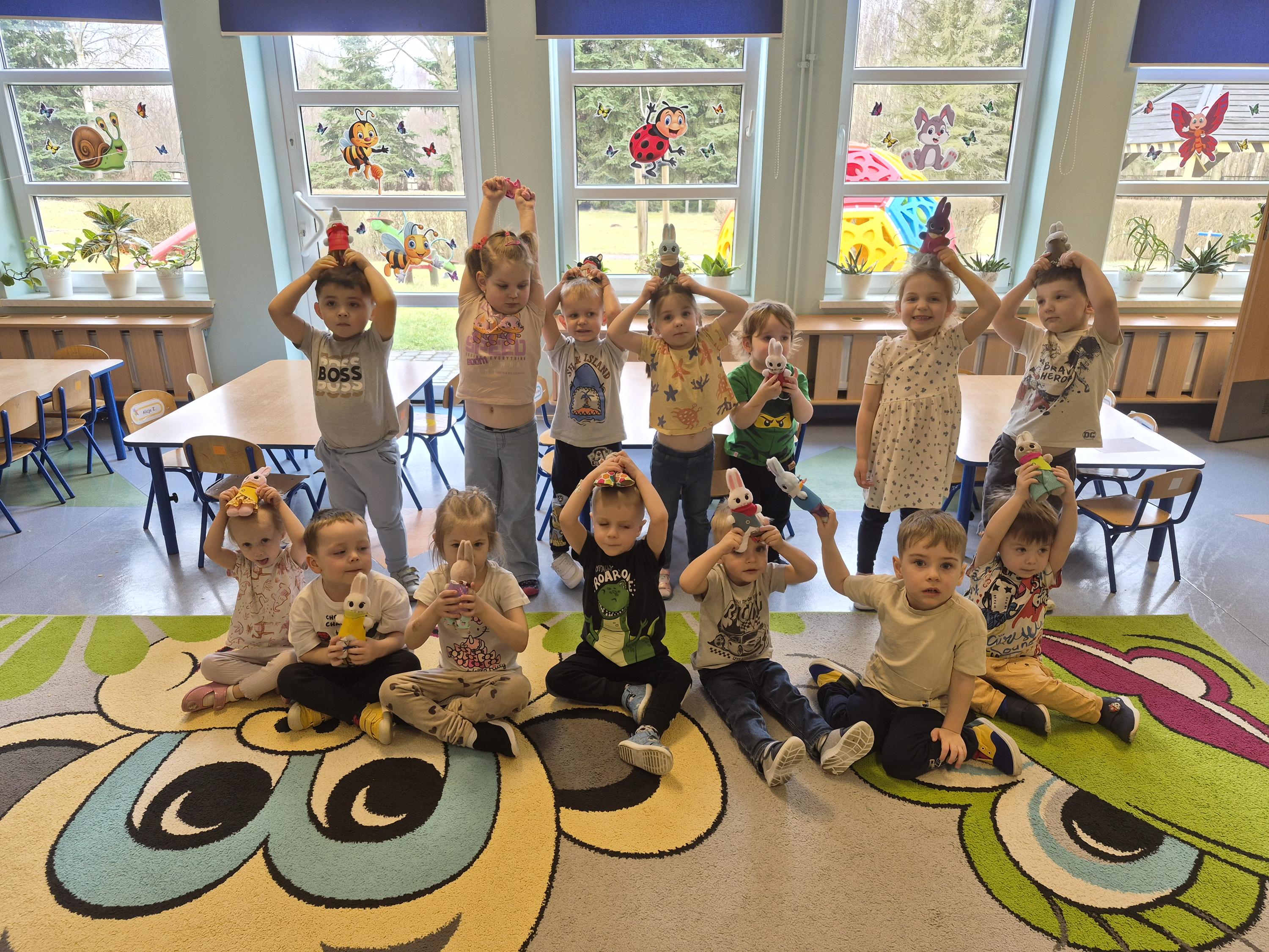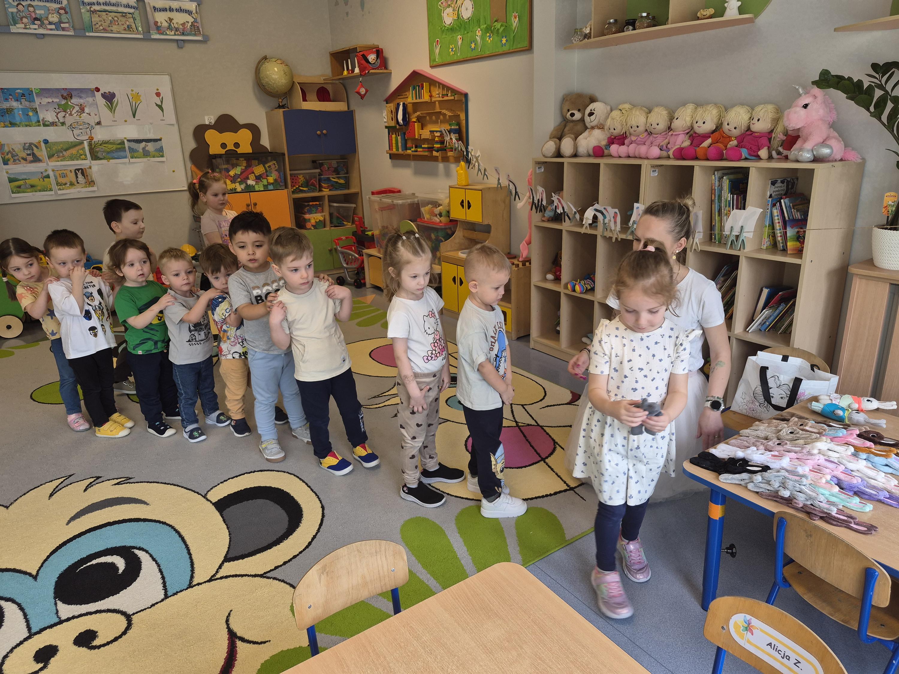 20 marca w naszym przedszkolu odbyły się wielkanocne warsztaty z udziałem cioci Pleciugi. Dzieci z dużym zaangażowaniem wypełniały watką wcześniej uszyte zajączki, ucząc się przy tym precyzji i cierpliwości. Każdy uczestnik mógł samodzielnie zdecydować, jak miękki i puszysty będzie jego zajączek. Następnie przyszedł czas na wybór ubranek, co sprawiło dzieciom wiele radości i pobudziło ich wyobraźnię. Powstały niezwykle kolorowe i oryginalne prace, które odzwierciedlały indywidualne pomysły małych twórców. Warsztaty przebiegły w ciepłej i twórczej atmosferze, a dzieci były bardzo dumne ze swoich zajączków.