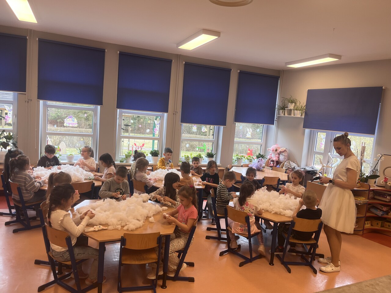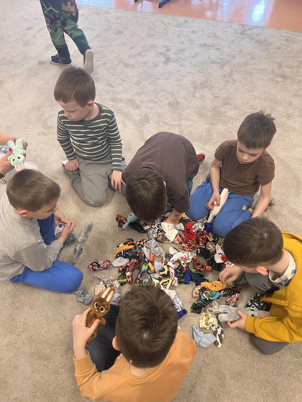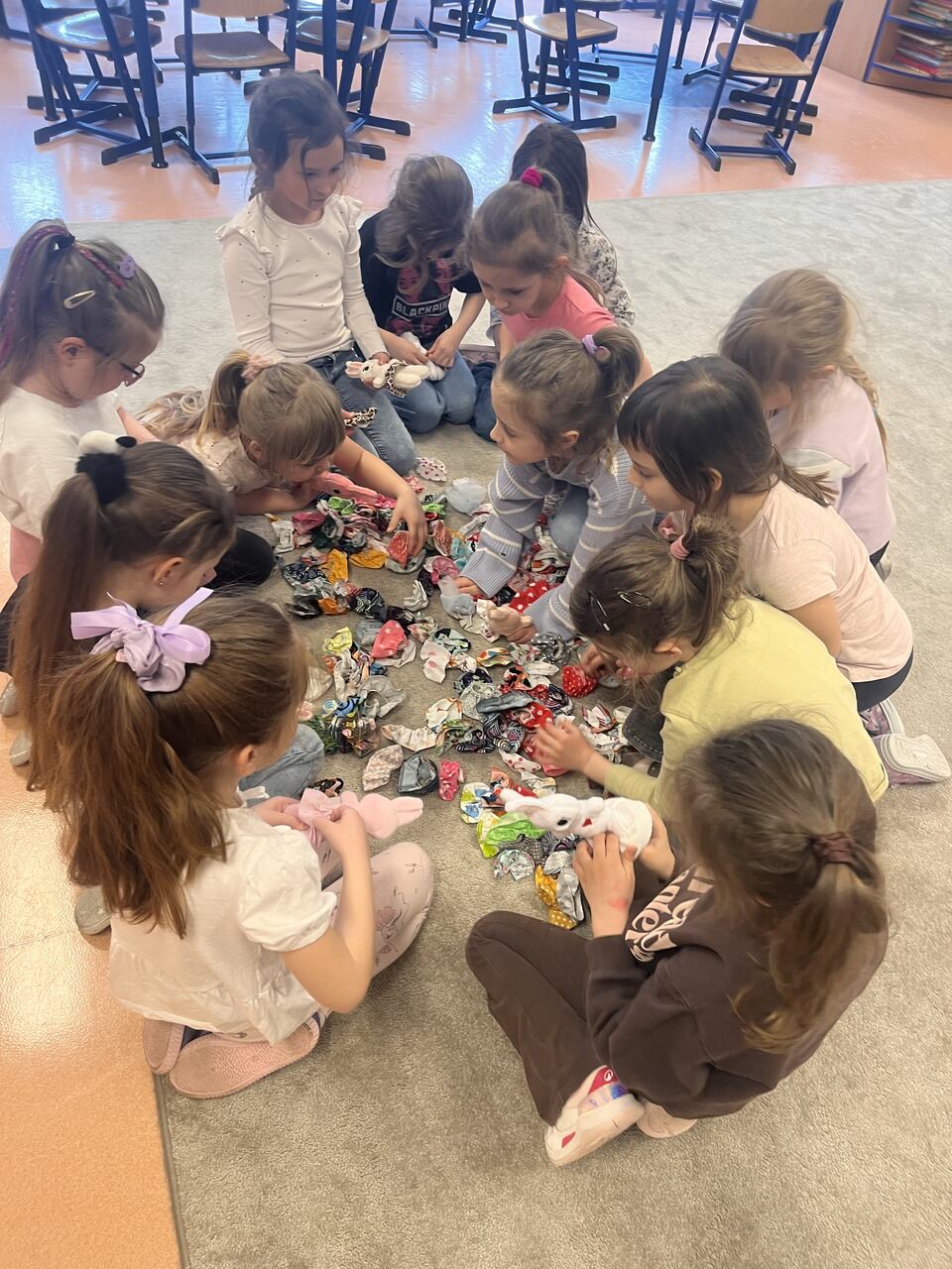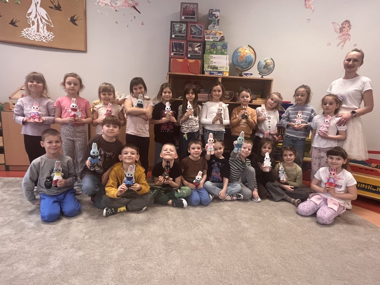 20 marca w naszej grupa uczestniczyła w warsztatach wielkanocnych z Pleciugą. Podczas warsztatów dzieci miały okazję wykonać własnego zajączka wielkanocnego. Każde dziecko samodzielnie wypychało swojego pluszaka, a następnie z dużą starannością dobierało dla niego ubranka i dodatki. Praca nad zajączkiem sprawiła wszystkim wiele radości, a dzieci z ogromnym zaangażowaniem i kreatywnością podchodziły do zadania, tworząc niepowtarzalne i wyjątkowe prace. Warsztaty były nie tylko świetną zabawą, ale również doskonałą okazją do rozwijania zdolności manualnych, wyobraźni oraz samodzielności. Gotowe zajączki dzieci z dumą zabrały do domu, aby stały się piękną, wielkanocną ozdobą.