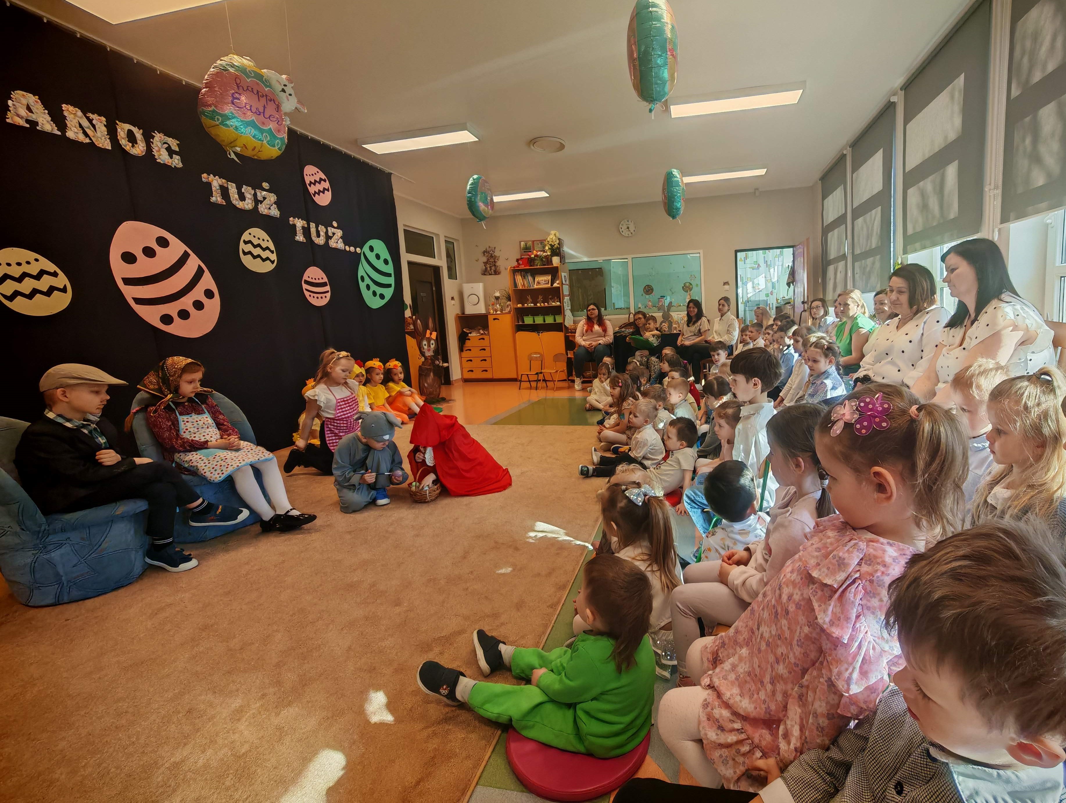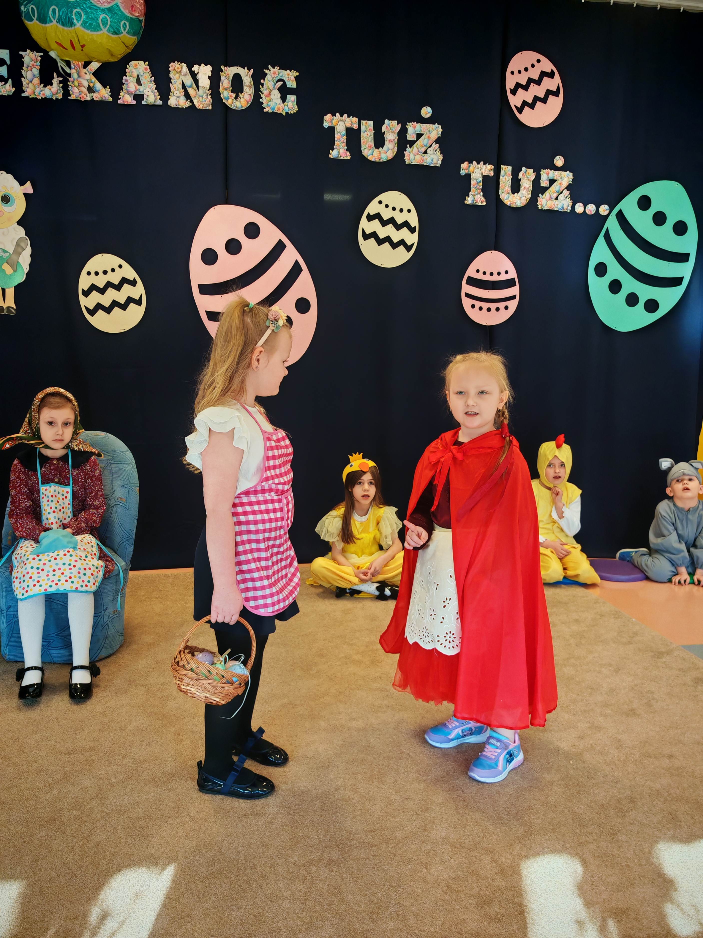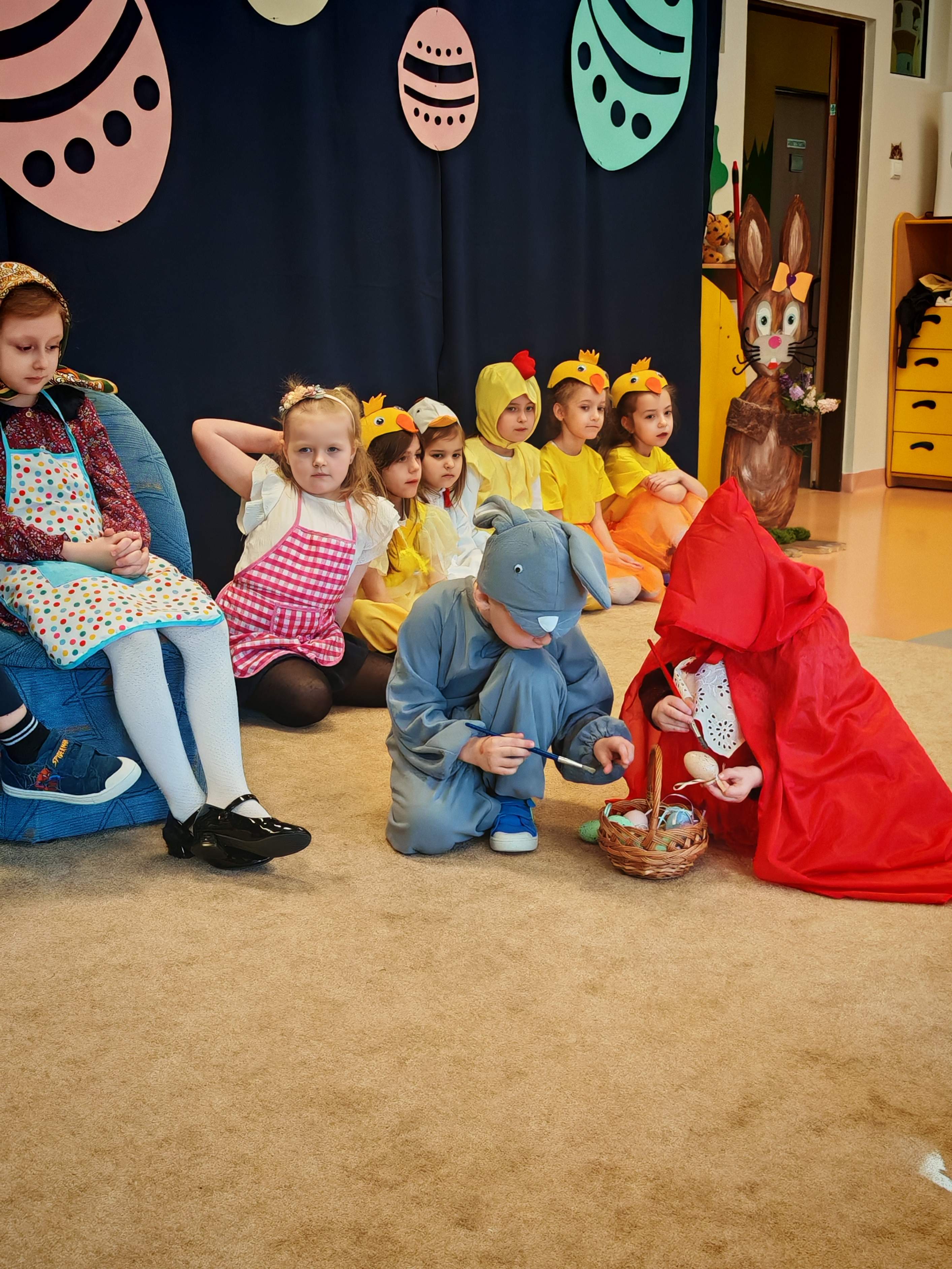 1 kwietnia w naszym przedszkolu odbyło się wyjątkowe przedstawienie teatralne pt. „Wielkanoc u Babci i Czerwonego Kapturka”, przygotowane przez kółko teatralne. Dzieci z ogromnym zaangażowaniem i radością zaprezentowały swoje umiejętności aktorskie, wprowadzając wszystkich w świąteczny nastrój. Na zakończenie Pani Dyrektor złożyła wszystkim dzieciom serdeczne życzenia wielkanocne. W naszym przedszkolu szczególną wagę przykładamy do kultywowania tradycji świątecznych, które są ważnym elementem wychowania i budowania wspólnoty. Dziękujemy wszystkim za wspólnie spędzony, pełen radości czas!