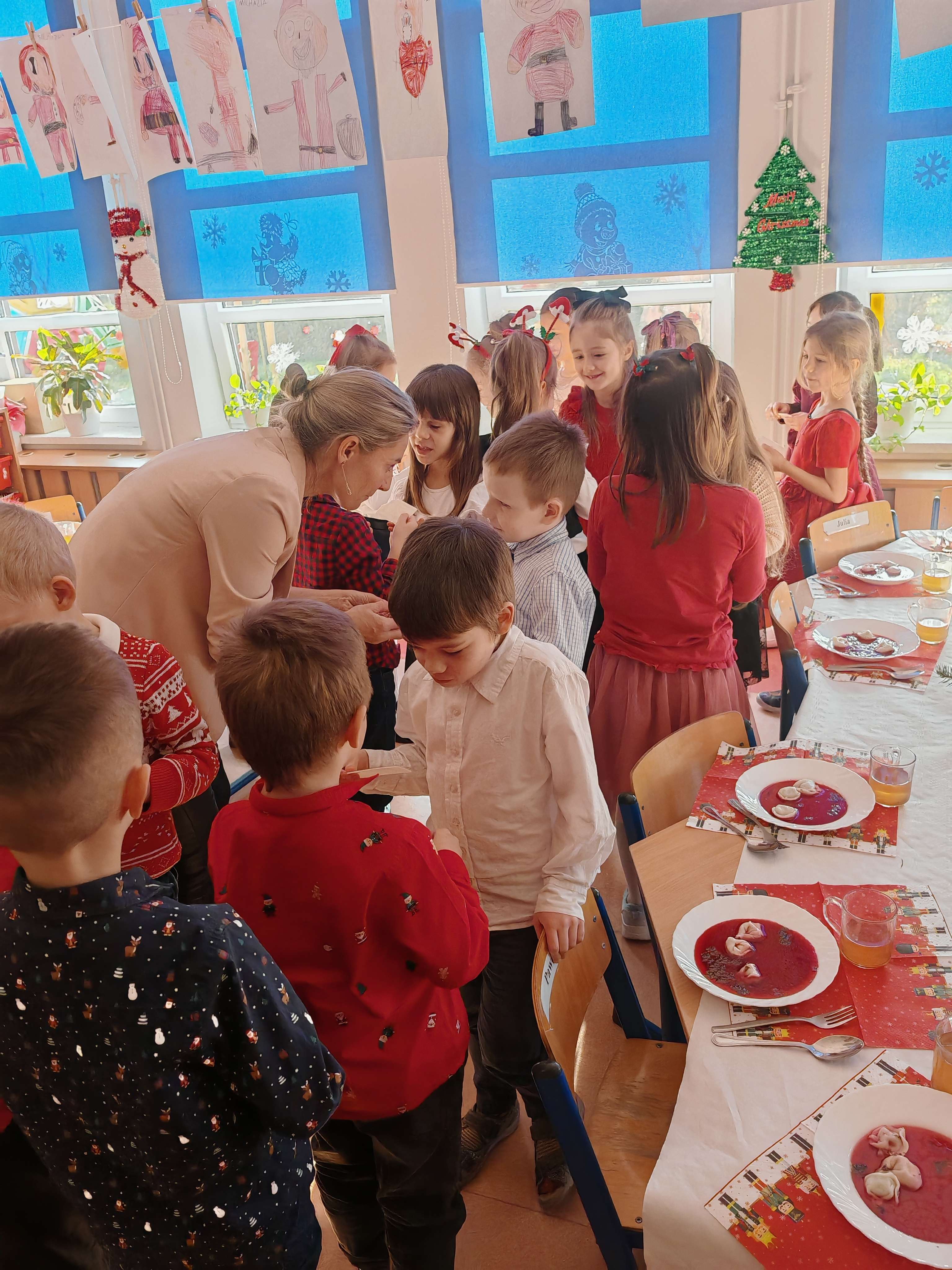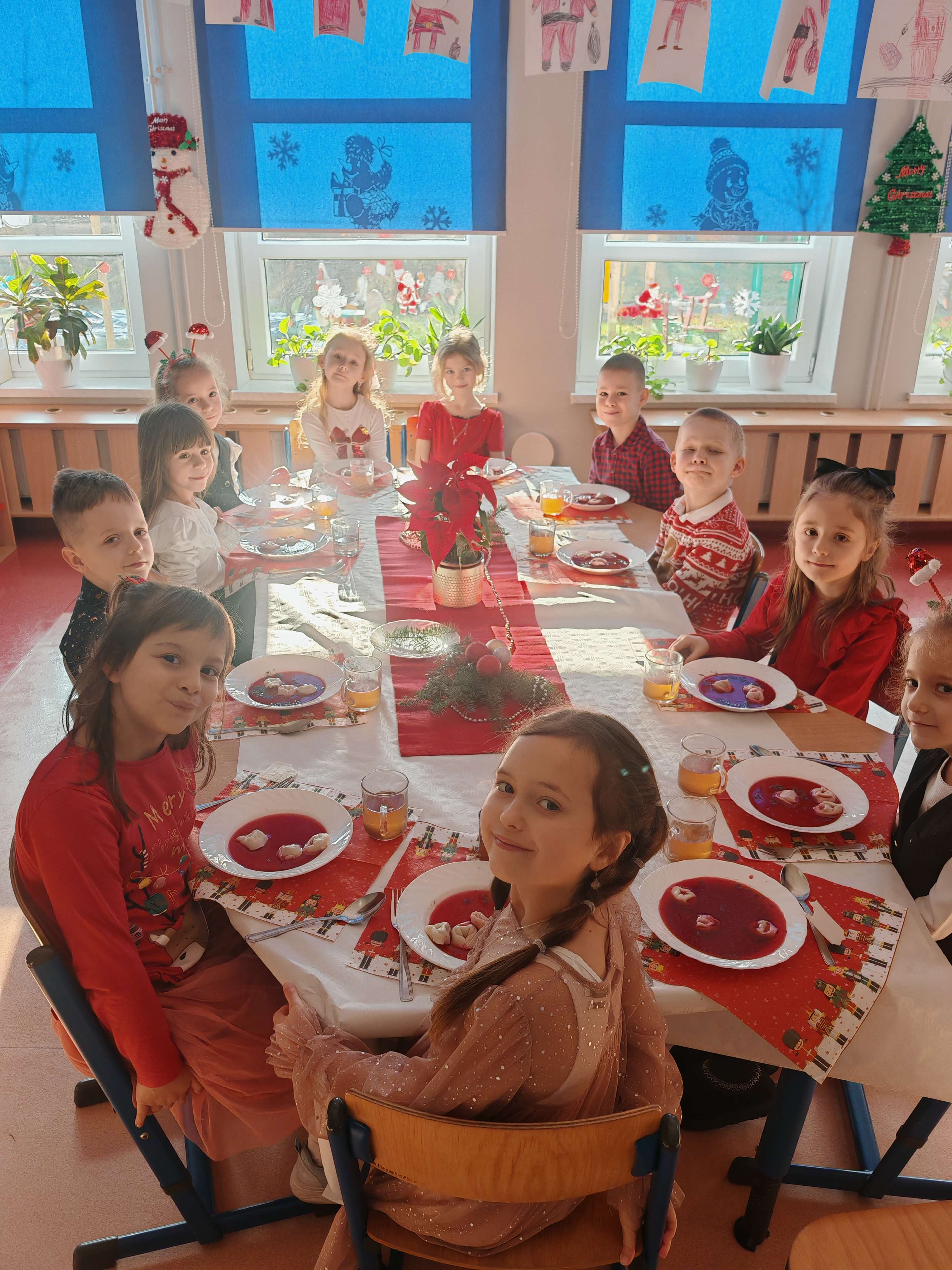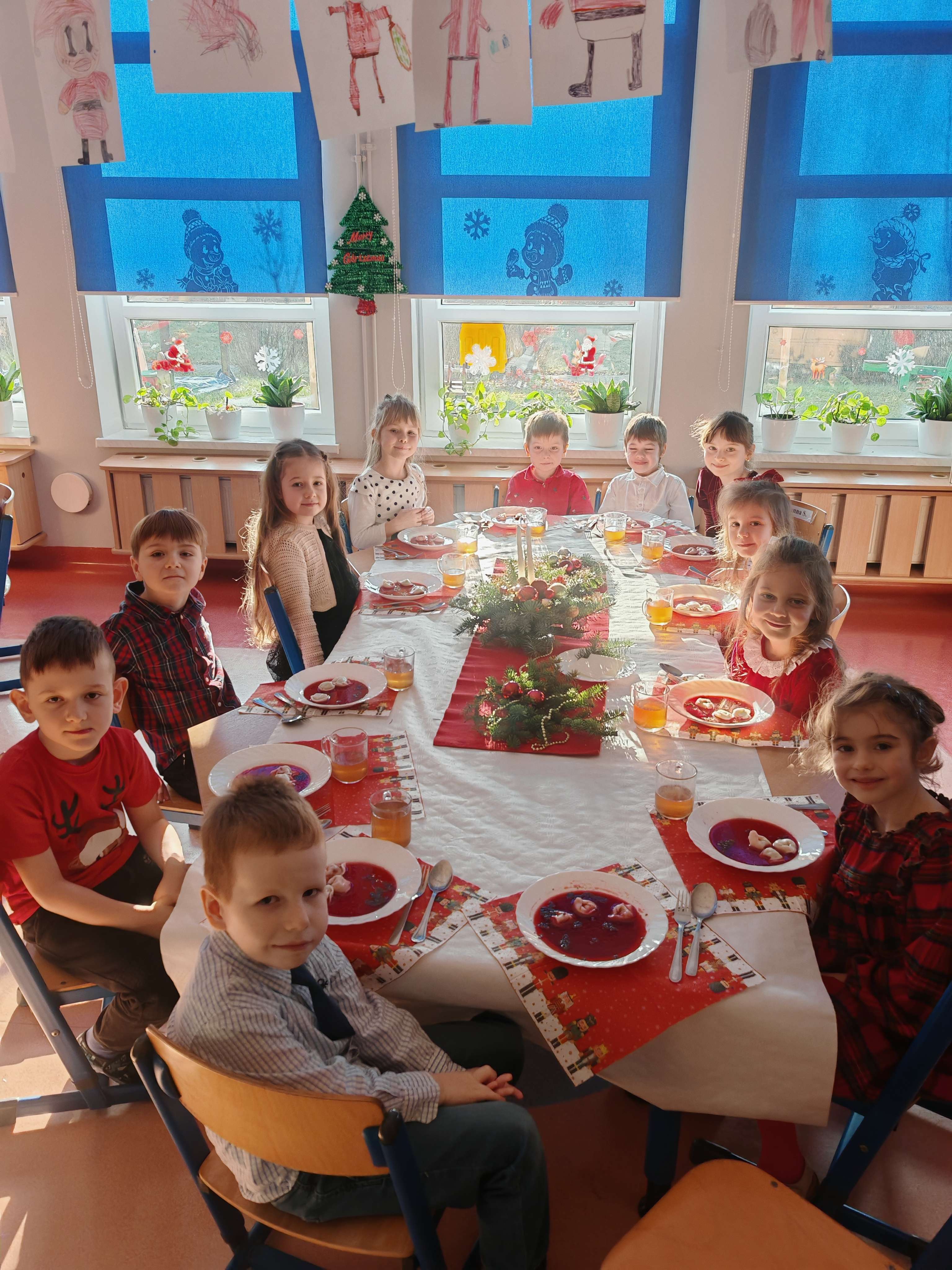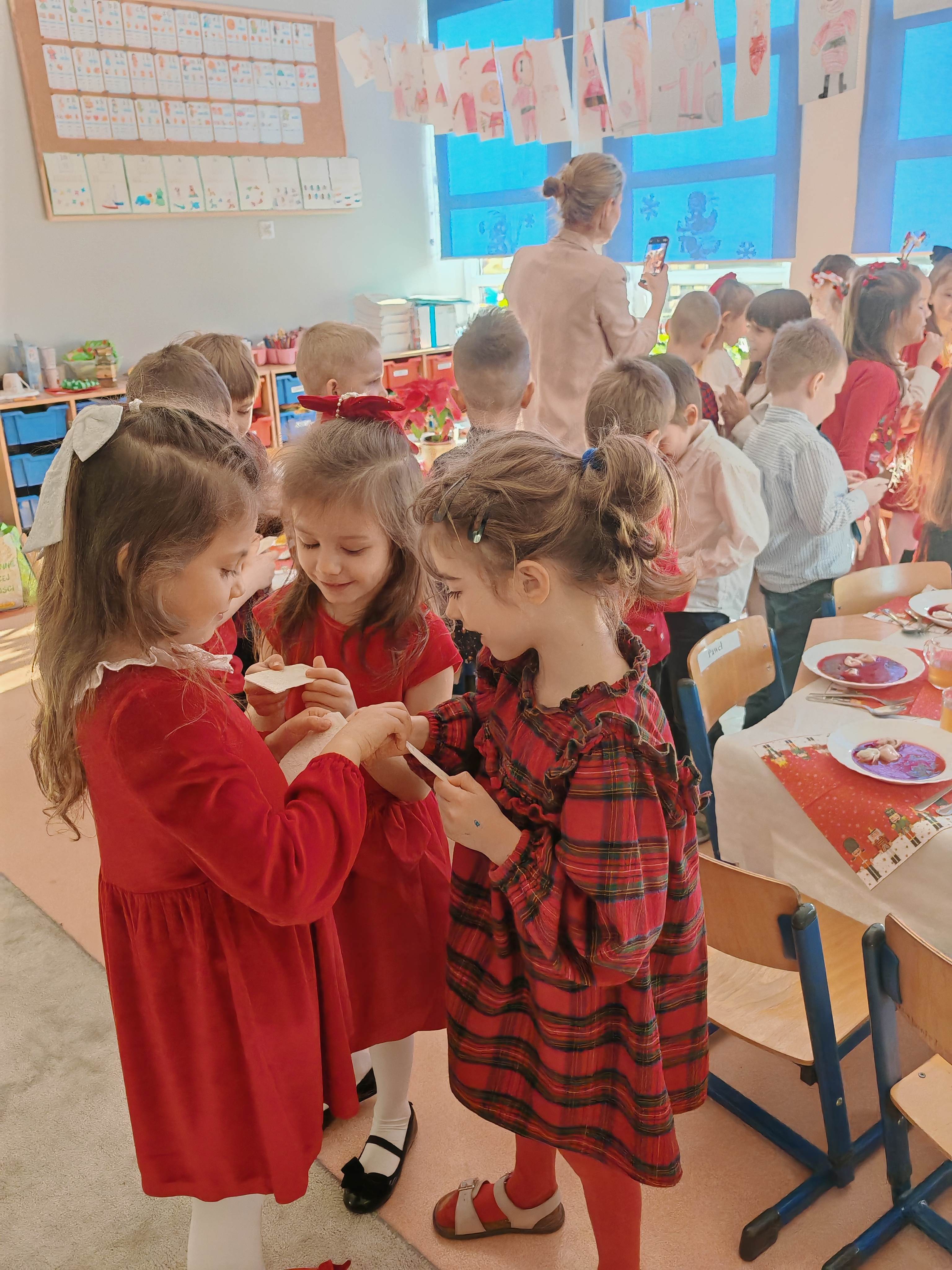 W naszej przedszkolnej rodzinie nie mogło zabraknąć wyjątkowego, świątecznego spotkania. W grupie Elfy odbyła się uroczysta Wigilia grupowa, pełna ciepła, radości i wzruszeń. Dzieci, zgodnie z piękną tradycją, dzieliły się opłatkiem, składając sobie serdeczne życzenia. Wspólnie z wychowawcami zasiadły do wigilijnego stołu, przy którym panowała miła, pełna życzliwości atmosfera. To był wyjątkowy czas rozmów, uśmiechów i budowania poczucia wspólnoty. Takie chwile uczą dzieci wrażliwości, wzajemnego szacunku oraz pielęgnowania polskich tradycji. Dziękujemy wszystkim za zaangażowanie i stworzenie tej magicznej, świątecznej atmosfery.