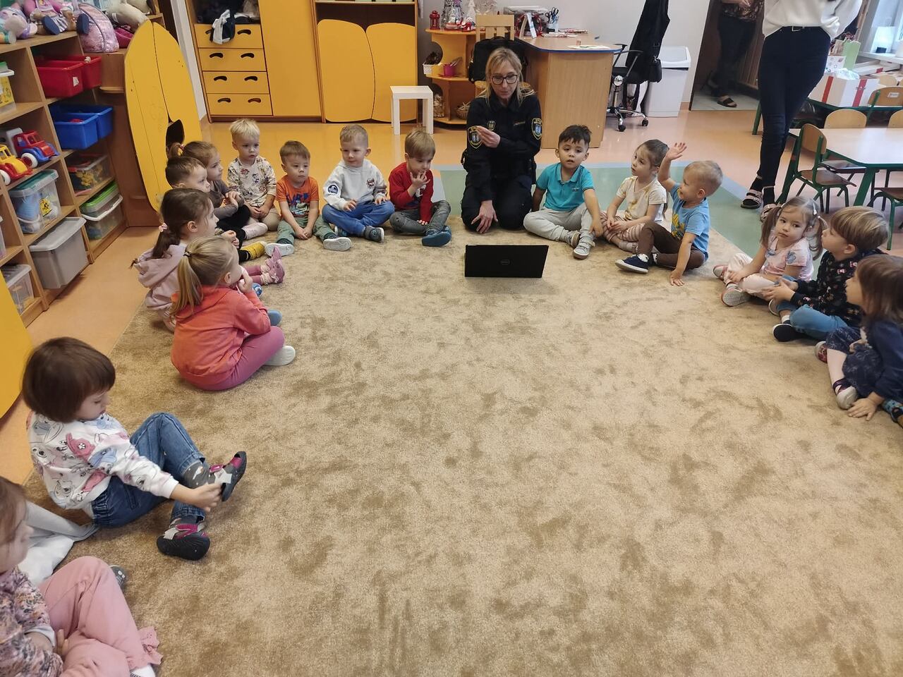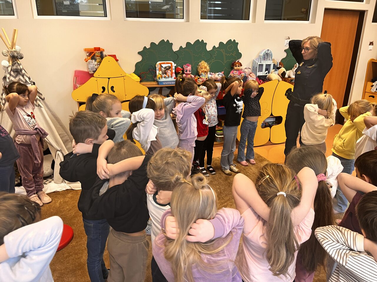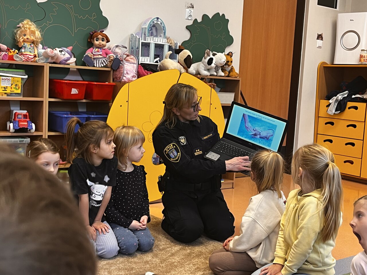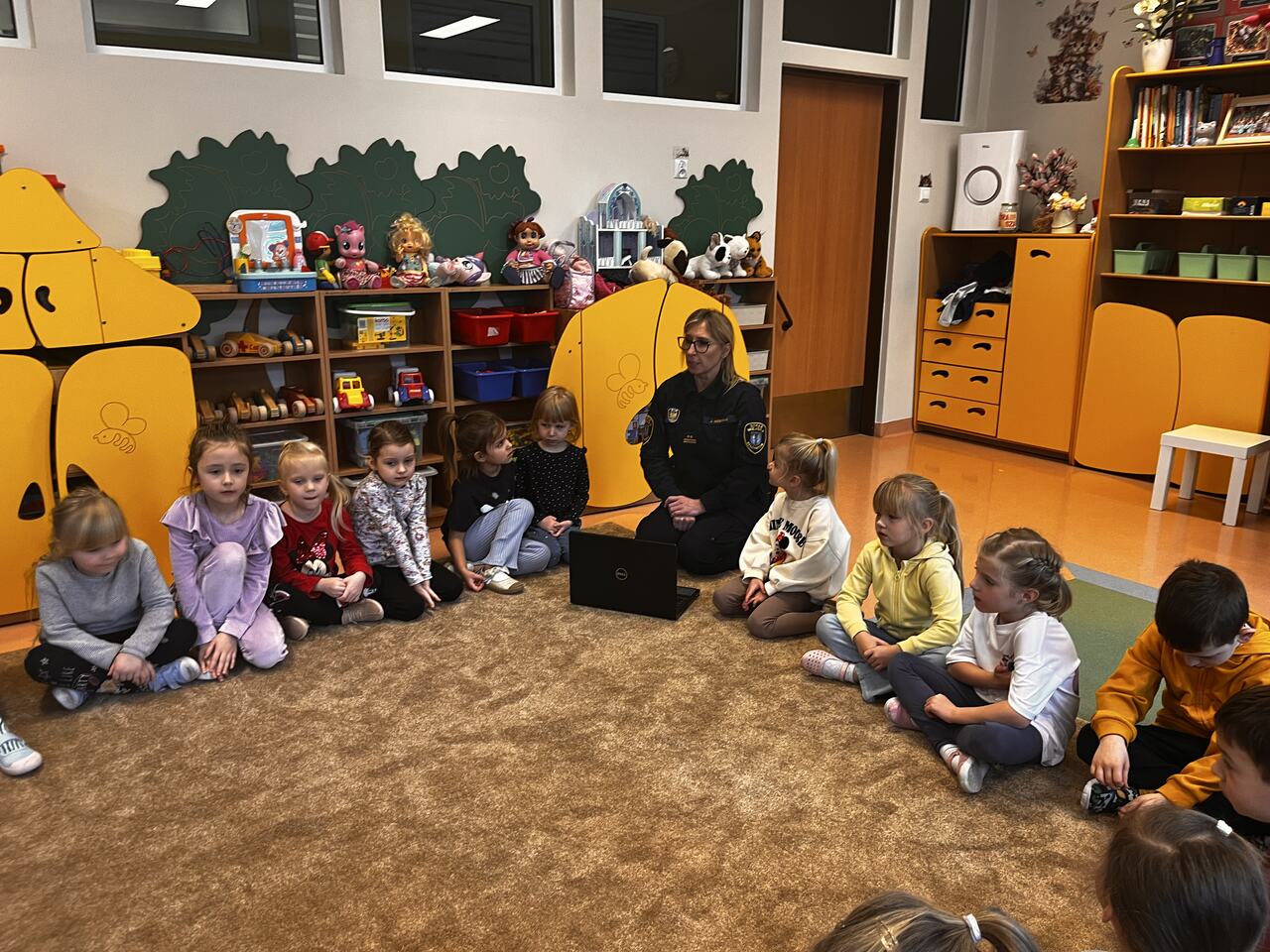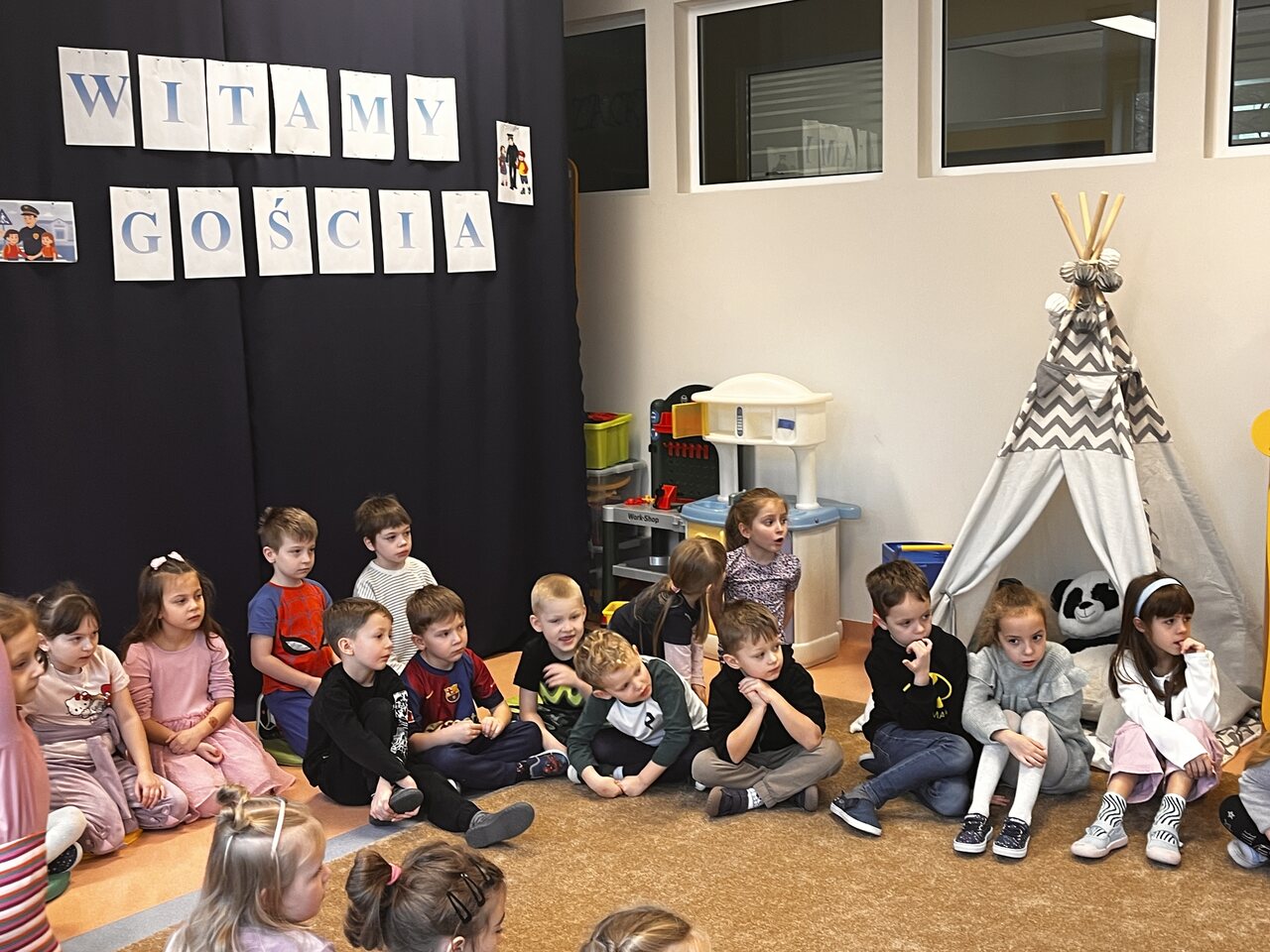 W dniu 3.12 gościliśmy przedstawiciela Straży Miejskiej – panią Jagodę Nieborak, Komendanta Straży Miejskiej.Podczas wizyty pani Komendant przeprowadziła zajęcia profilaktyczne pt. „Bezpieczeństwo dziecka w kontaktach z osobami dorosłymi oraz zwierzętami”.Dzieci w przystępny i ciekawy sposób dowiedziały się, jak należy zachować się w różnych sytuacjach zagrażających bezpieczeństwu, jak reagować w kontakcie z nieznajomymi oraz jak właściwie postępować wobec zwierząt – zarówno domowych, jak i obcych. Zajęcia miały formę rozmowy, pogadanki oraz aktywnego udziału dzieci, co wzbudziło duże zainteresowanie i zaangażowanie przedszkolaków.Spotkanie było bardzo wartościowe i pouczające, a przekazane treści z pewnością przyczynią się do zwiększenia świadomości dzieci w zakresie bezpieczeństwa w codziennym życiu. Serdecznie dziękujemy pani Jagodzie Nieborak za wizytę oraz cenne wskazówki.