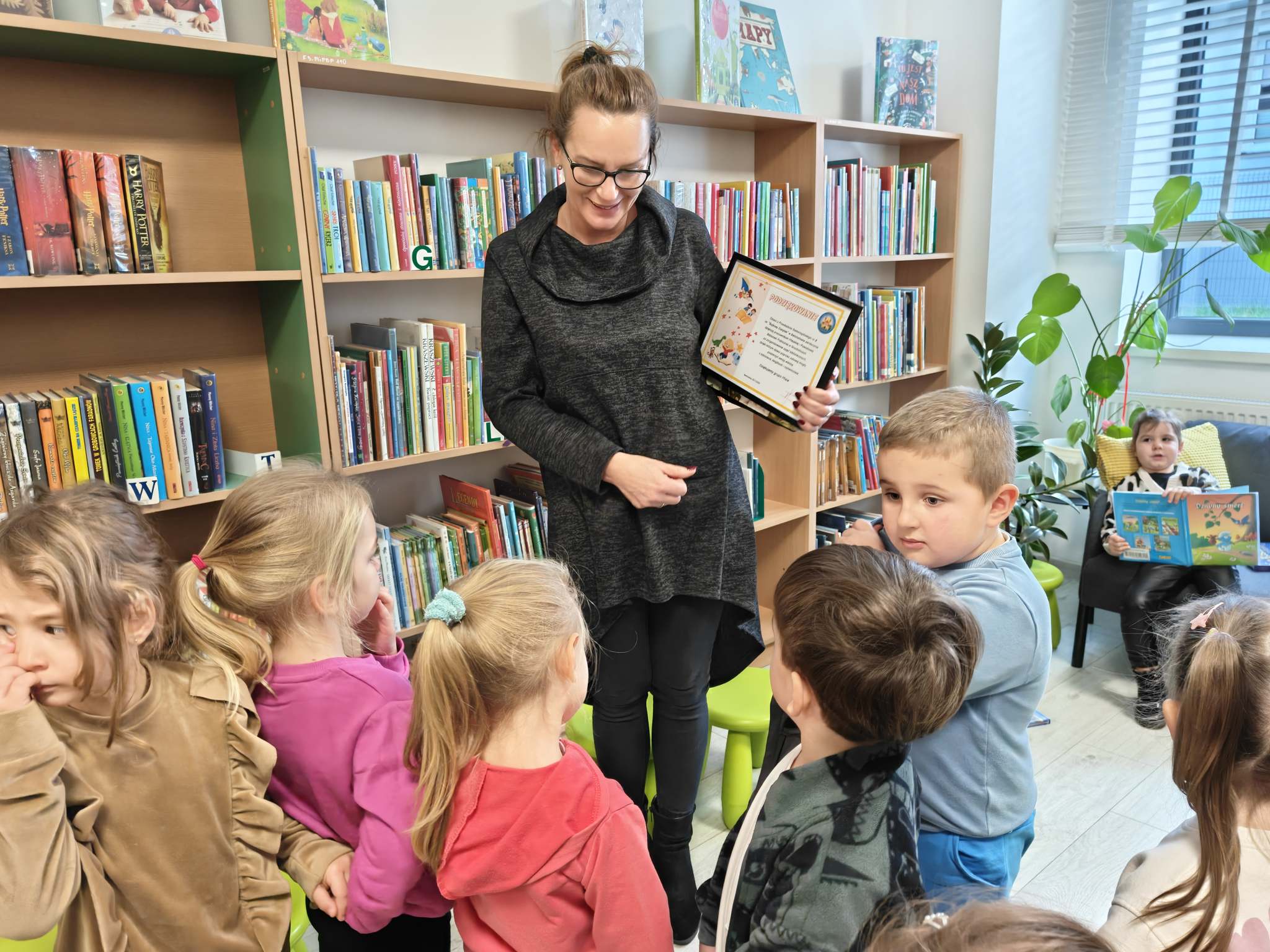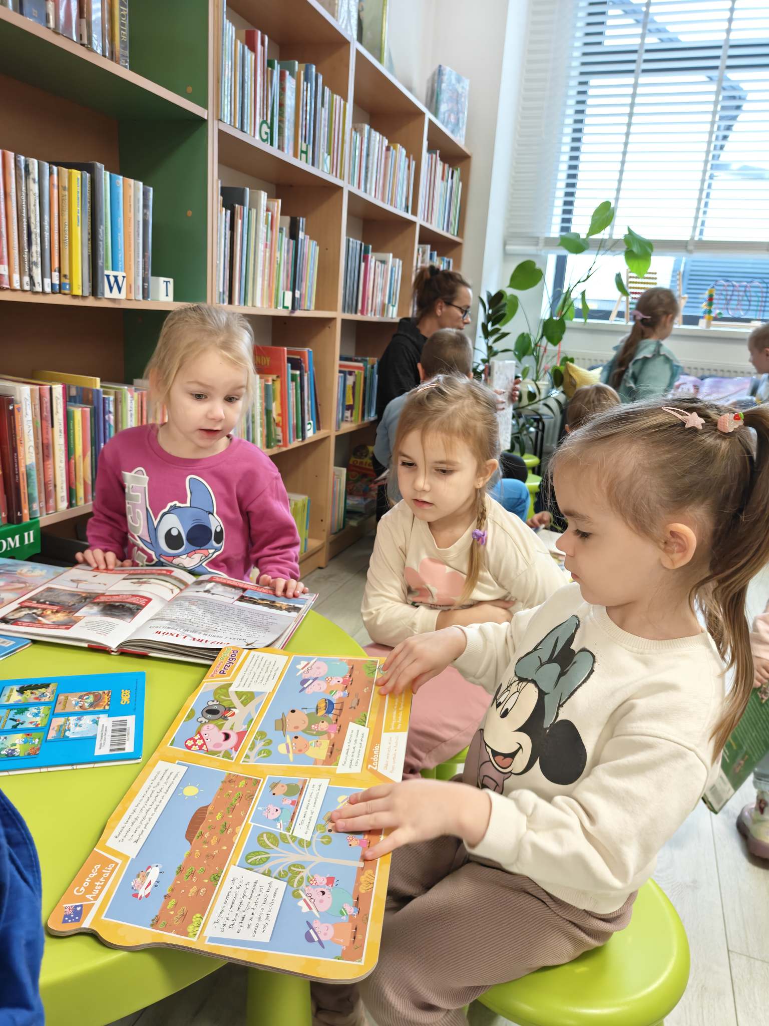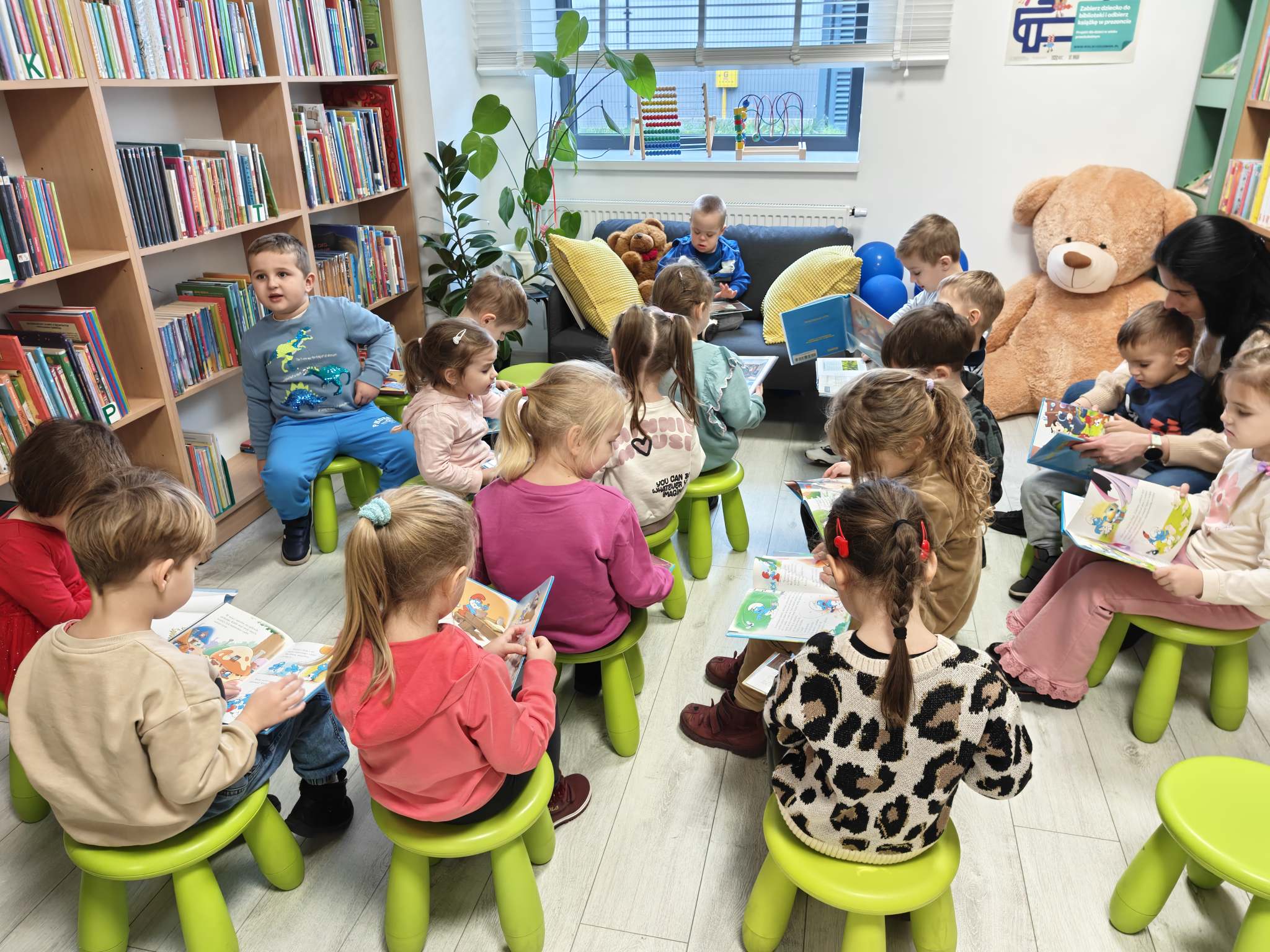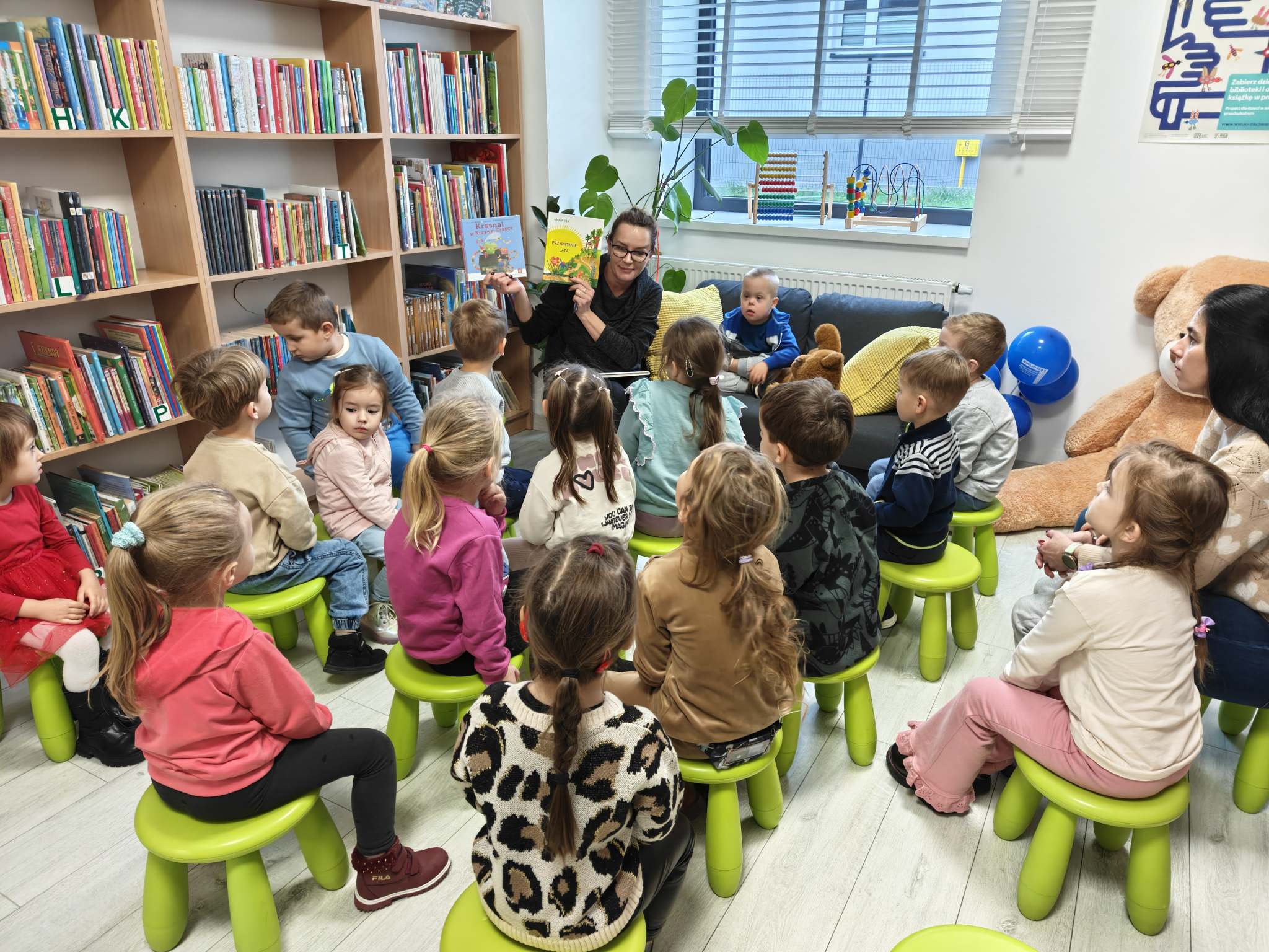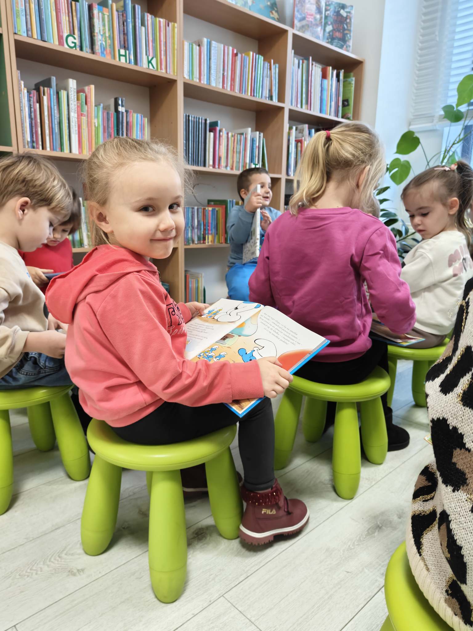 20 listopada nasza grupa odwiedziła nowo powstałą filię Miejskiej Biblioteki Publicznej w Grocholicach. Celem wizyty było zapoznanie dzieci z działalnością bibliotek, rozbudzanie zainteresowań czytelniczych oraz kształtowanie poczucia szacunku dla książek. Podczas spotkania Pani Bibliotekarka zapoznała dzieci z pracą bibliotekarza, pokazała książki i zachęcała do ich wypożyczania. My również zachęcamy dzieci wraz z rodzicami do częstego odwiedzania biblioteki i wspólnego czytania bajek w domowym zaciszu.