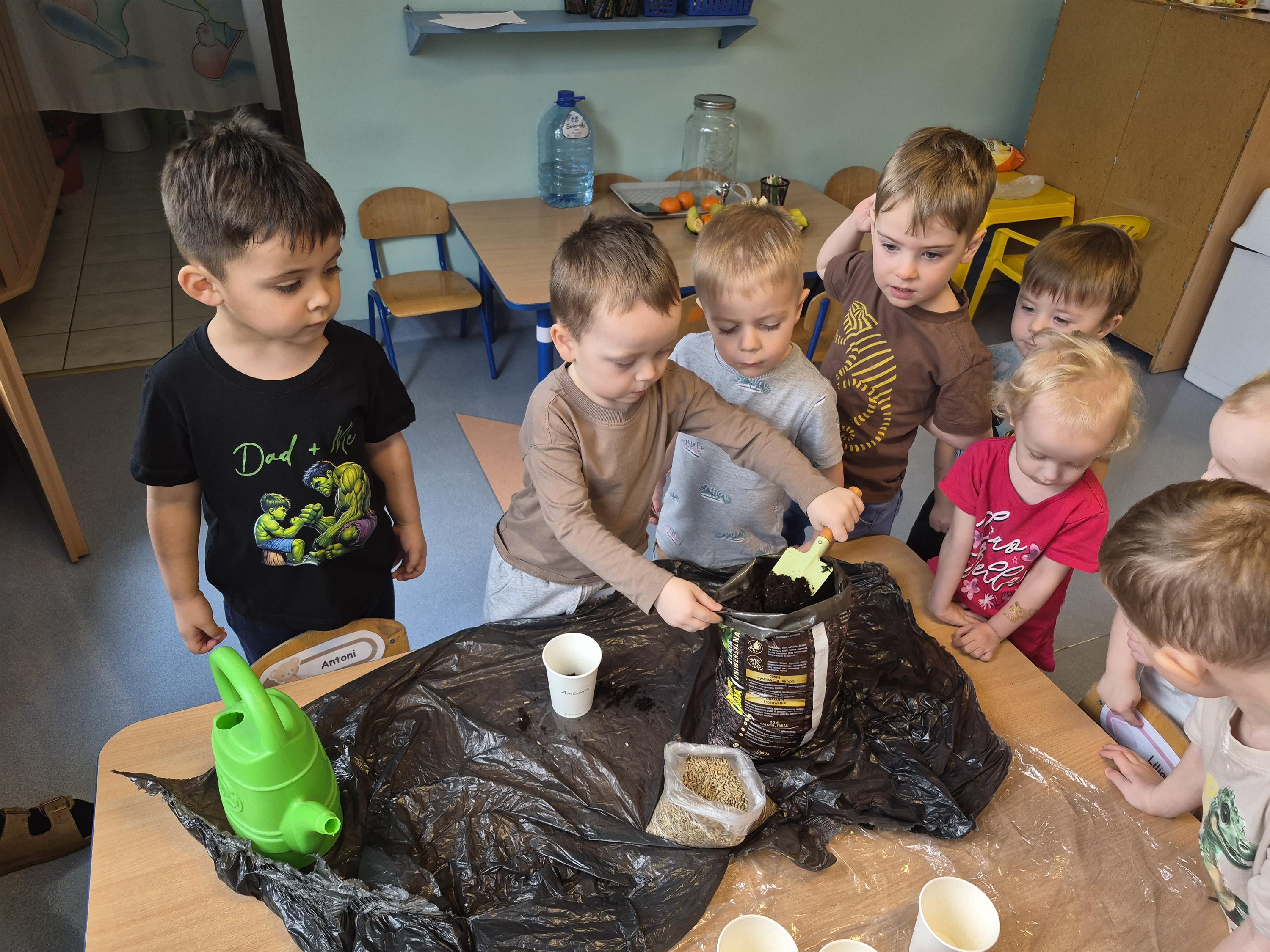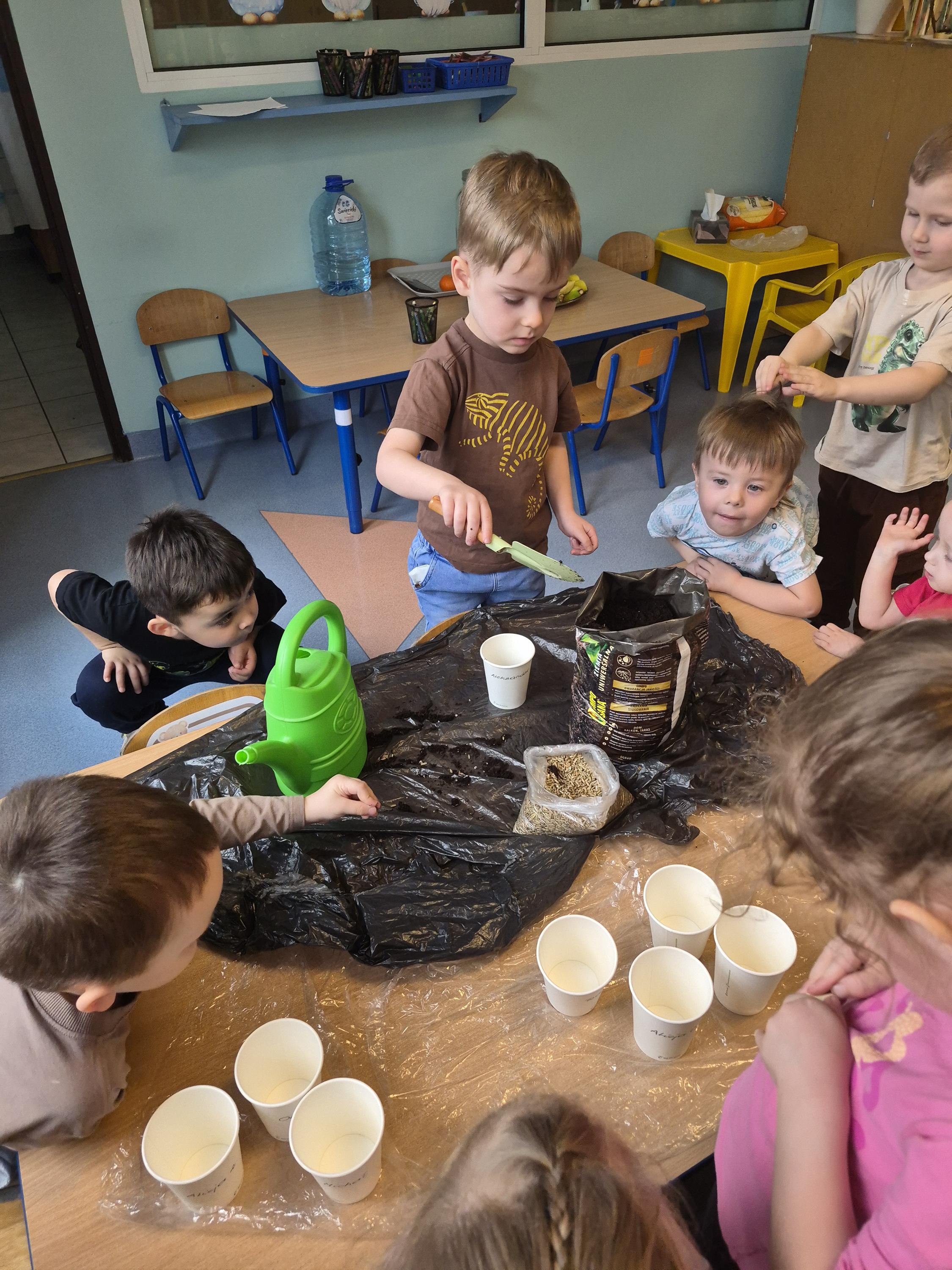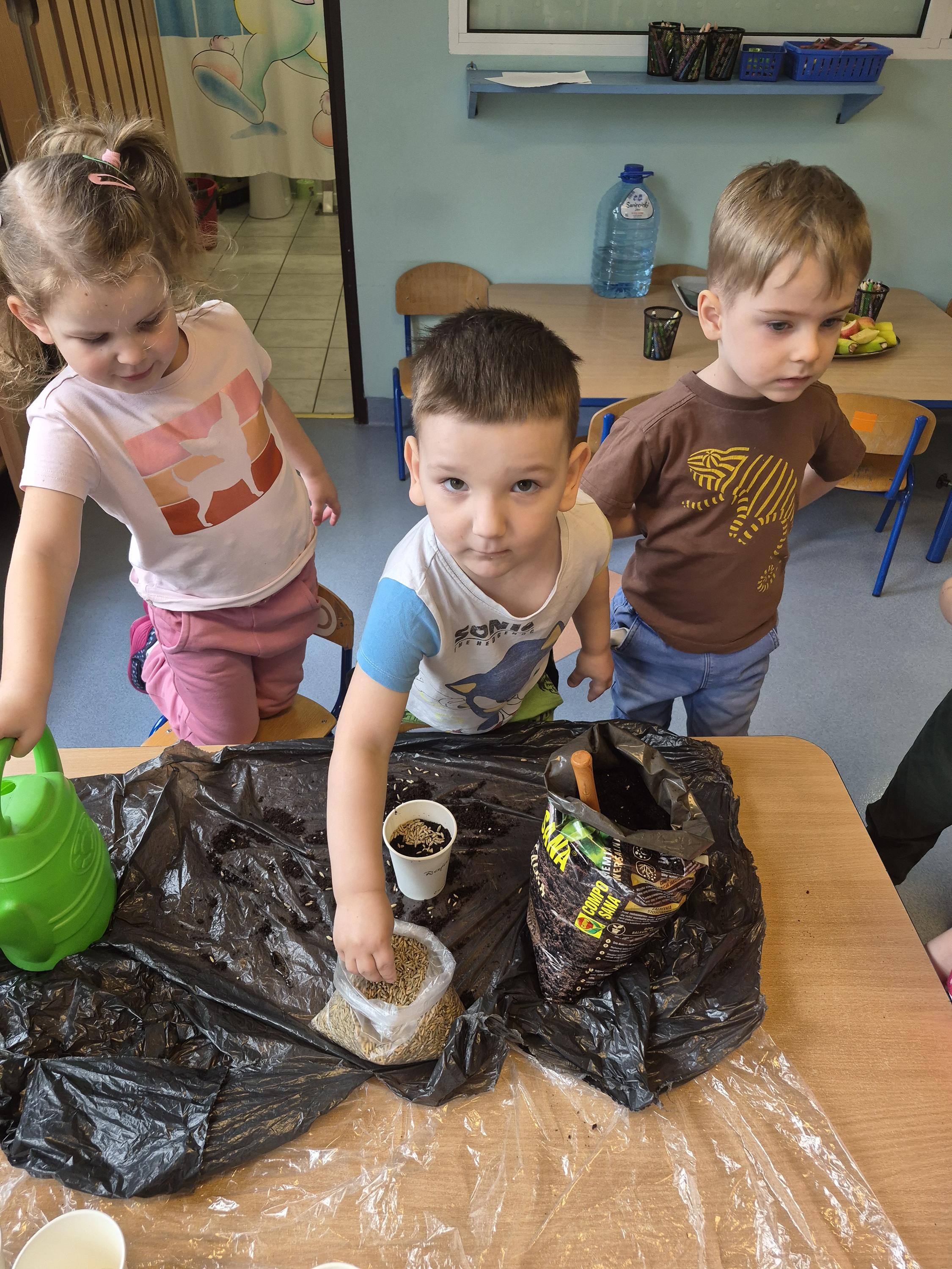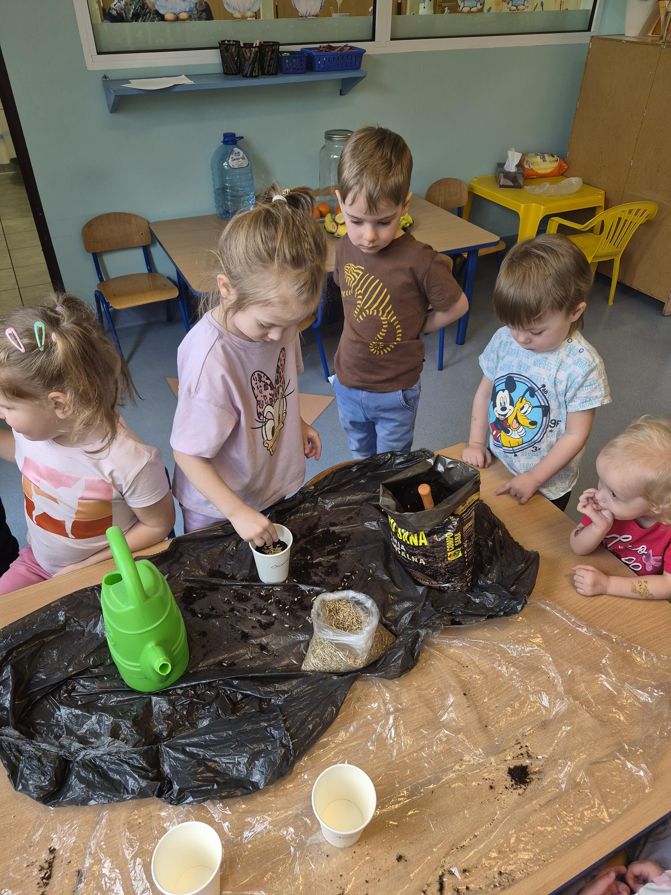 W grupie „Krasnale” odbyły się zajęcia przyrodnicze, podczas których dzieci miały okazję samodzielnie wysiać owies. Każde dziecko otrzymało swoją doniczkę, ziemię oraz nasiona, dzięki czemu mogło krok po kroku poznać proces sadzenia roślin. Dzieci dowiedziały się również czego potrzebuje roślina do wzrostu oraz jak należy o nią dbać.